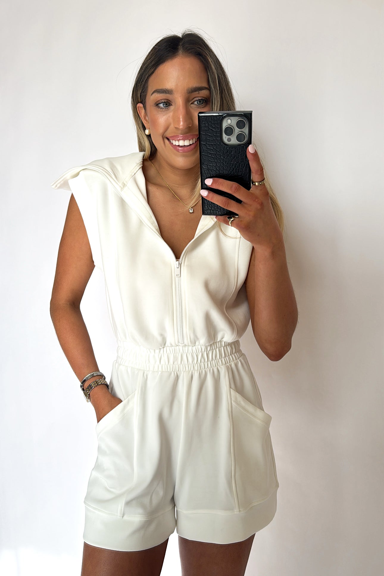 WHITE SQUARE NECK BUTTON DOWN ROMPER