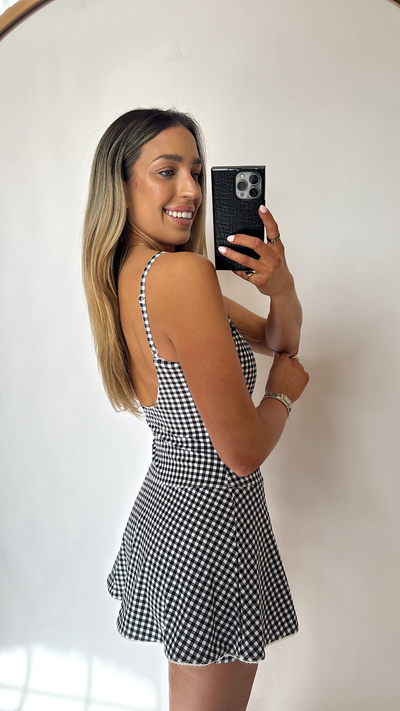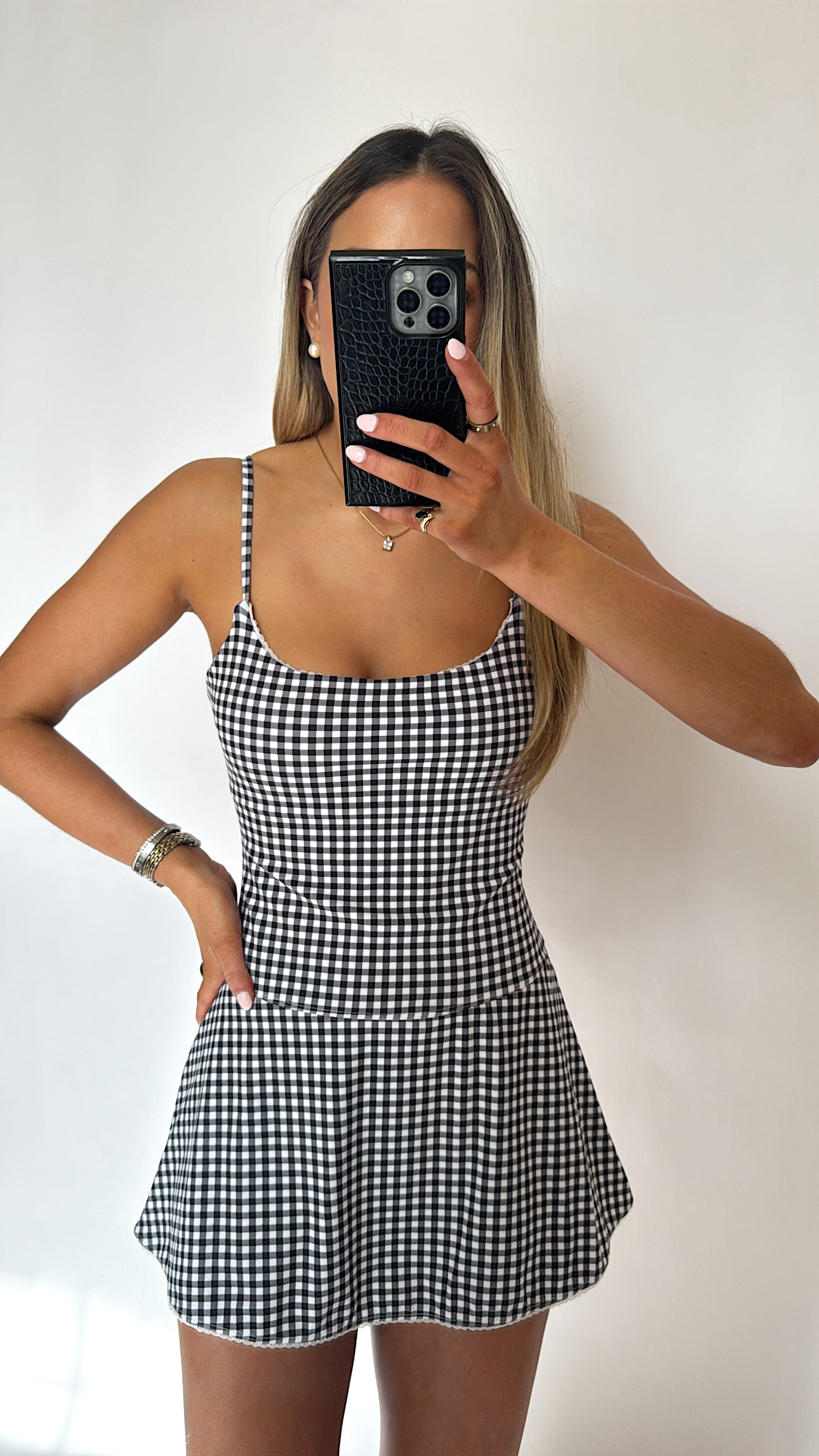 Black Gingham Lace Ruffle Athletic Dress