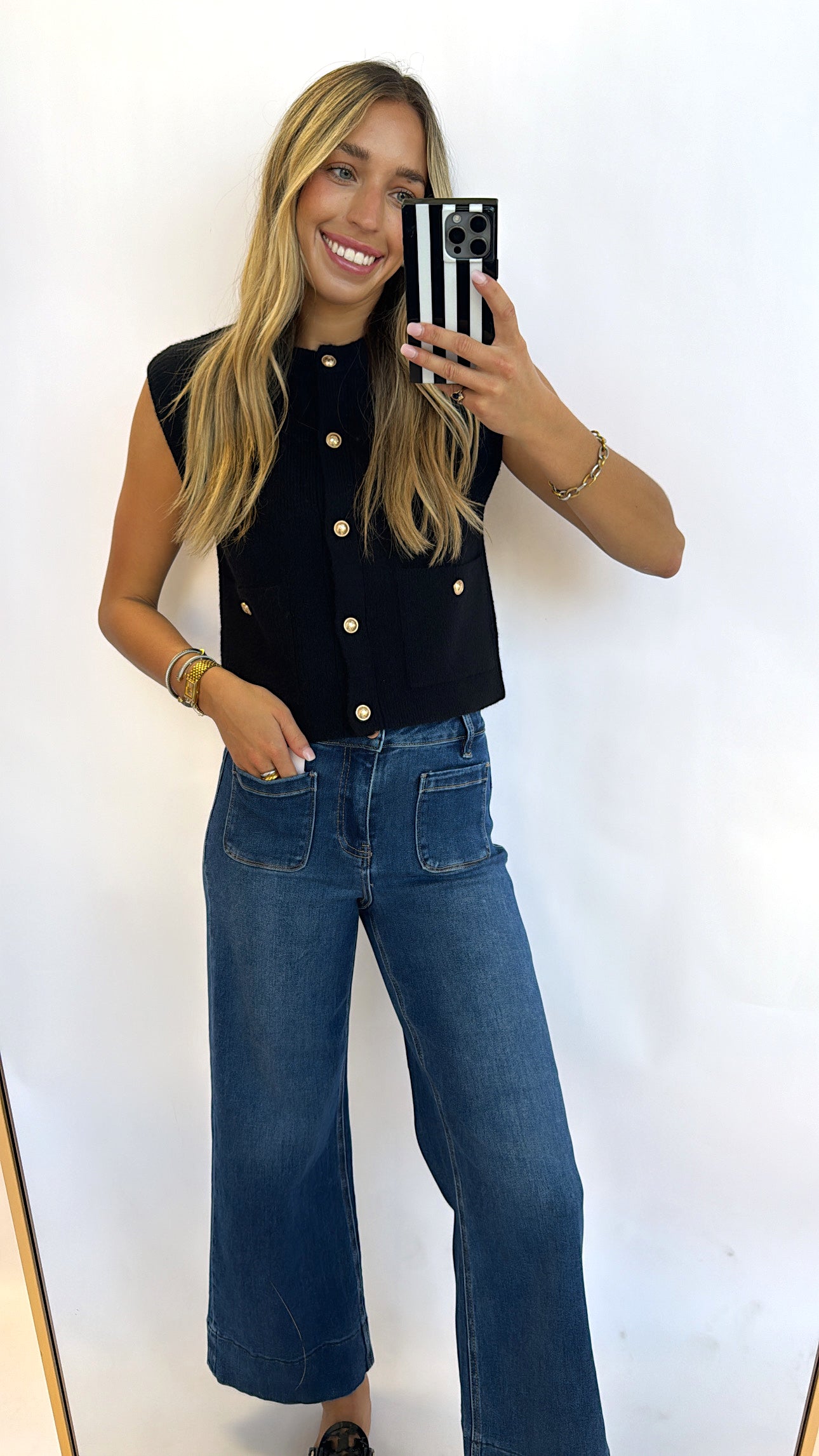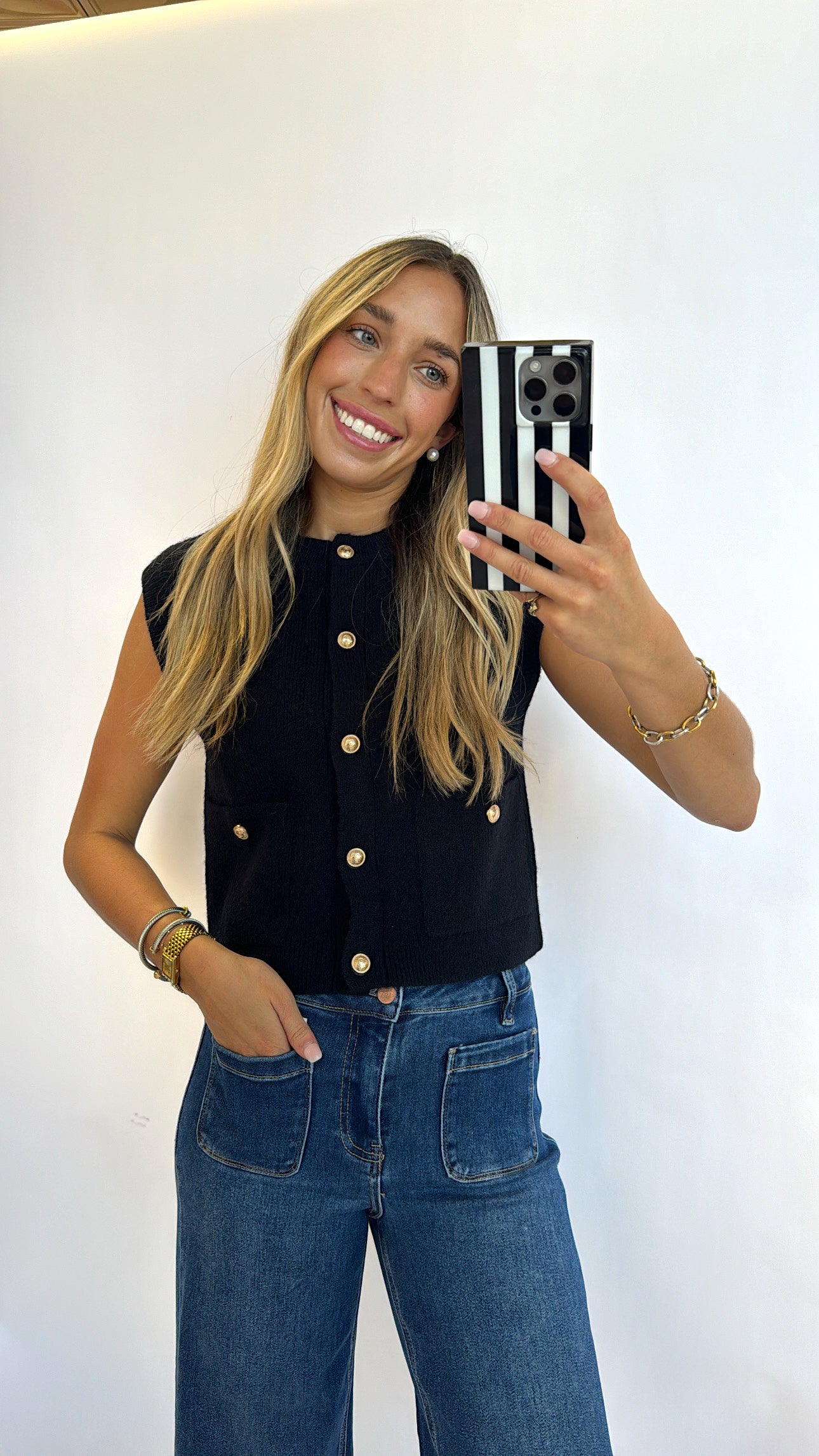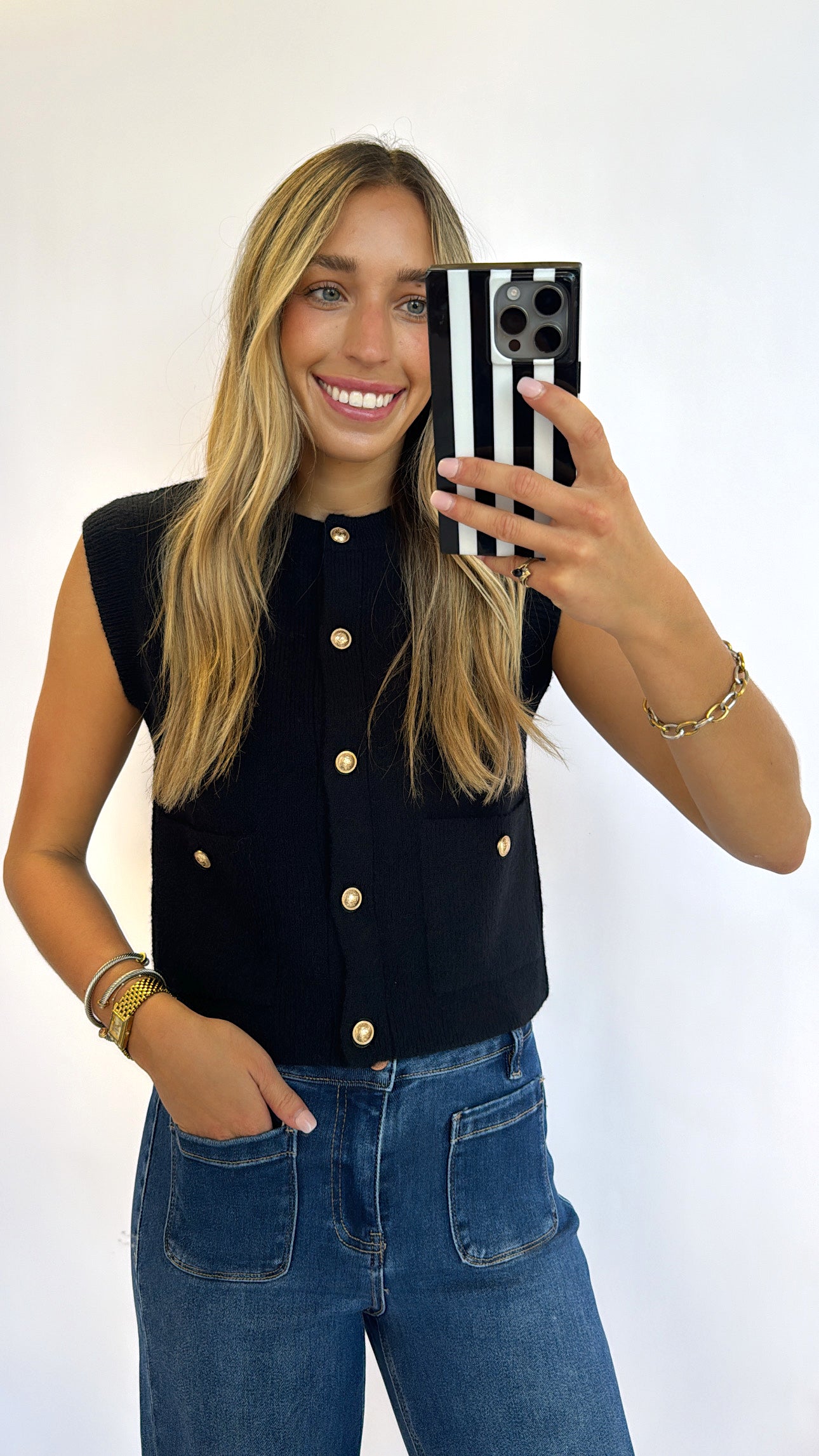BLACK GOLD BUTTON KNIT VEST