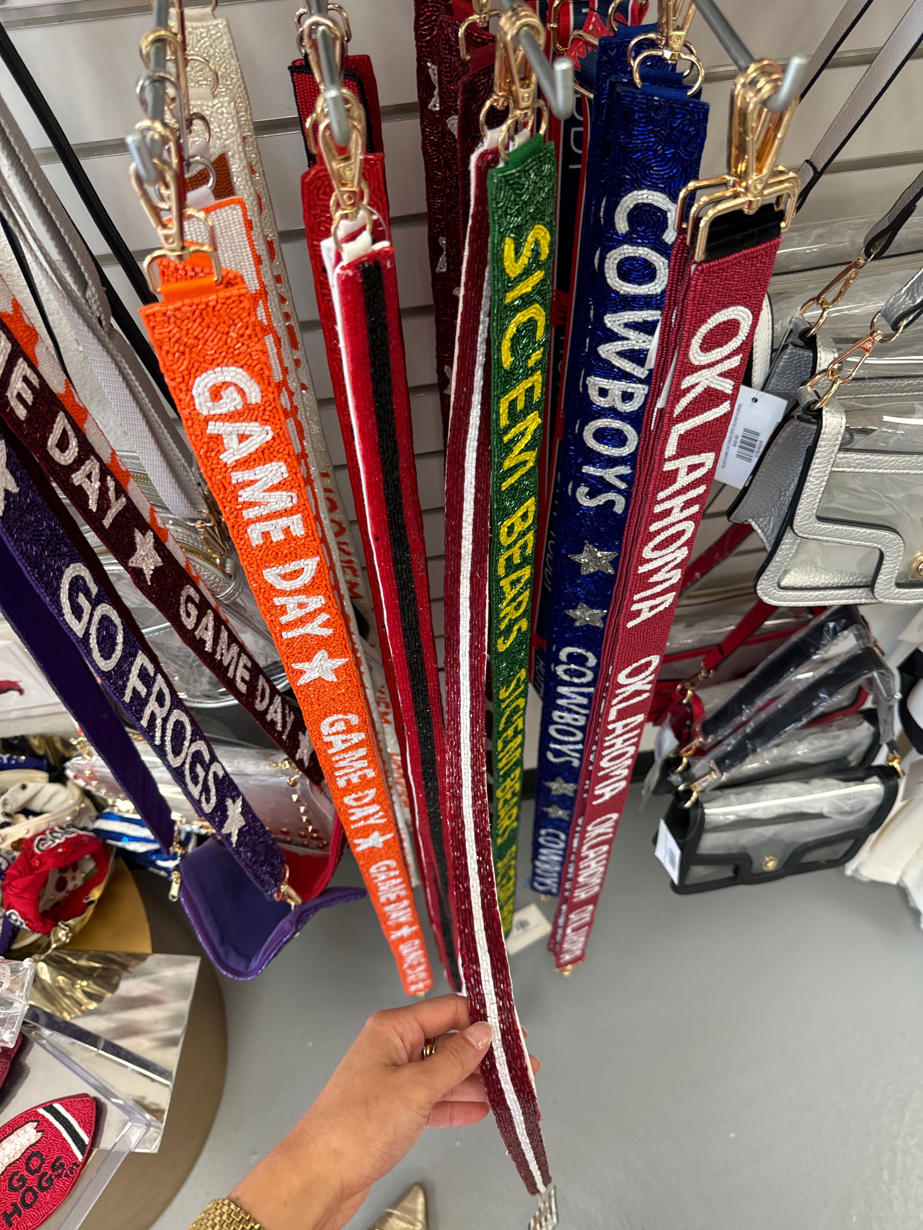 MAROON + WHITE SHINY BEADED PURSE STRAP