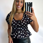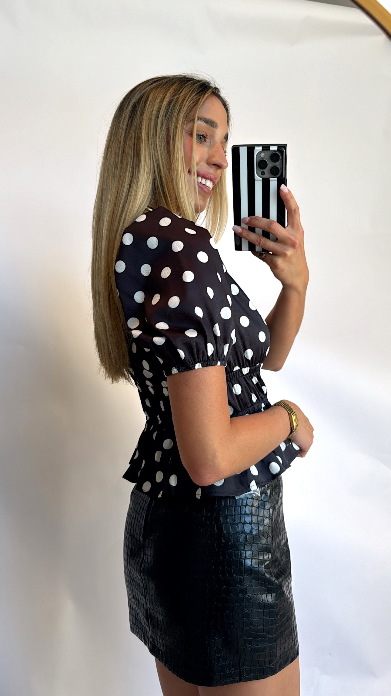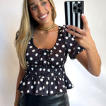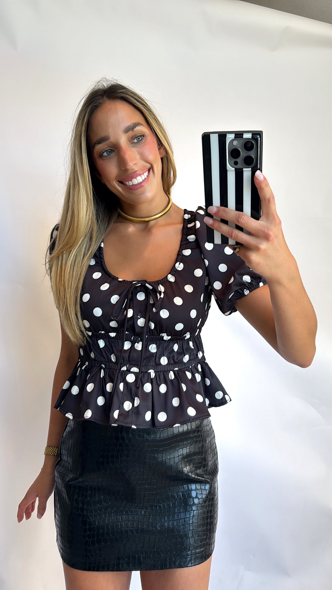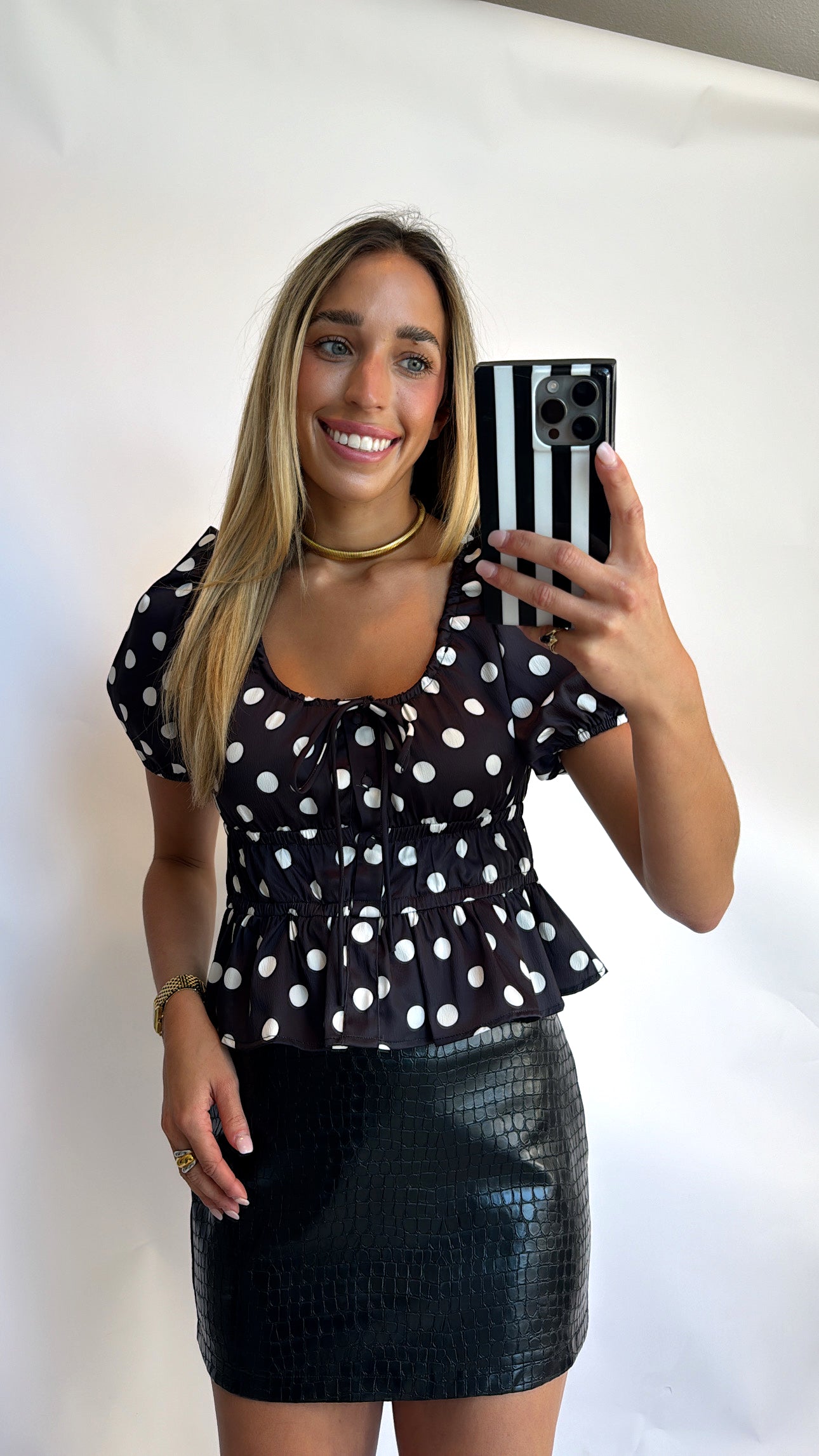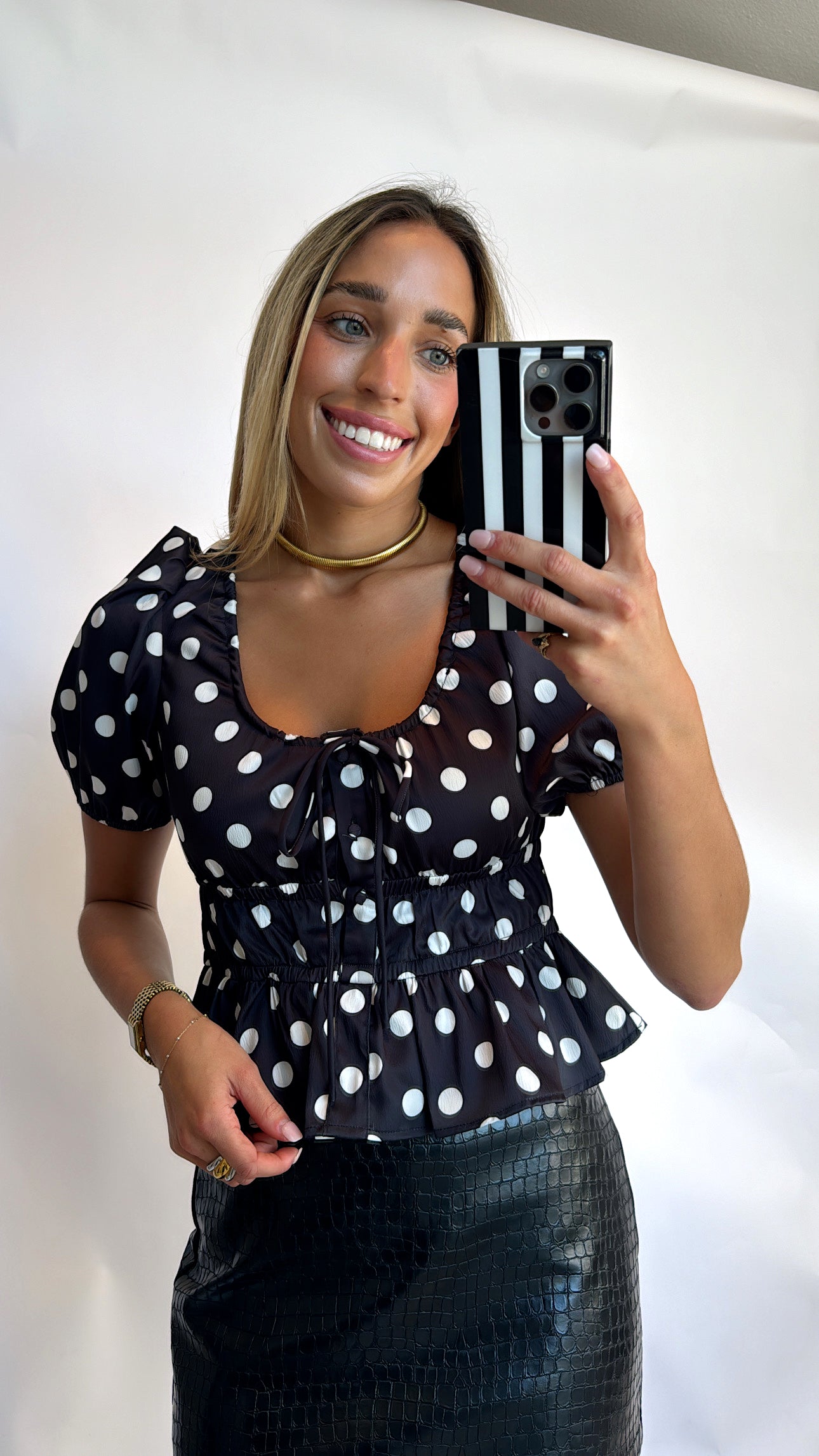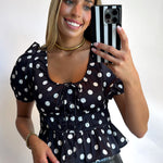 POLKA DOT PRINT SCOOP NECKLINE TOP