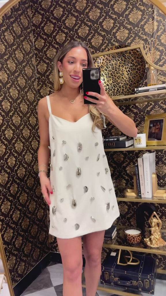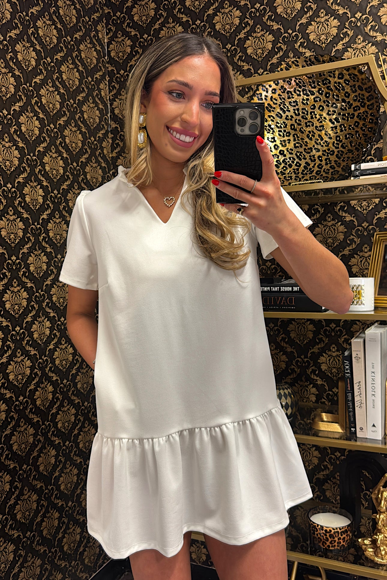 WHITE 3D FLORAL APPLIQUE MINI DRESS