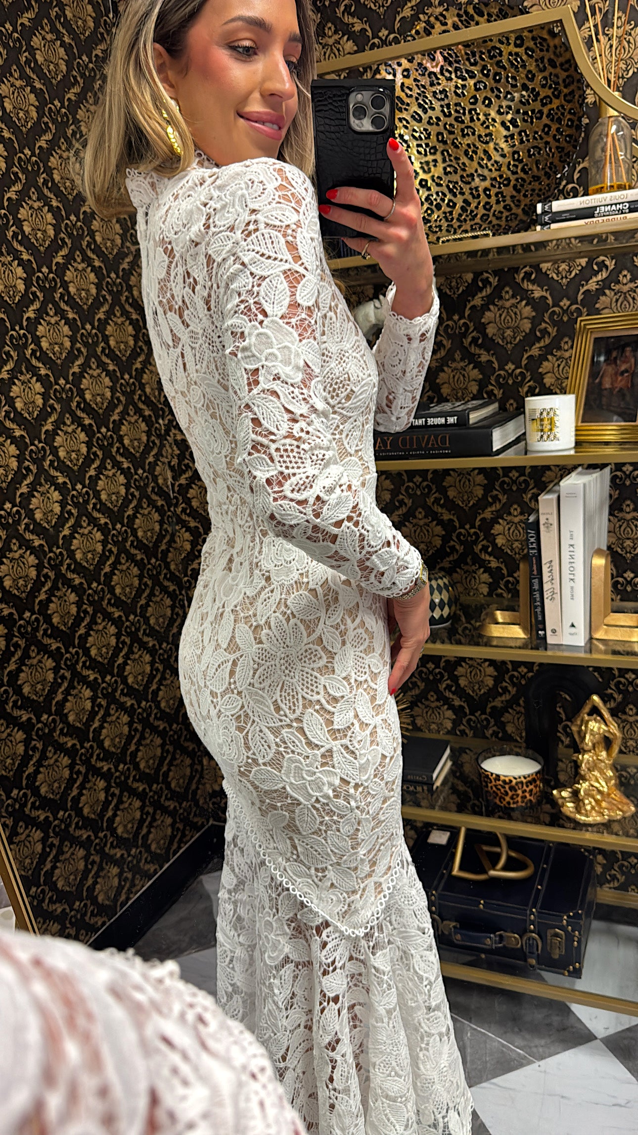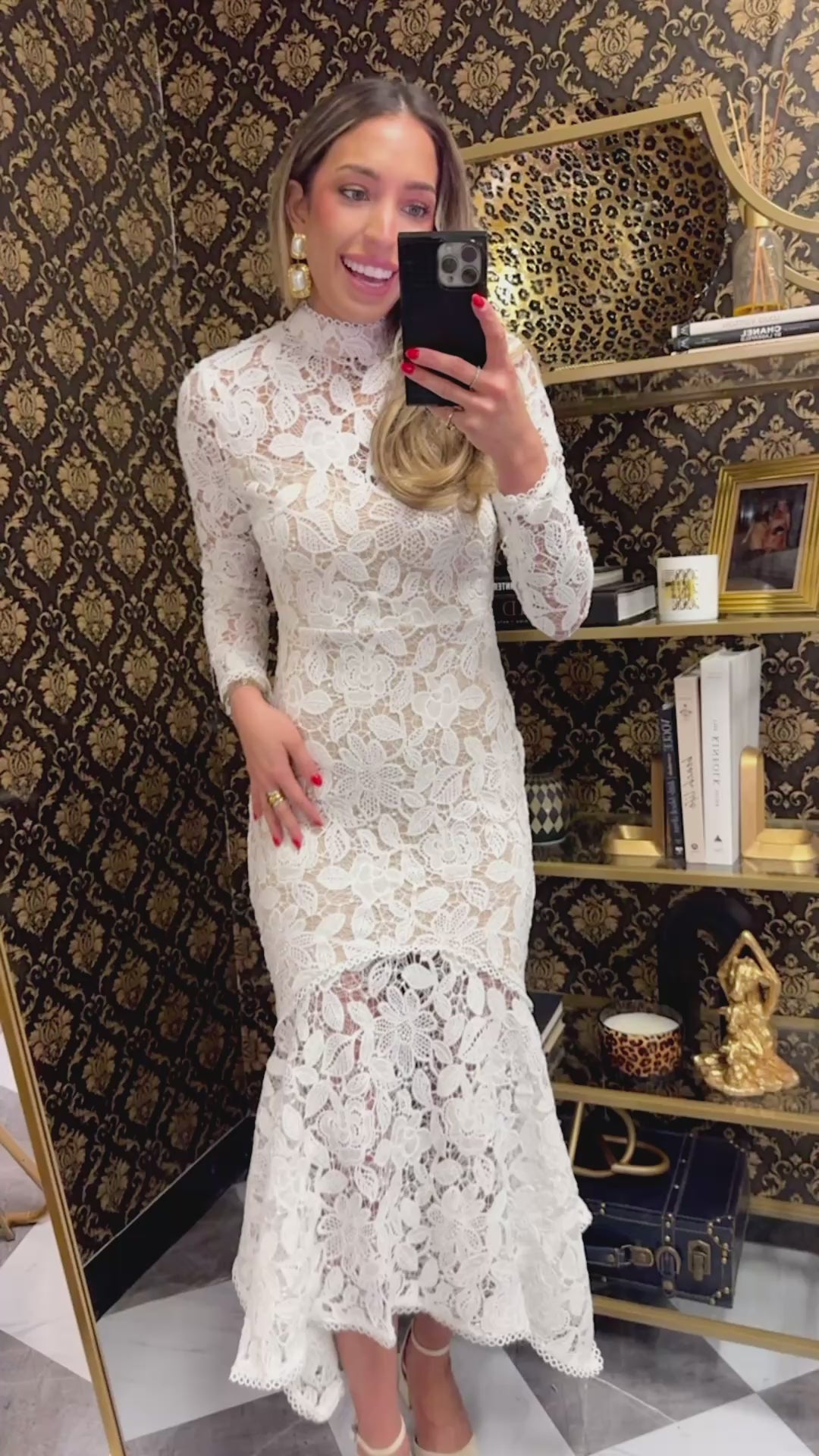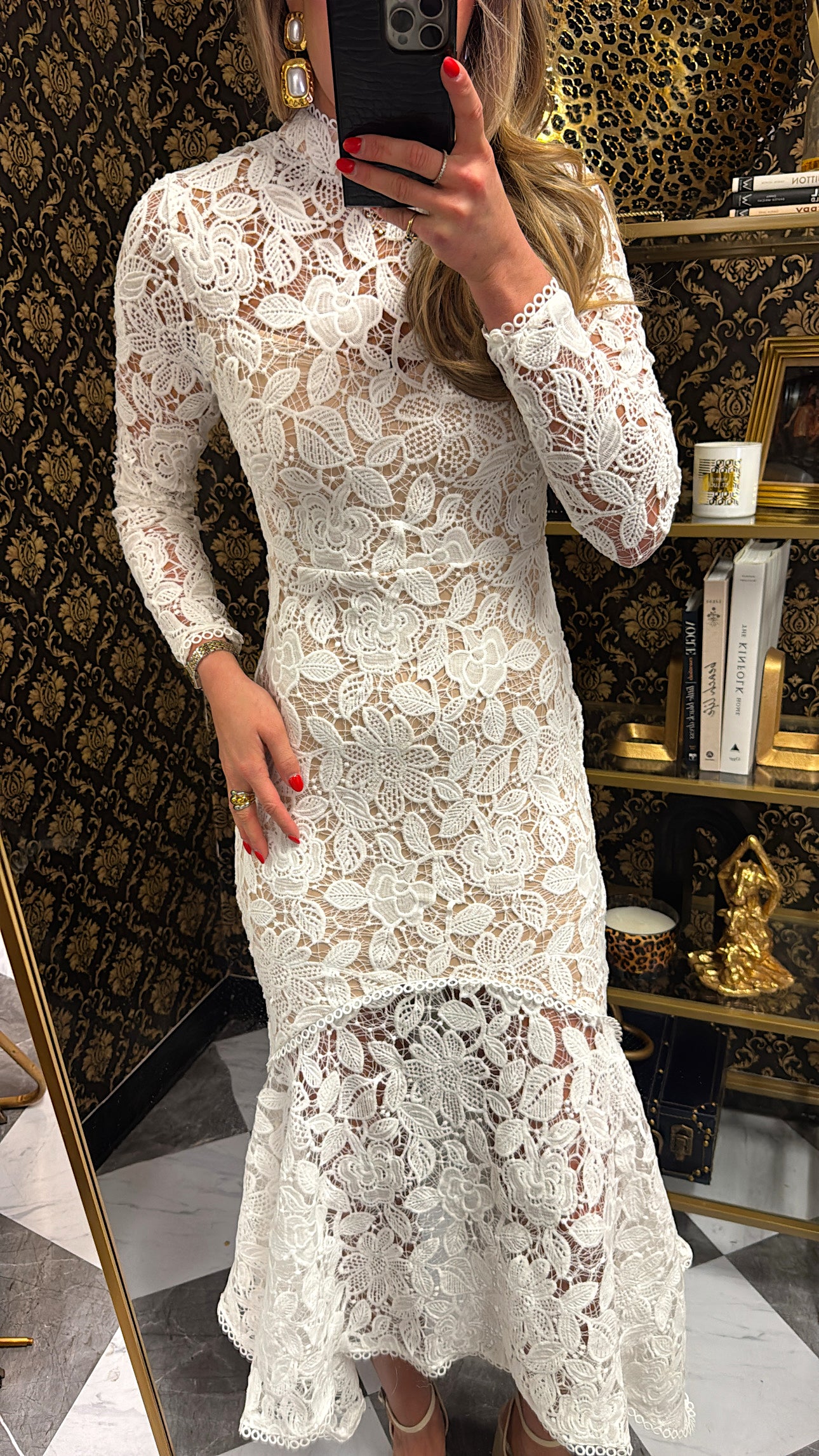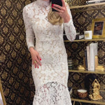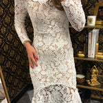 White Lace Longsleeve Midi Dress