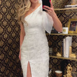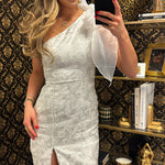 WHITE ORGANZA BOW ASYMMETRIC BODYCON MIDI DRESS
