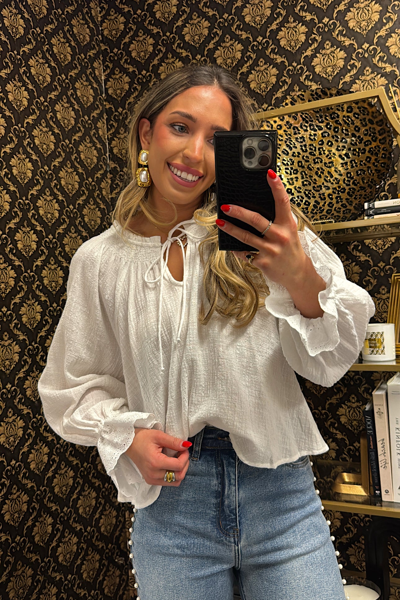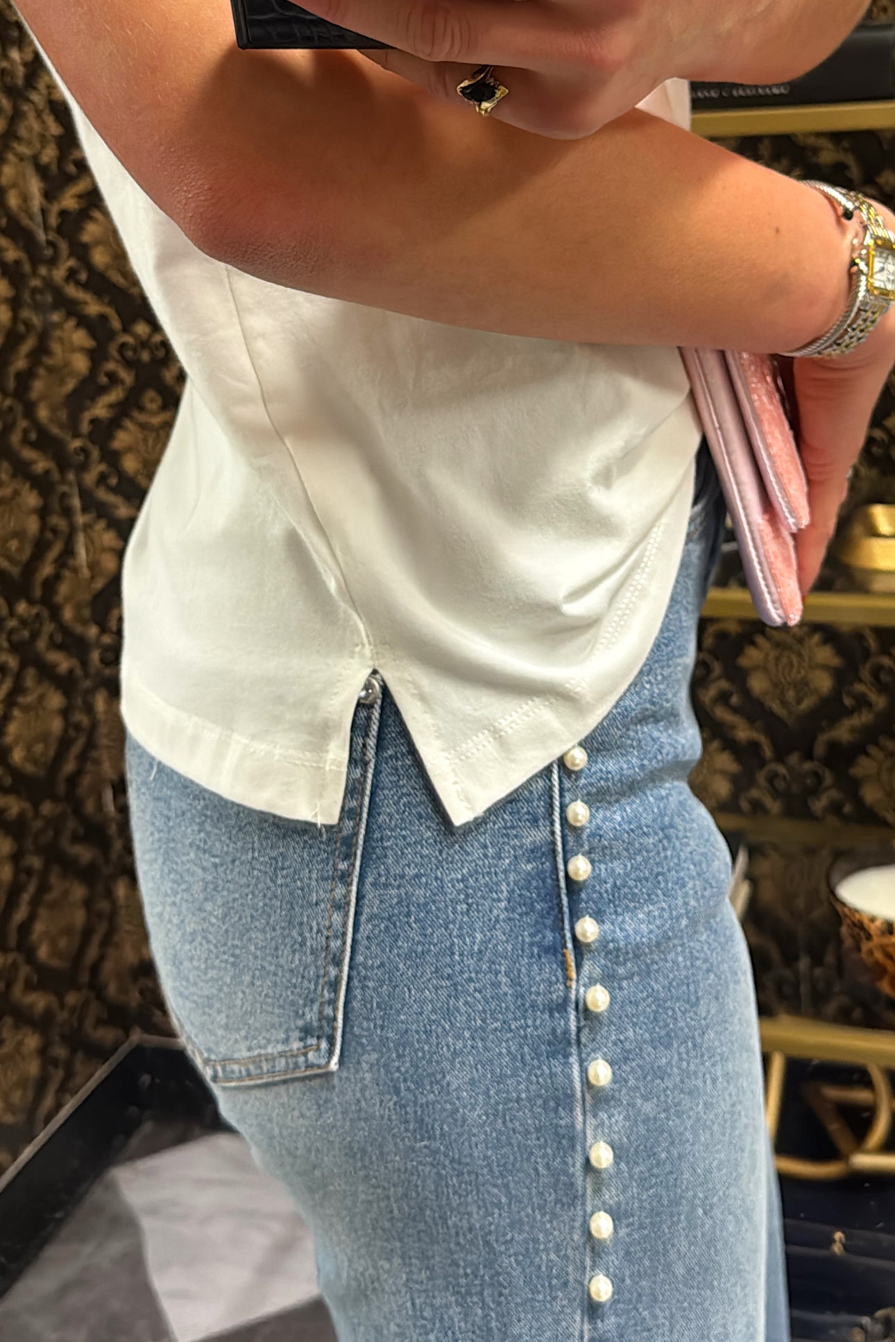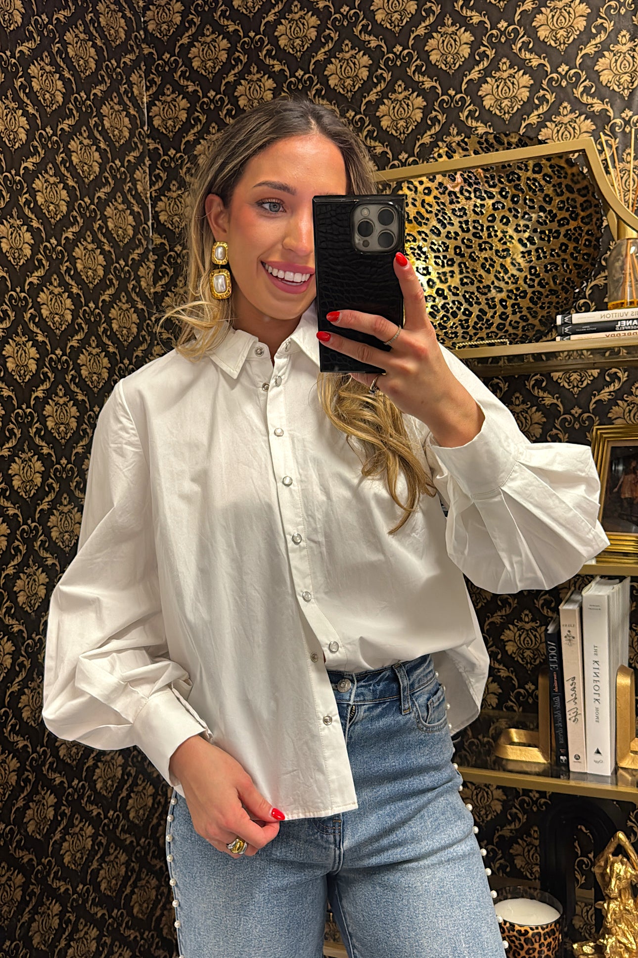 WHITE HIGH NECK IRIDESCENT BODYSUIT