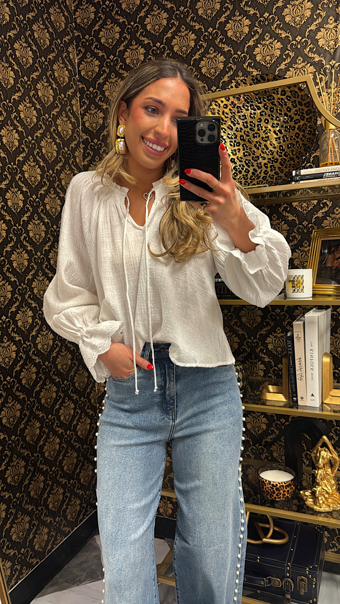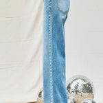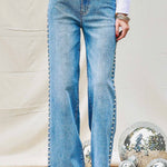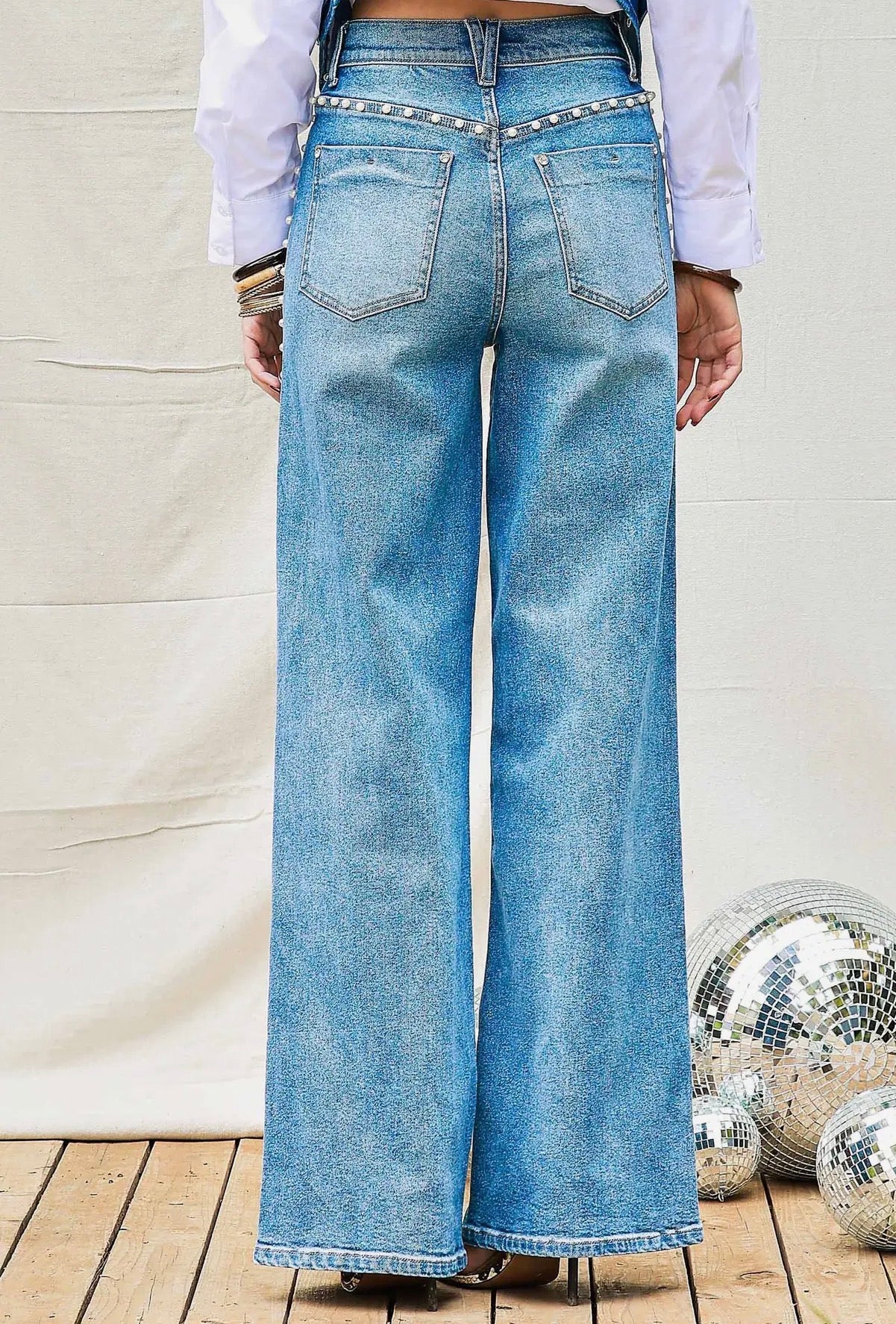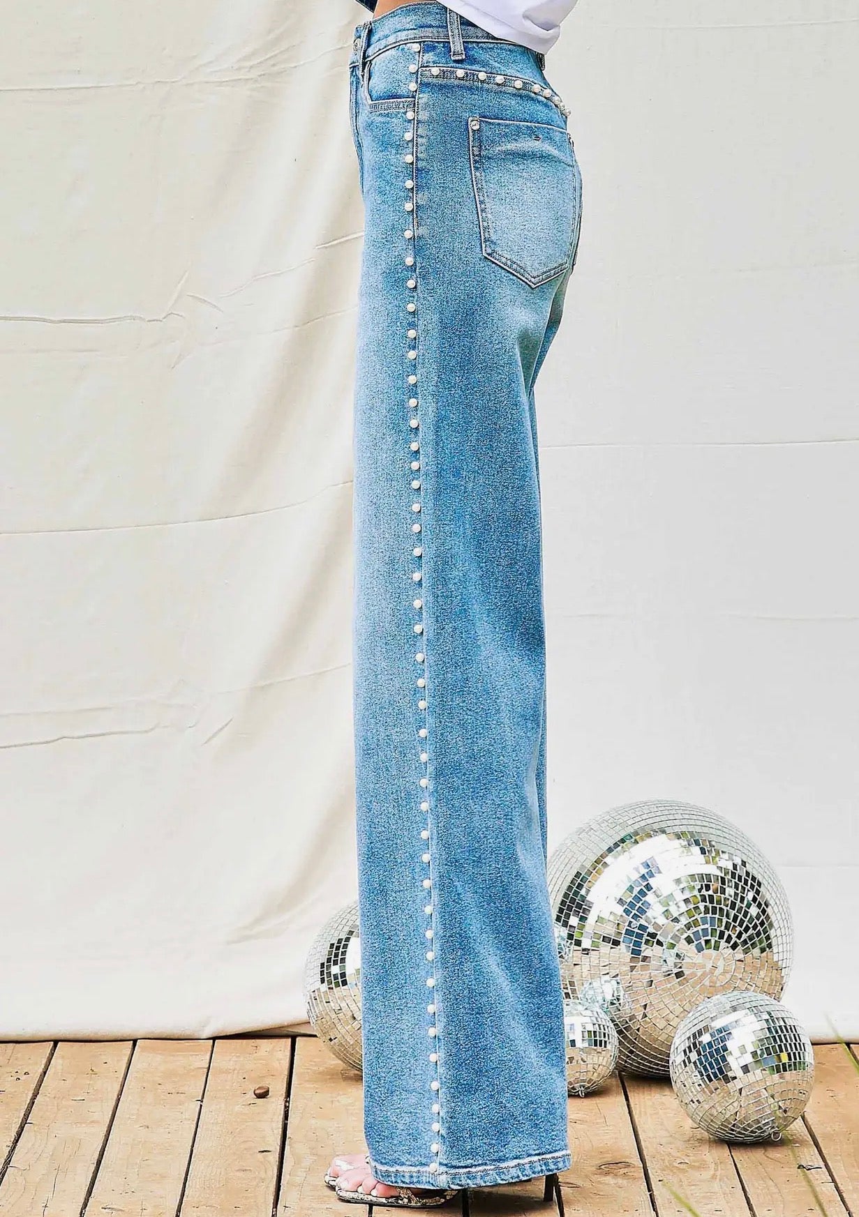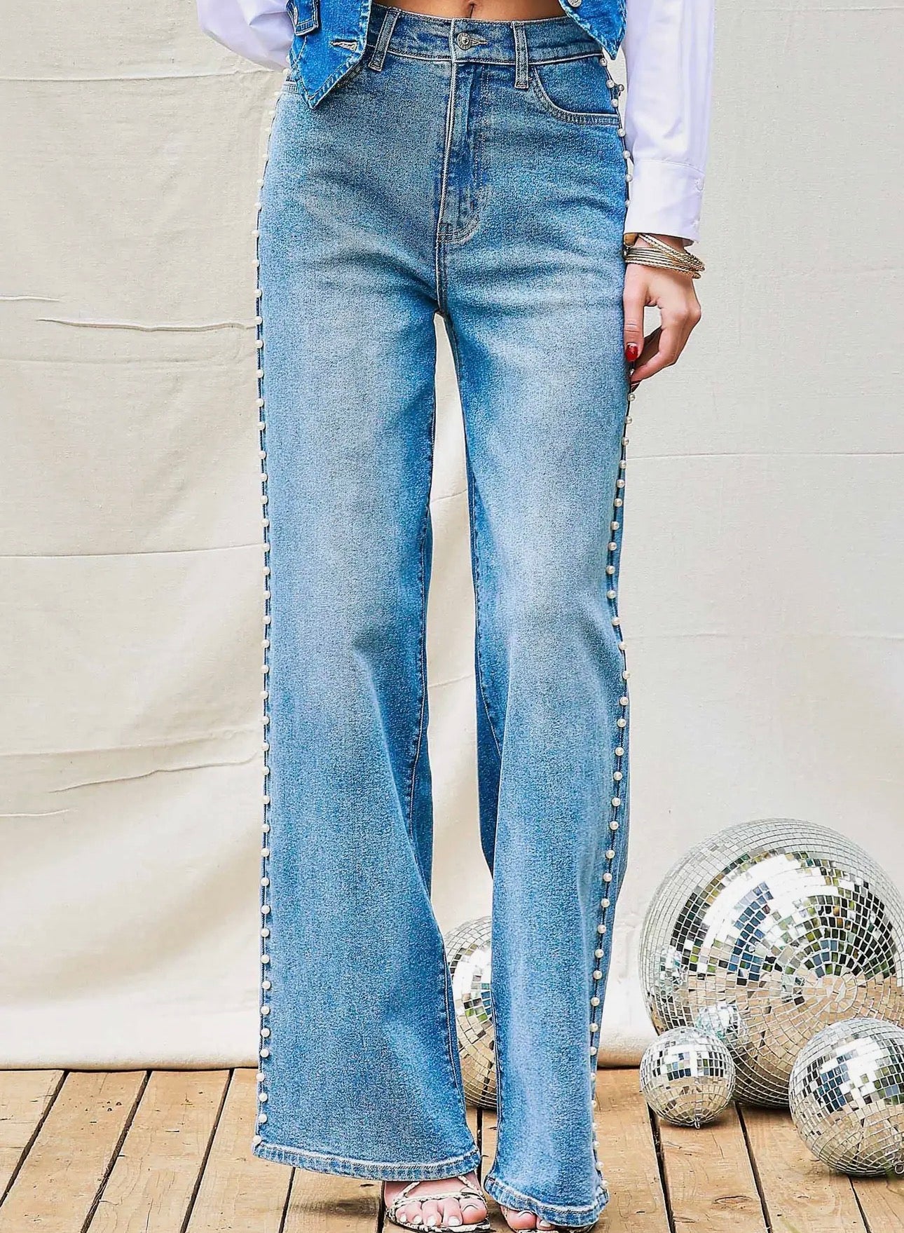 -A pair of high-rise wide-leg jeans featuring side pearl stud detail,