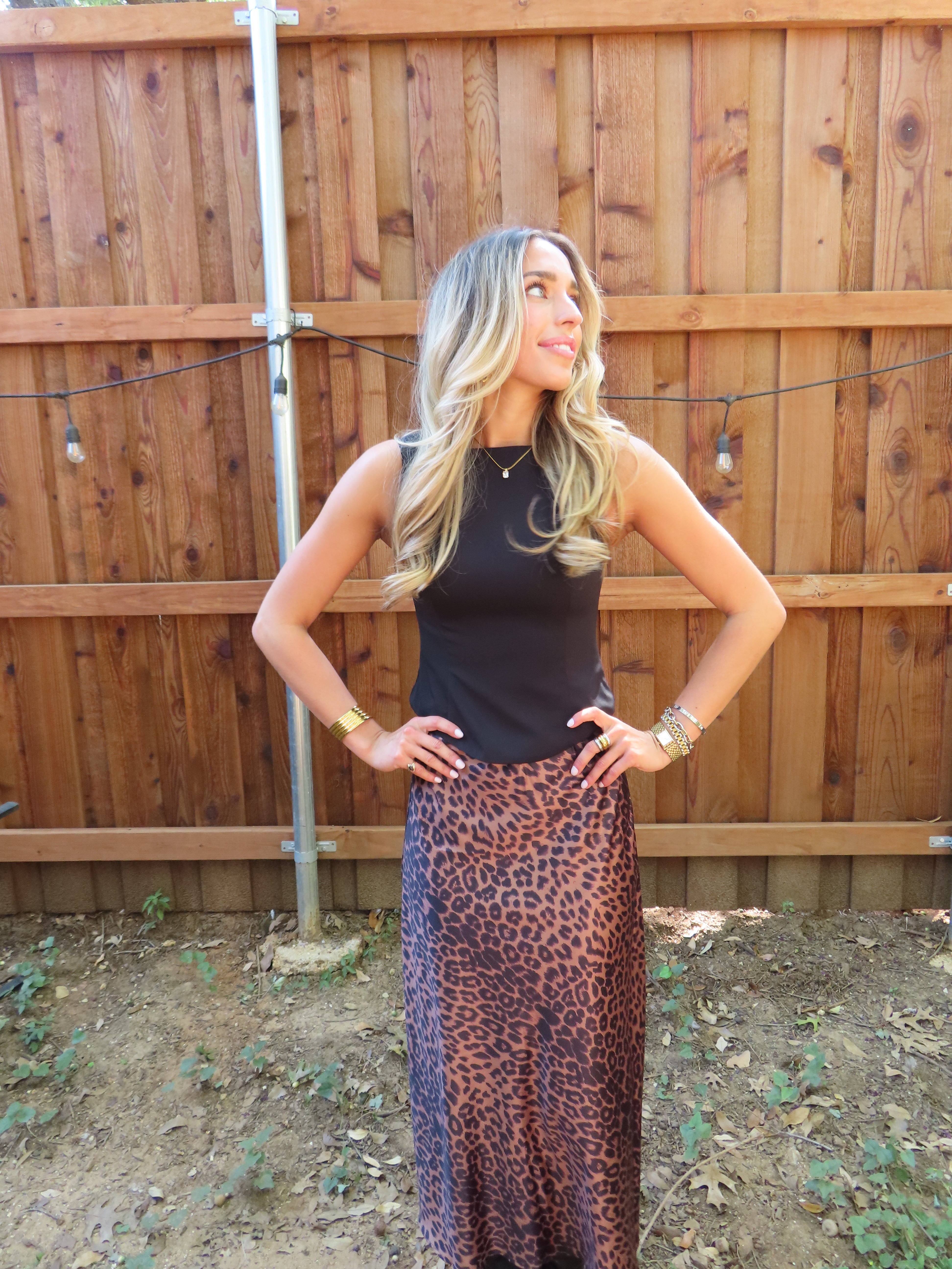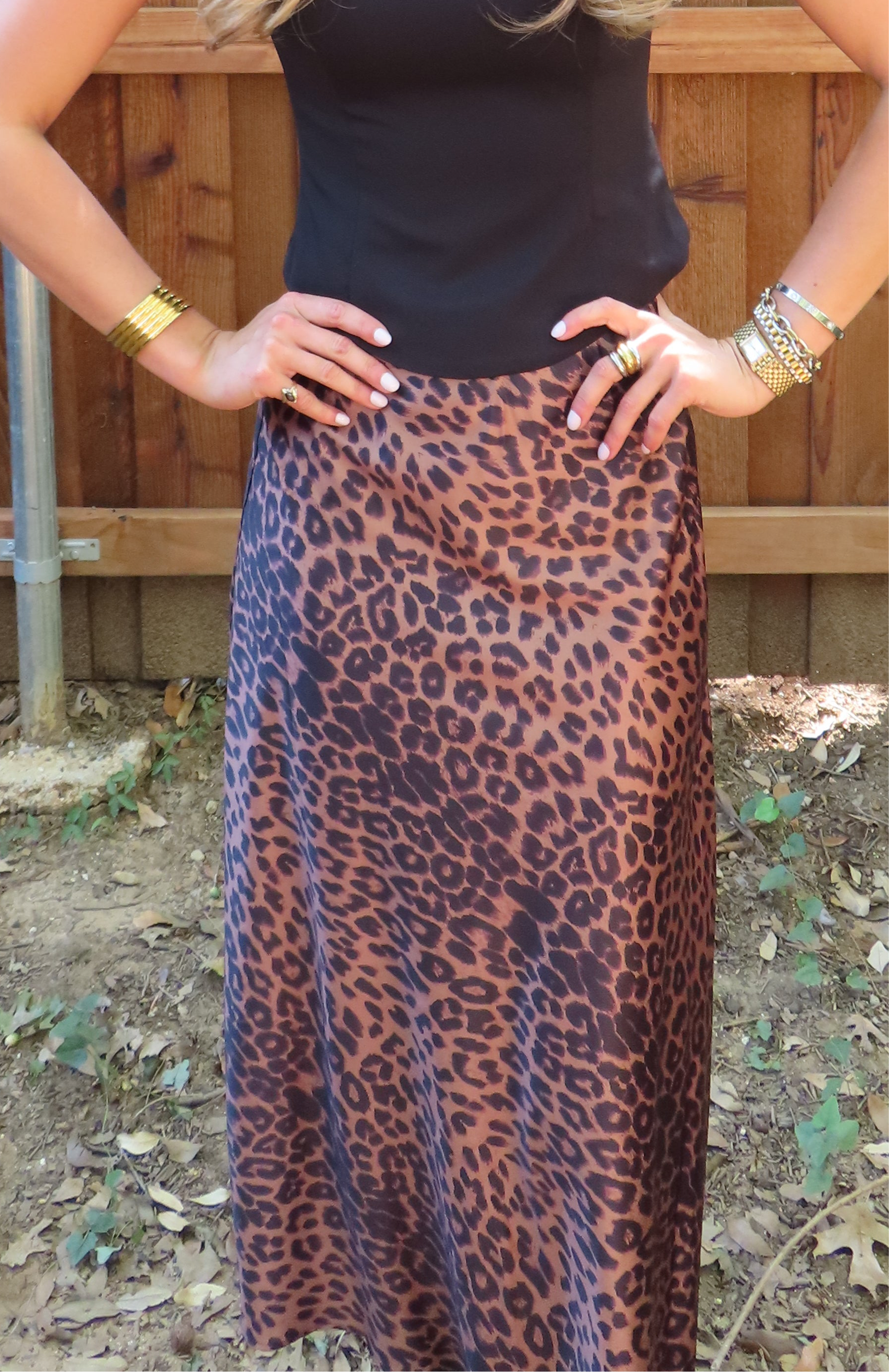 Brown Leopard Print Maxi Skirt (size medium left)