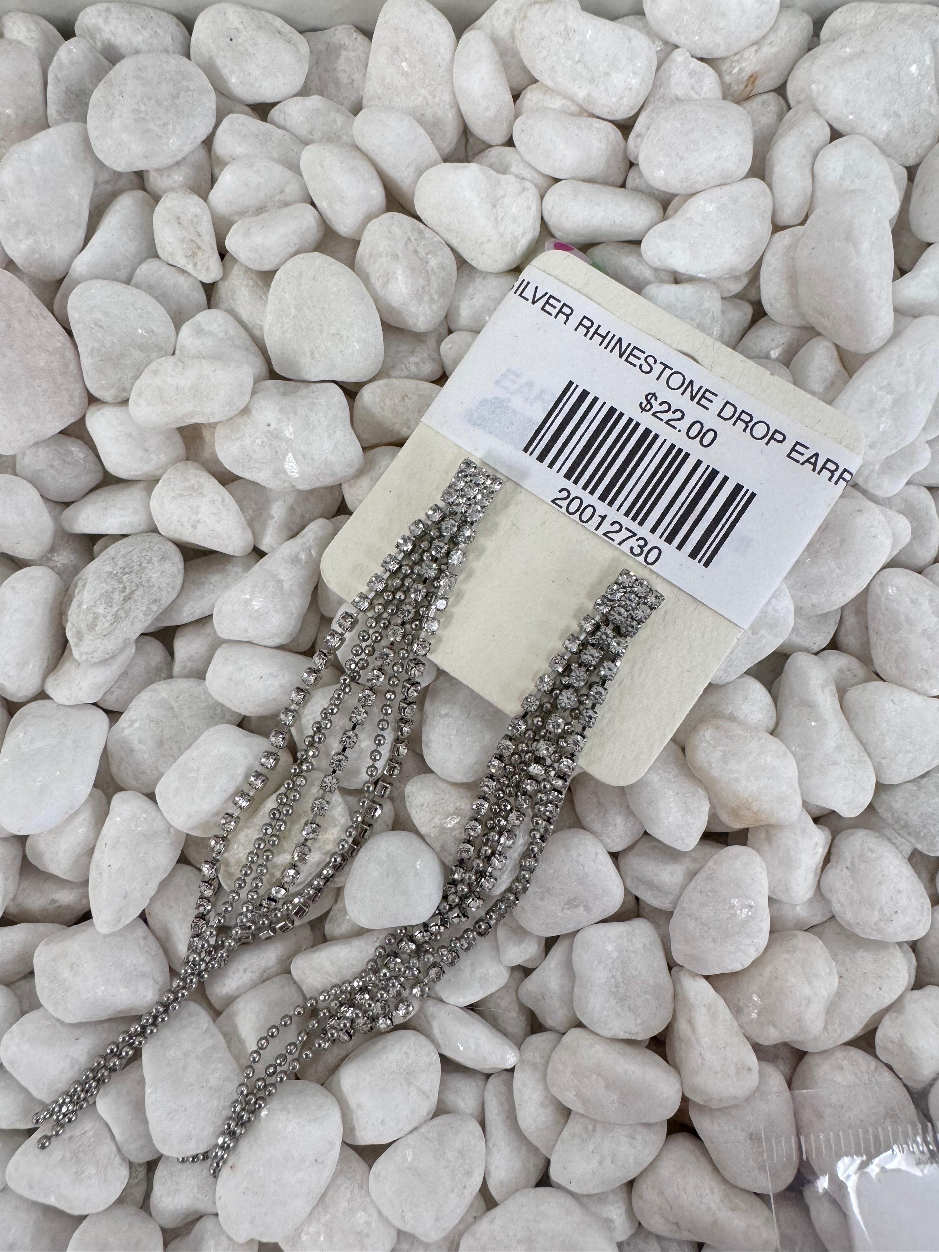 SILVER RHINESTONE DROP EARRINGS