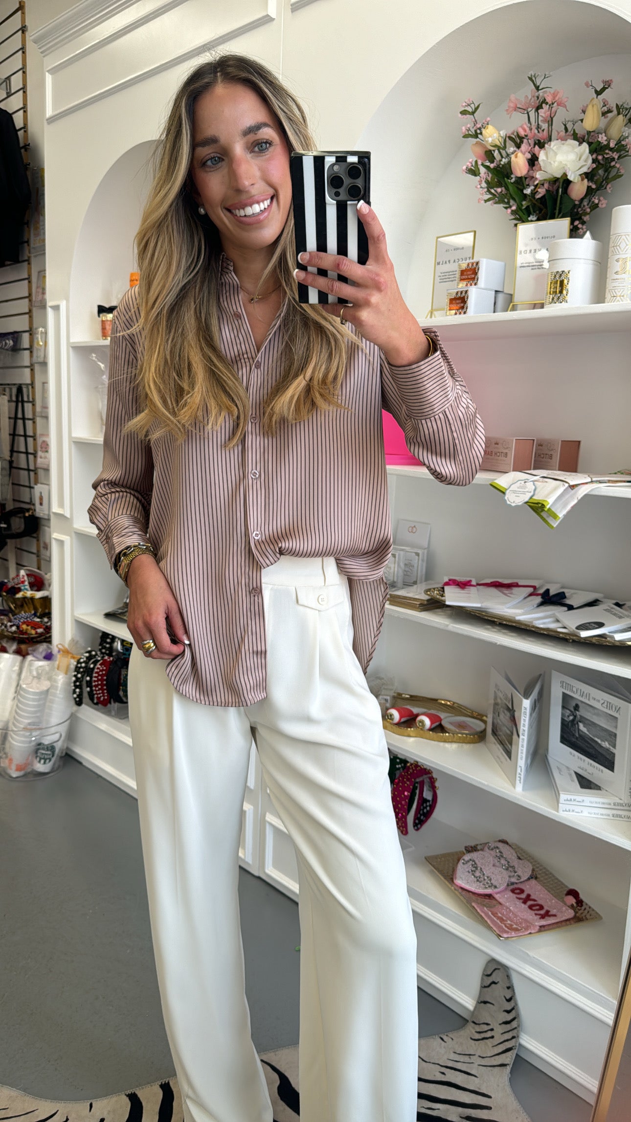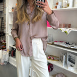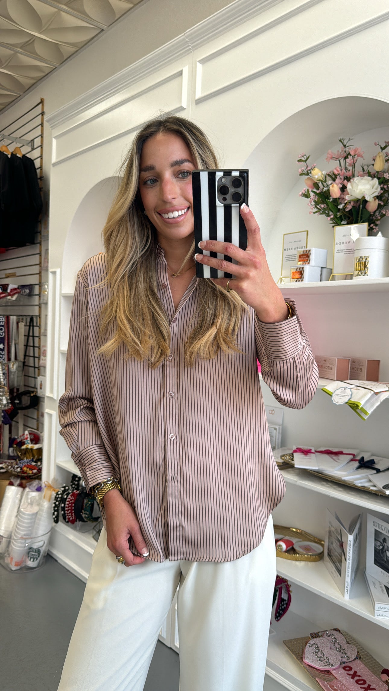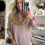 Mocha Striped Button Down Blouse