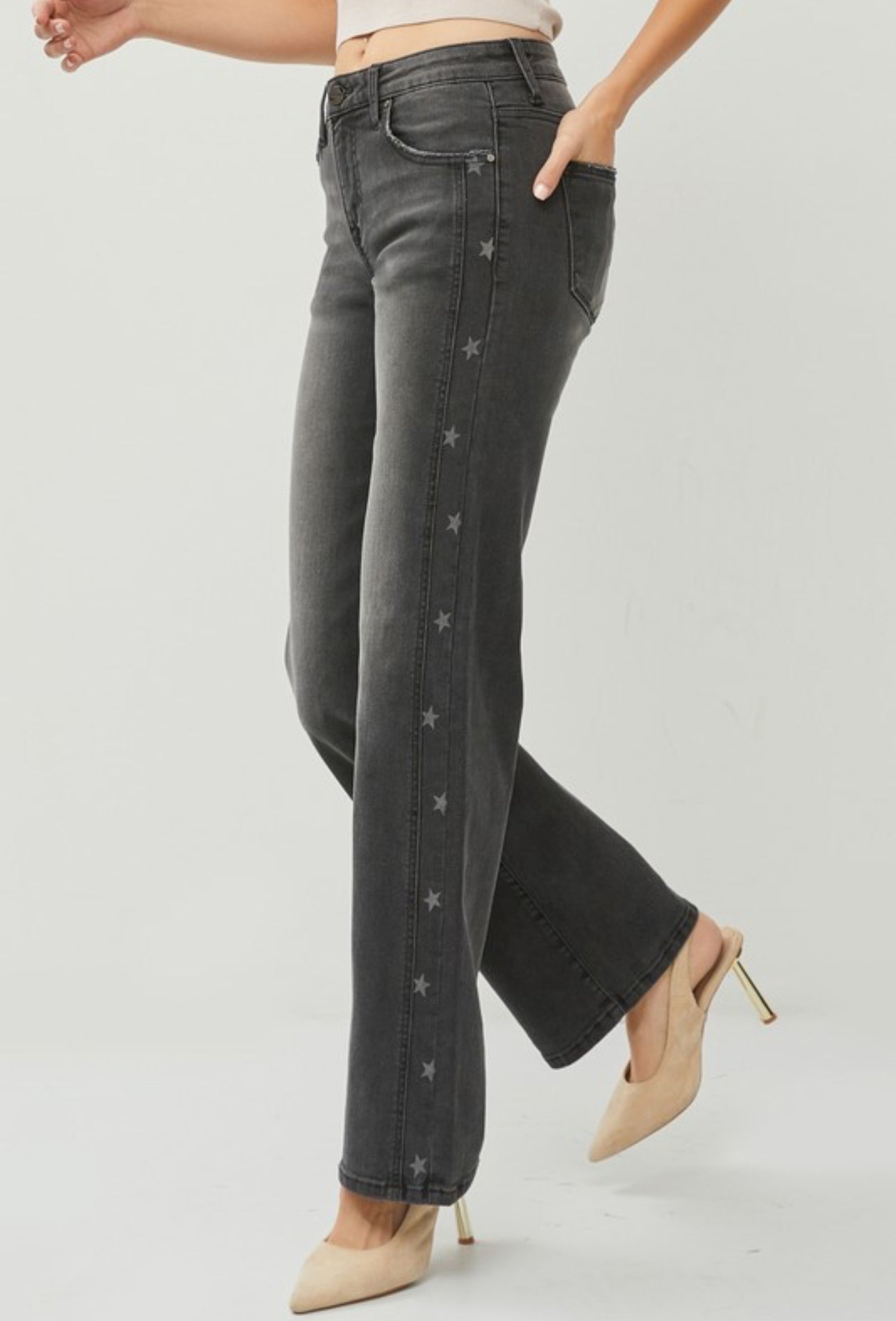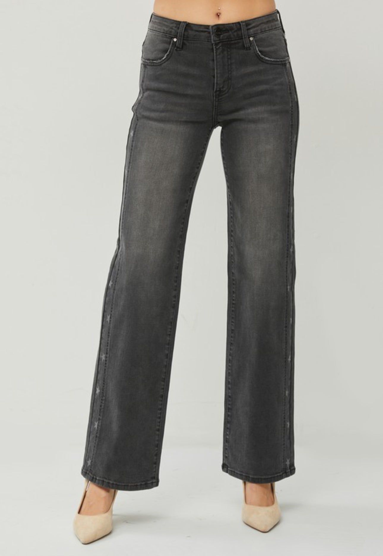 Risen Black Mid Rise Star Detail Jeans