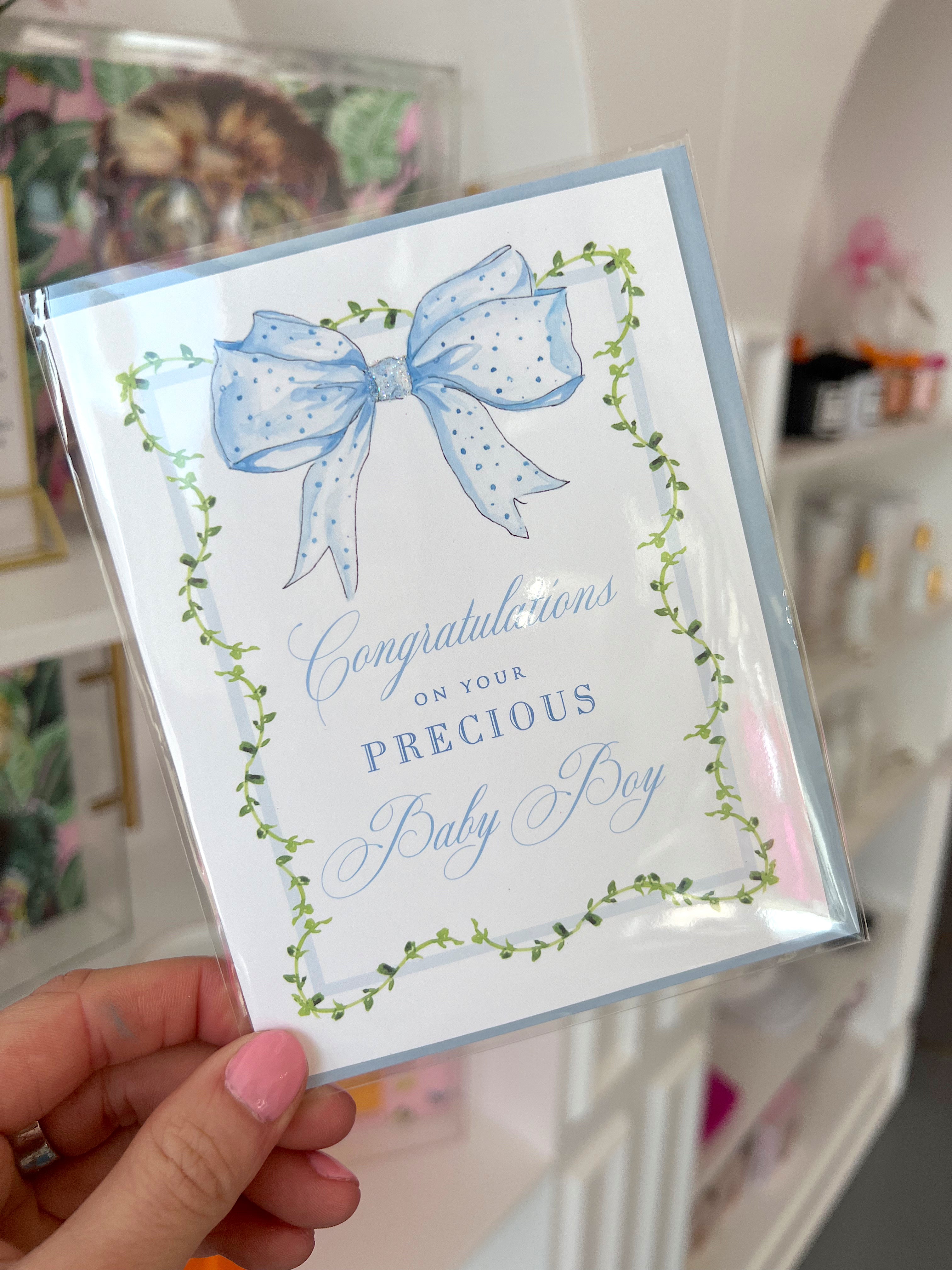 CONGRATULATIONS BABY BOY BOW CARD