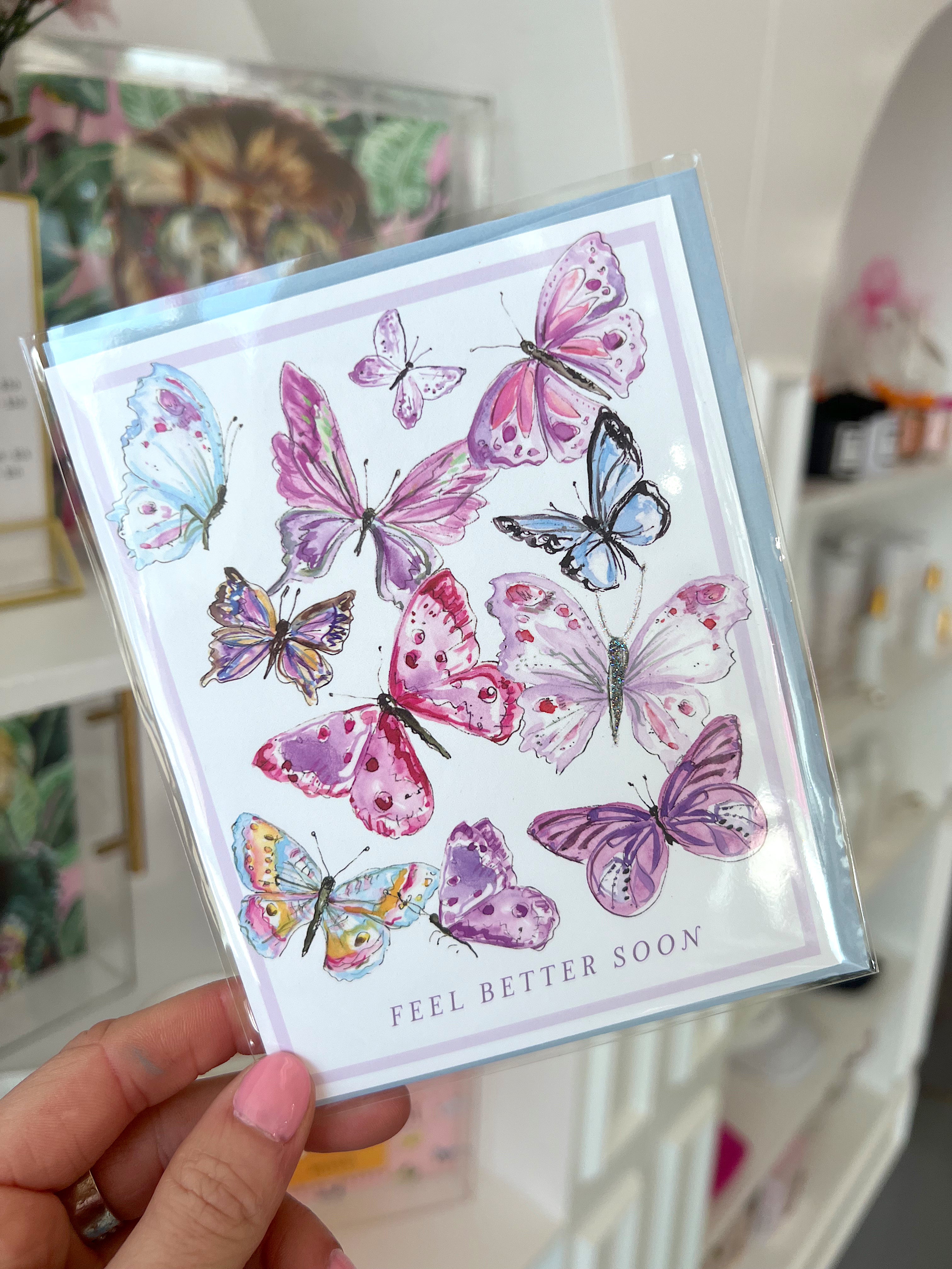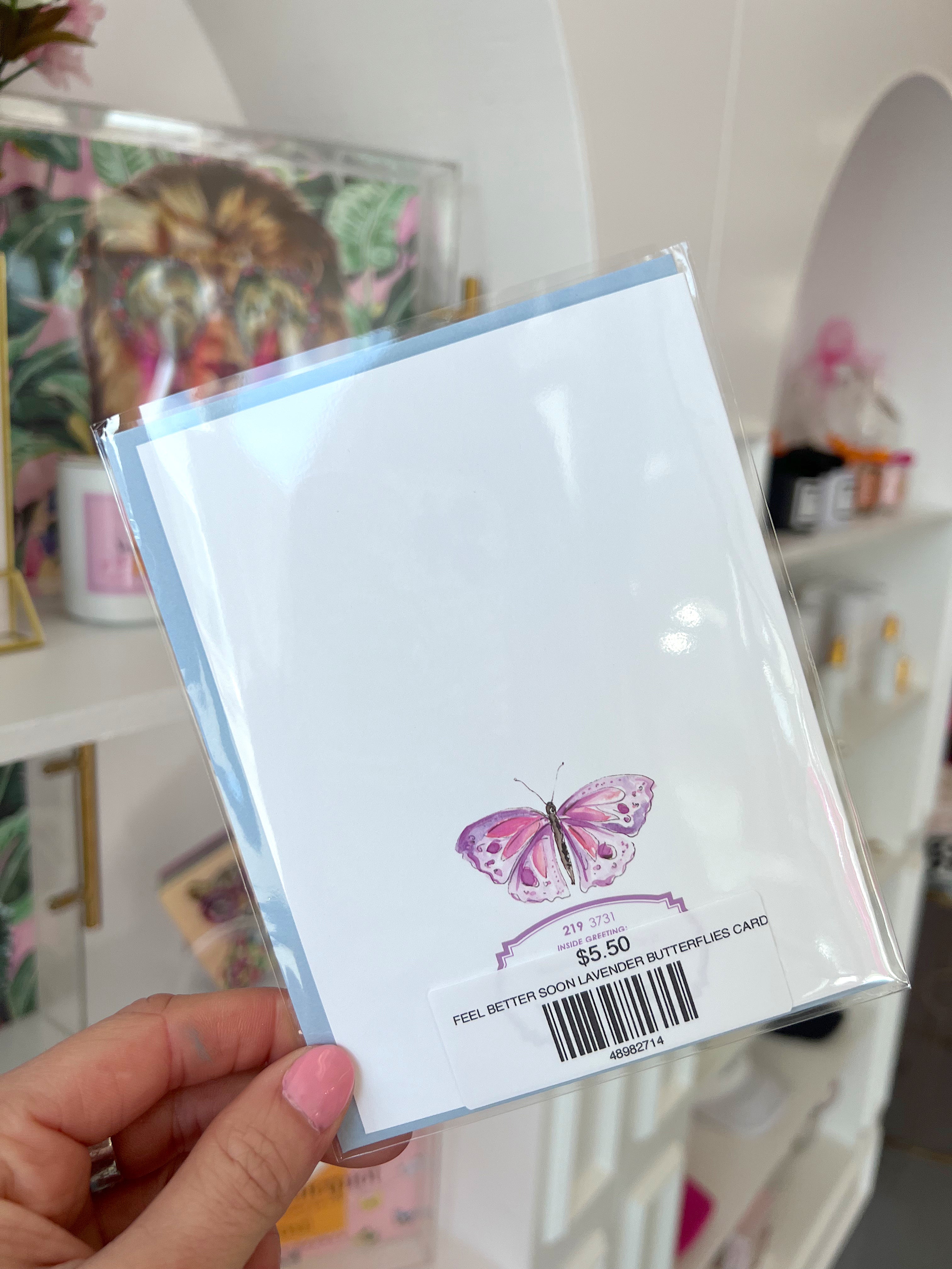 FEEL BETTER SOON LAVENDER BUTTERFLIES CARD
