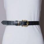 Black Faux Alligator Skin Leather Belt