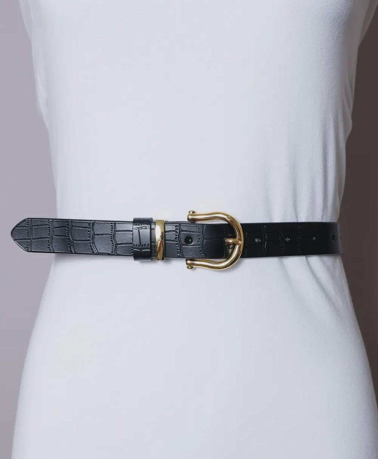 This fashion belt features an elegant alligator pattern and a durable design. Available wholesale, it’s a chic accessory with a gold buckle, ideal for jeans or classic outfits. Made from high-quality faux leather, this adjustable, trendy belt is a must-have for any wardrobe, offering a stylish, elegant touch to your ensemble.