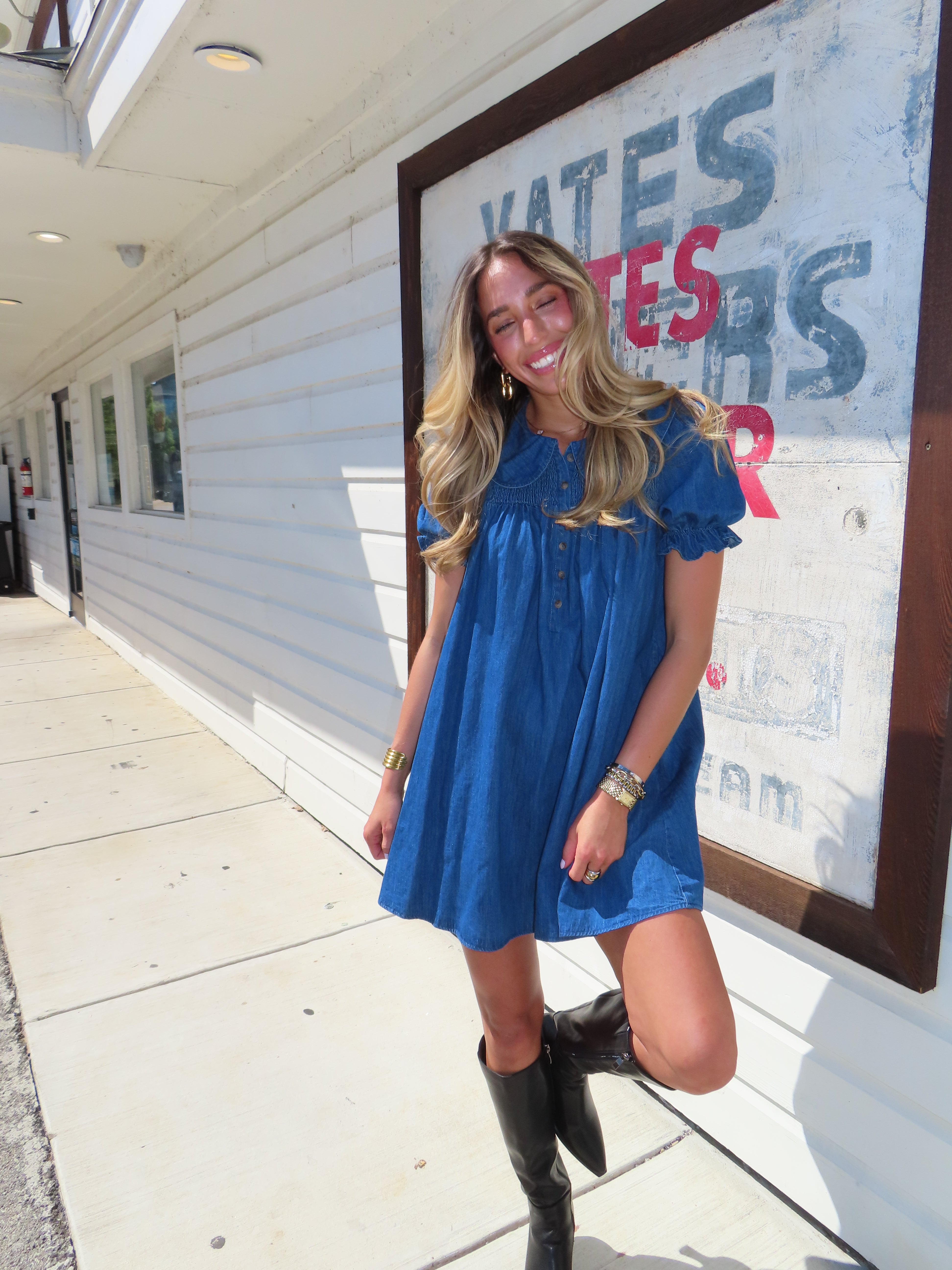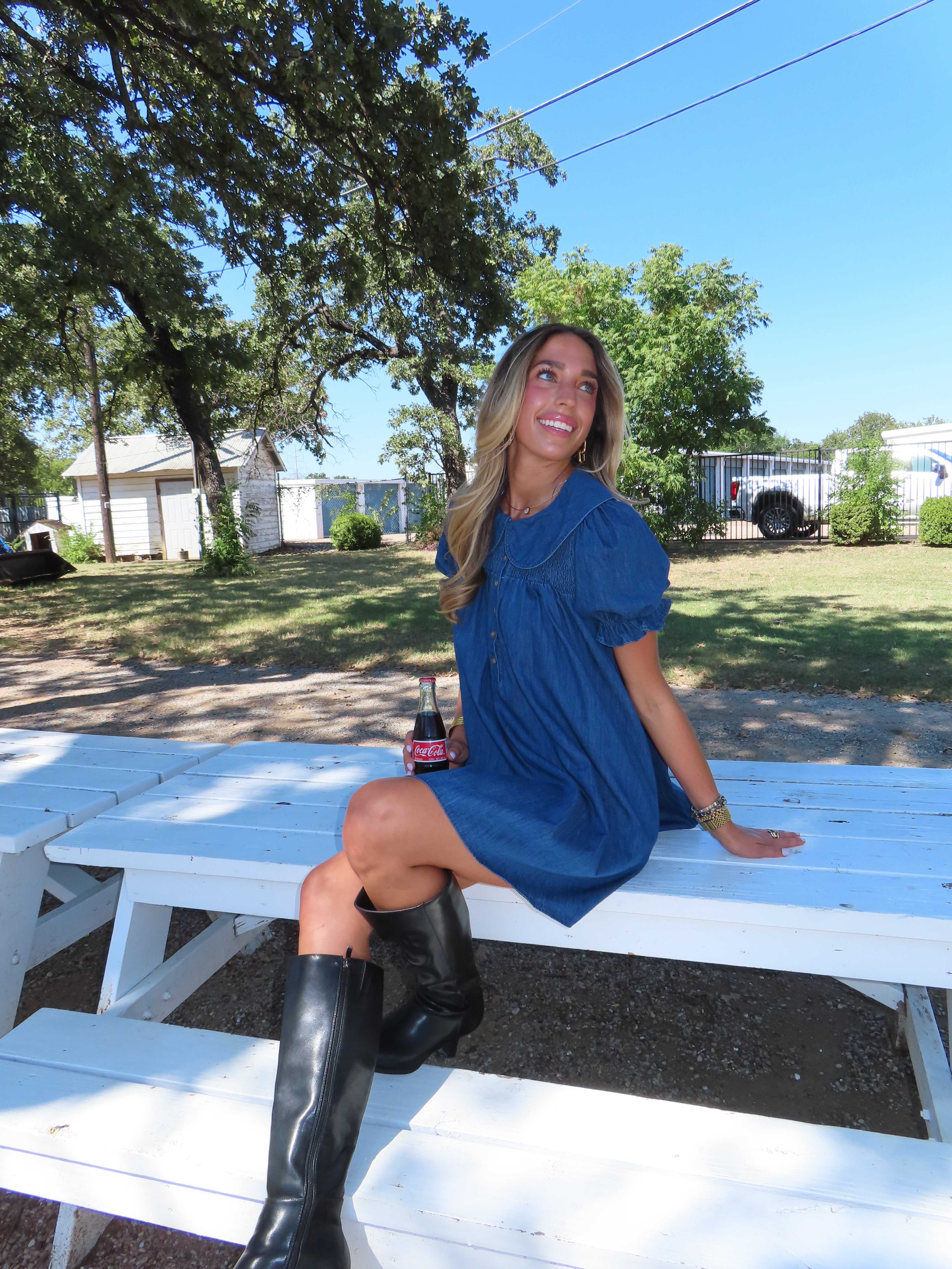 DENIM PUFF SLEEVE COLLARED DRESS