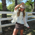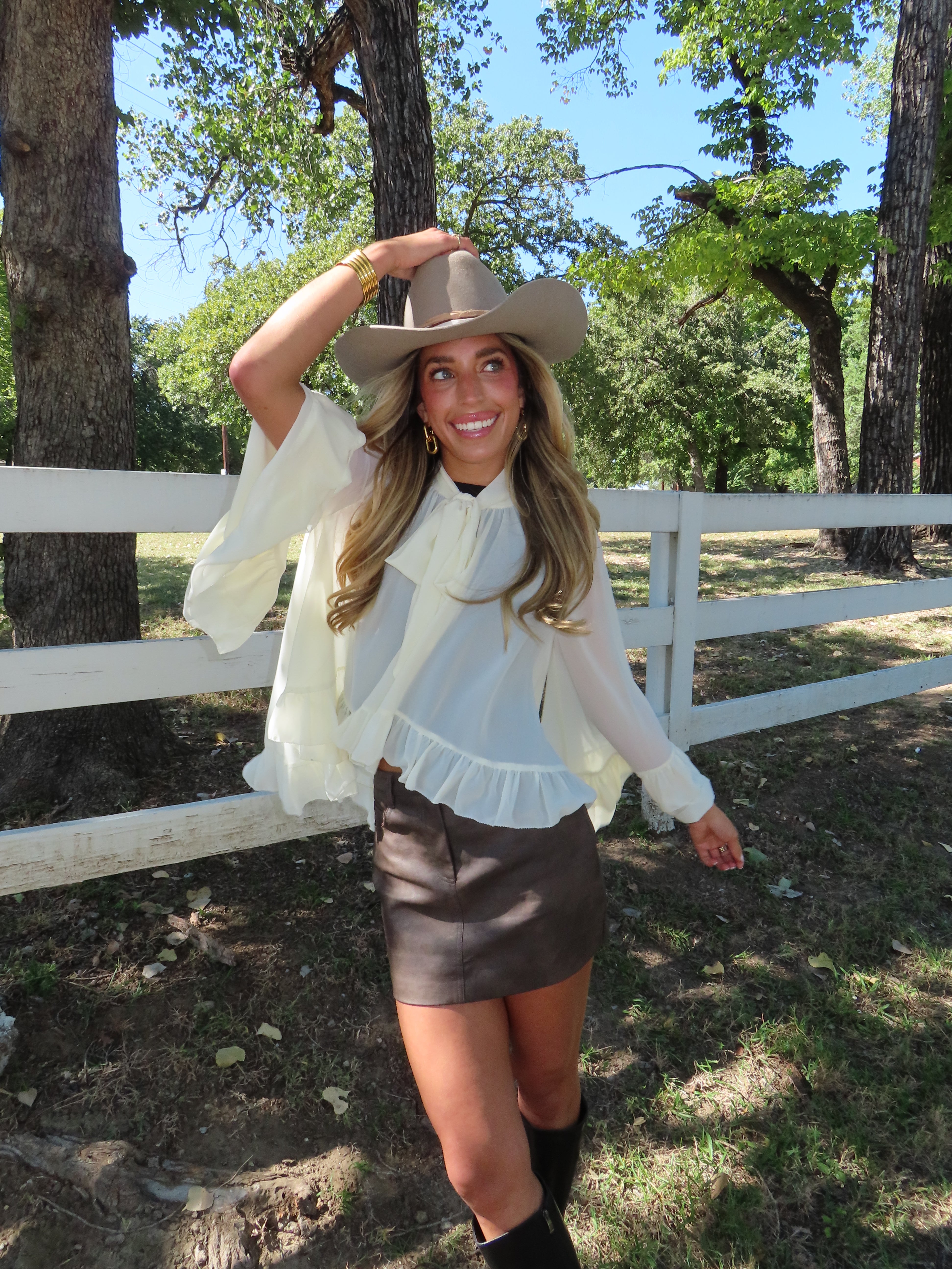 IVORY RUFFLE CHIFFON BLOUSE BELL SLEEVE TOP