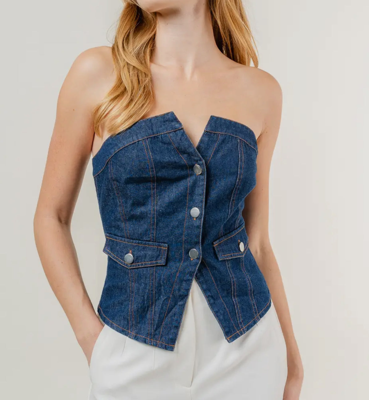 Denim Strapless Button Corset Top