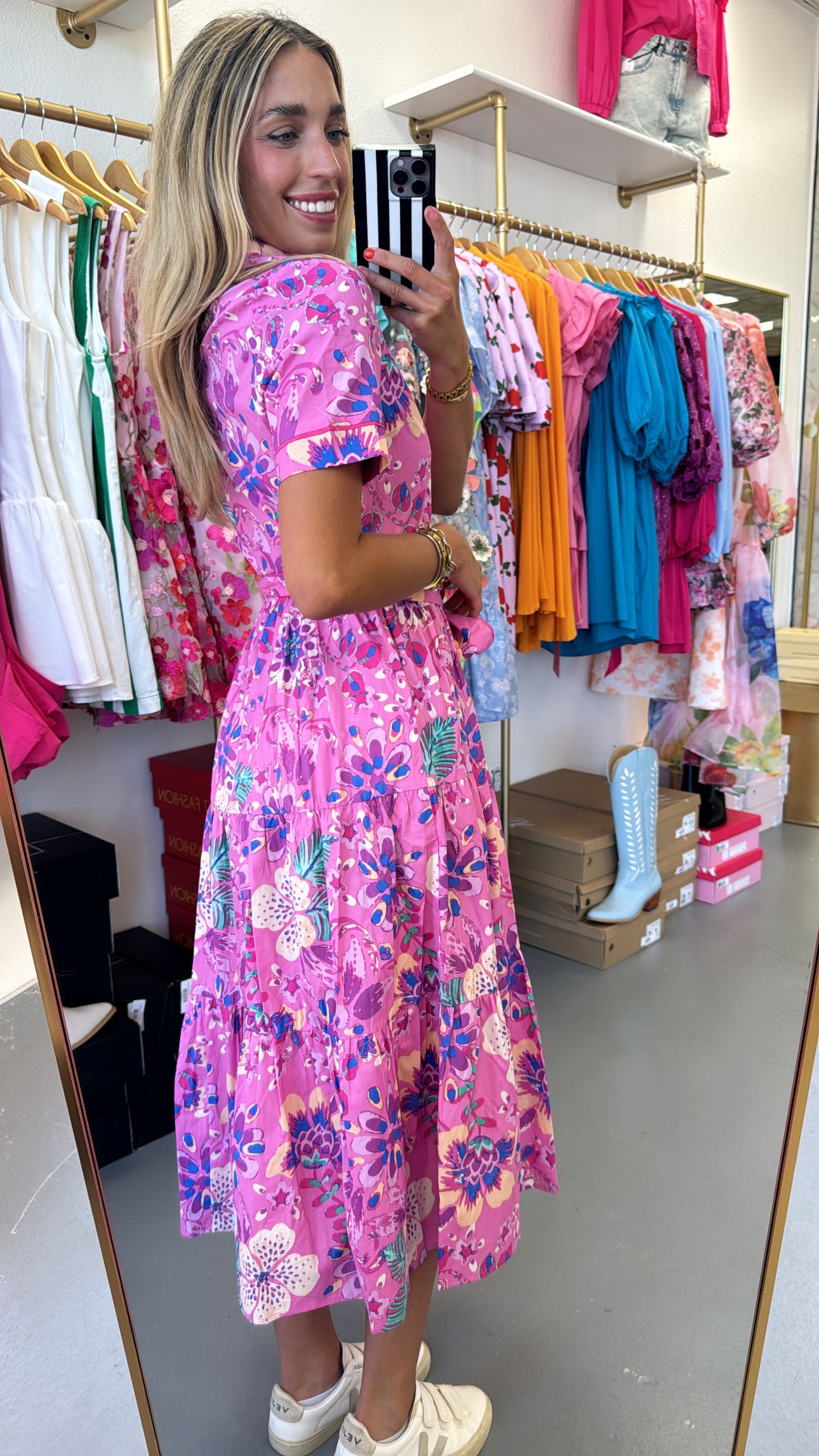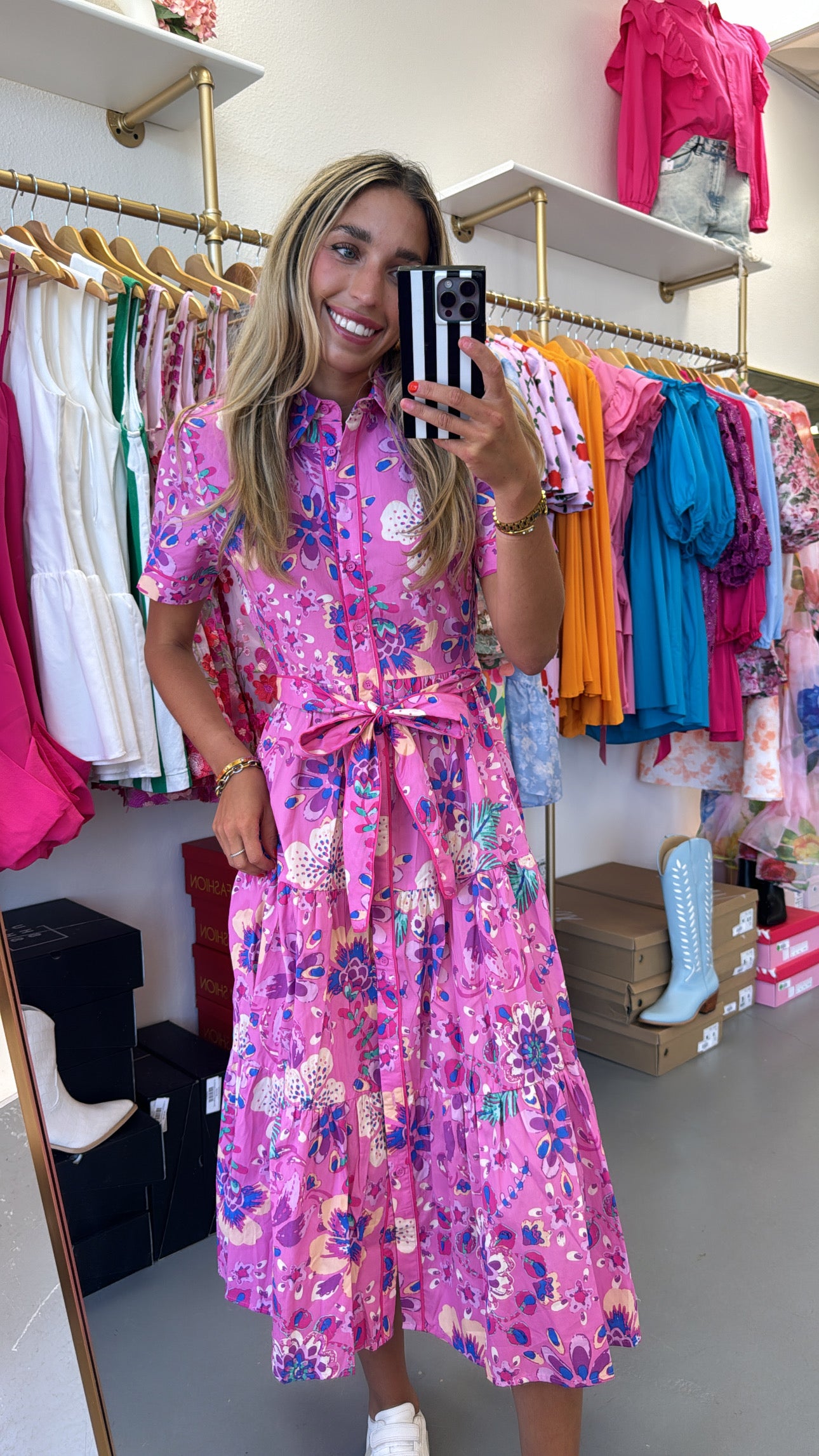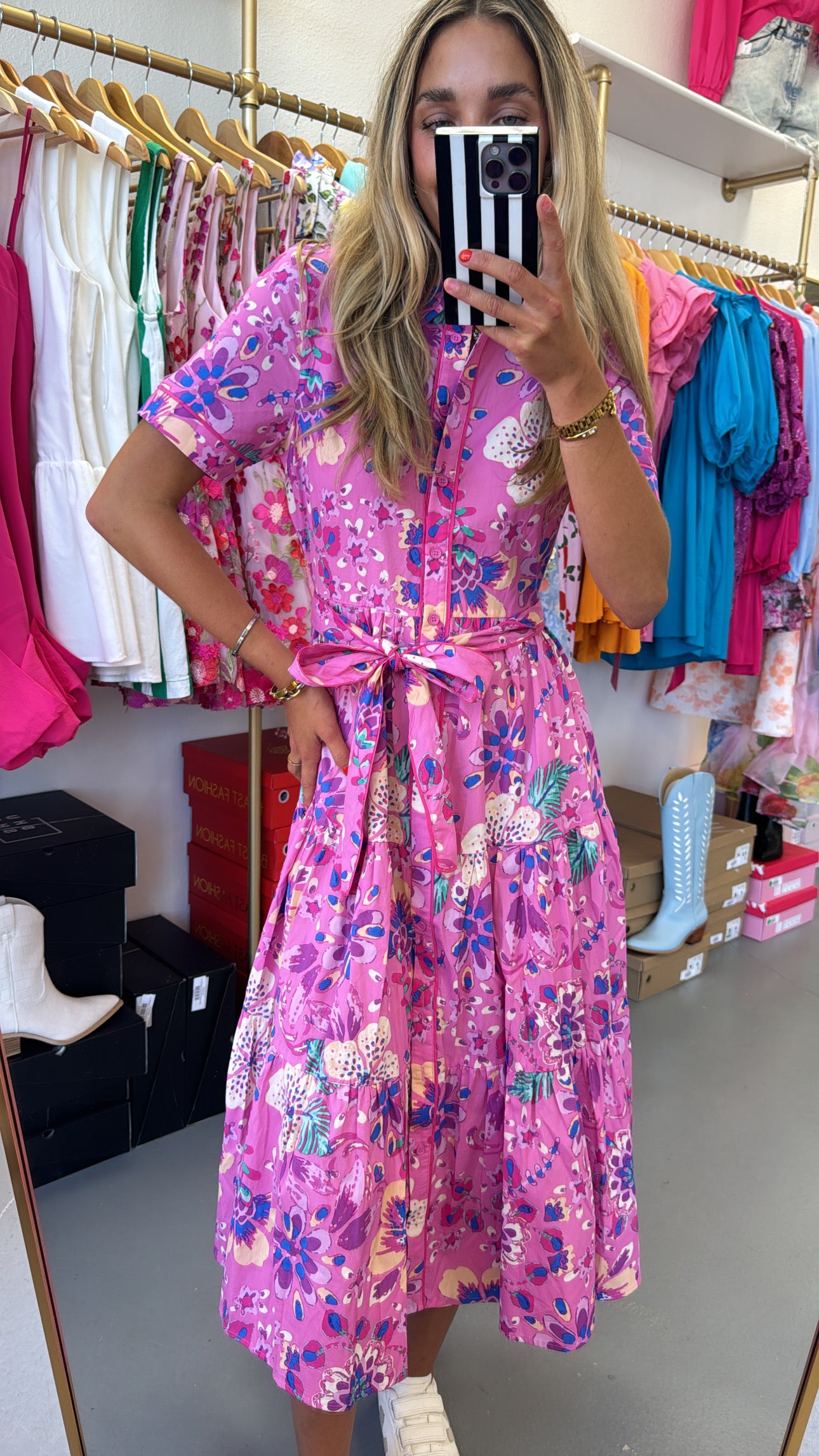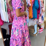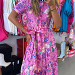 FLORAL WOVEN MIDI TIE DRESS