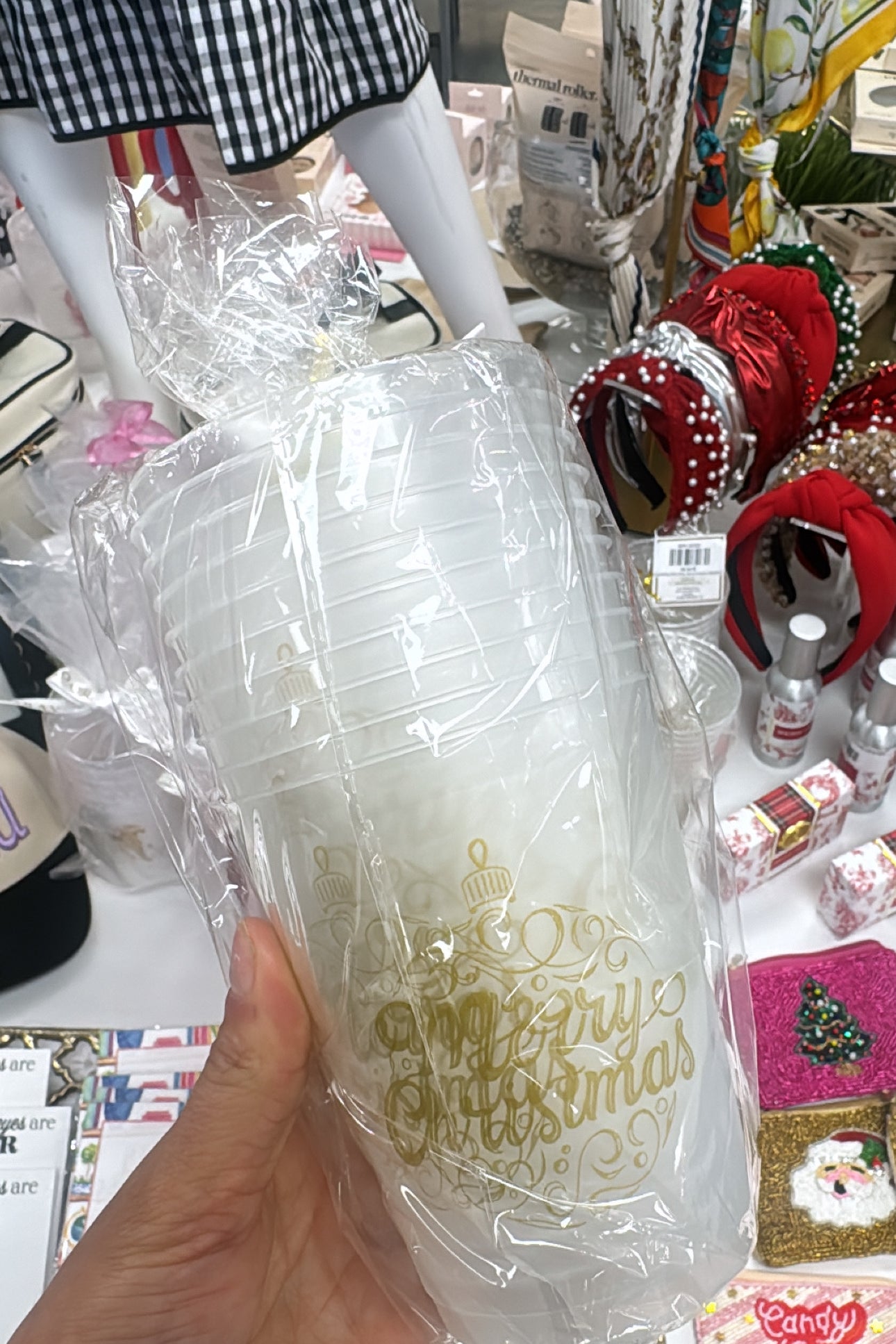 Merry Christmas Ornament Script Party Cups Frosted/Gold 16oz Set of 10