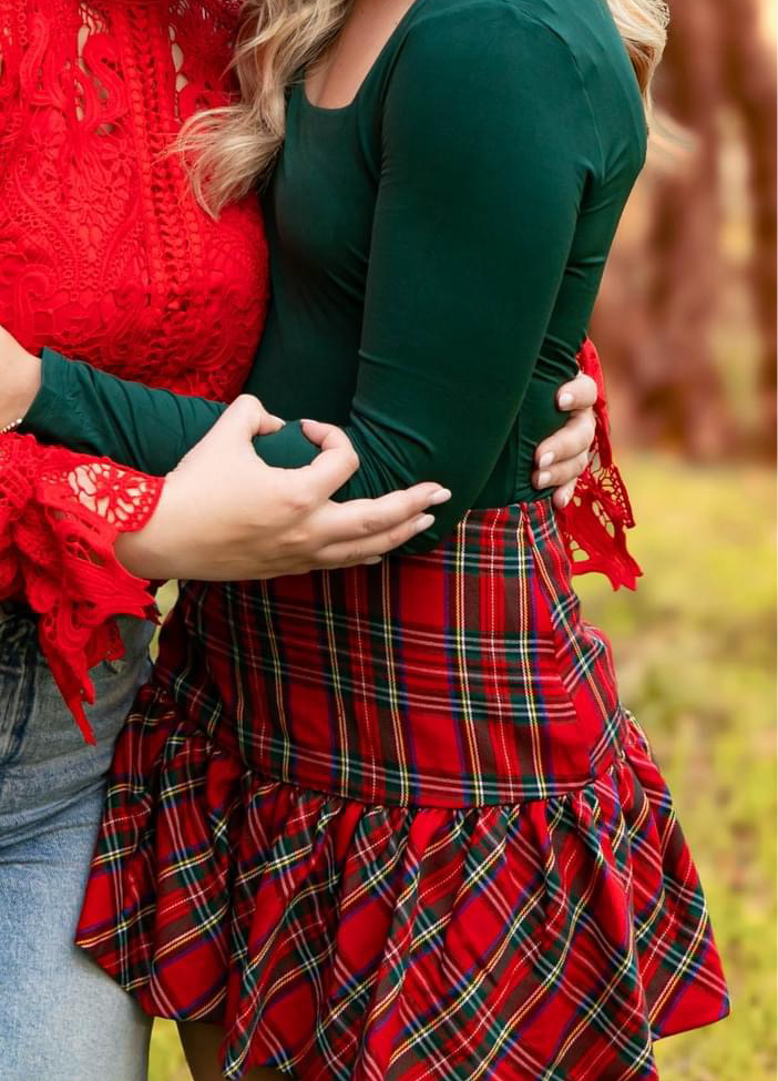 RED CHECKERED PLAID BALLOON SKIRT (size large left)