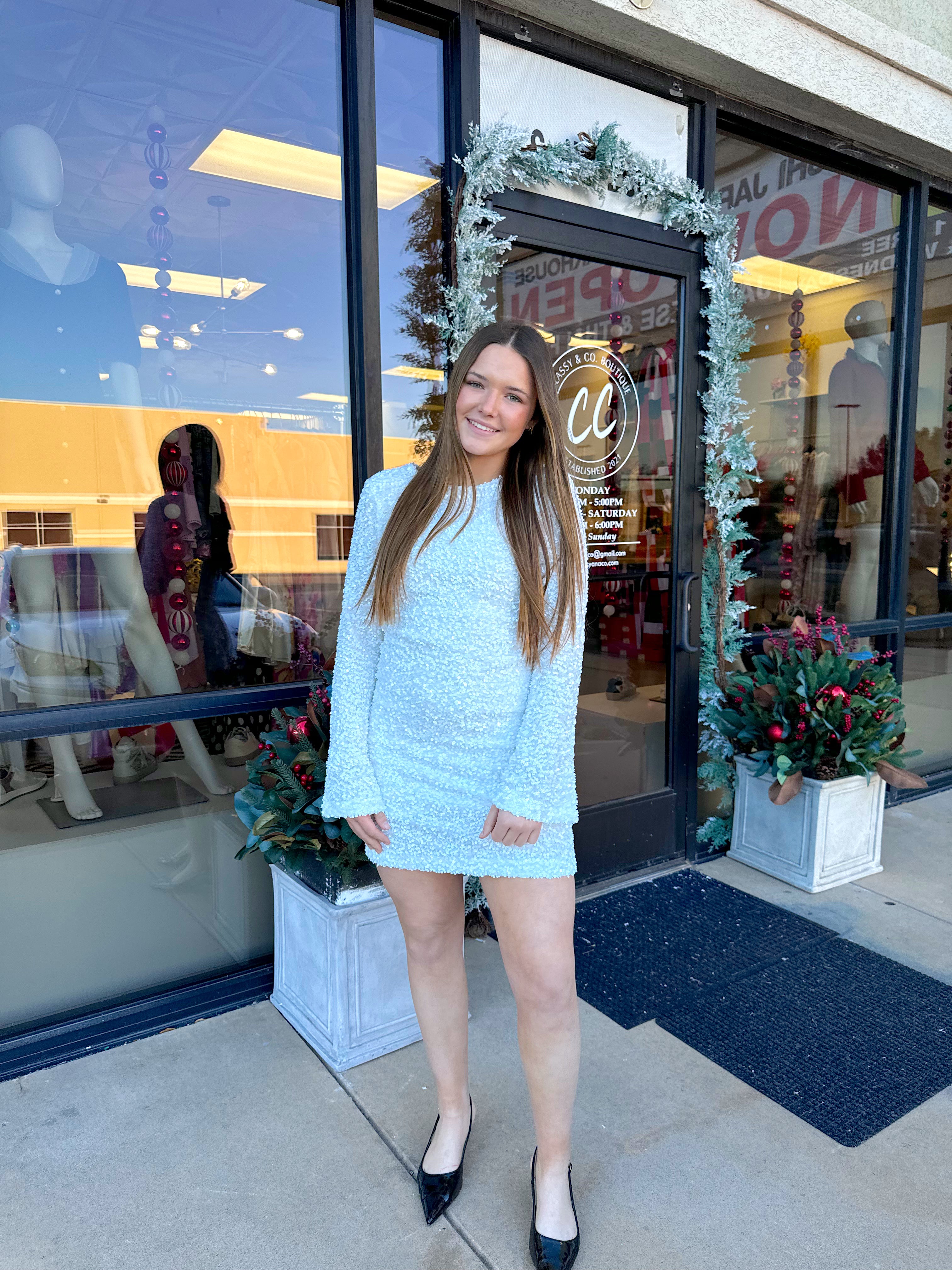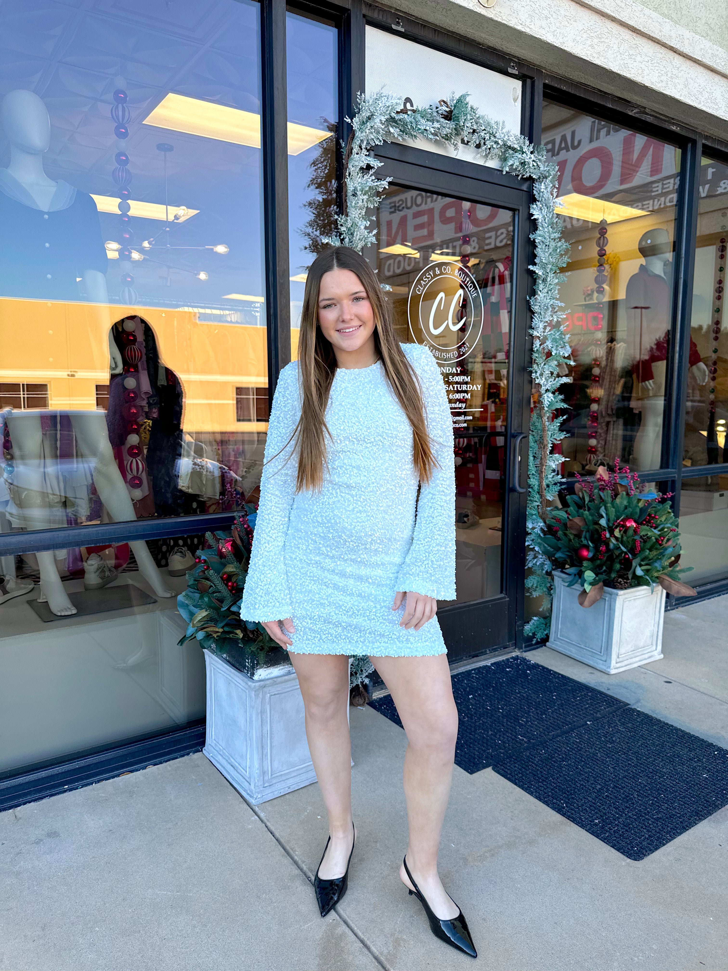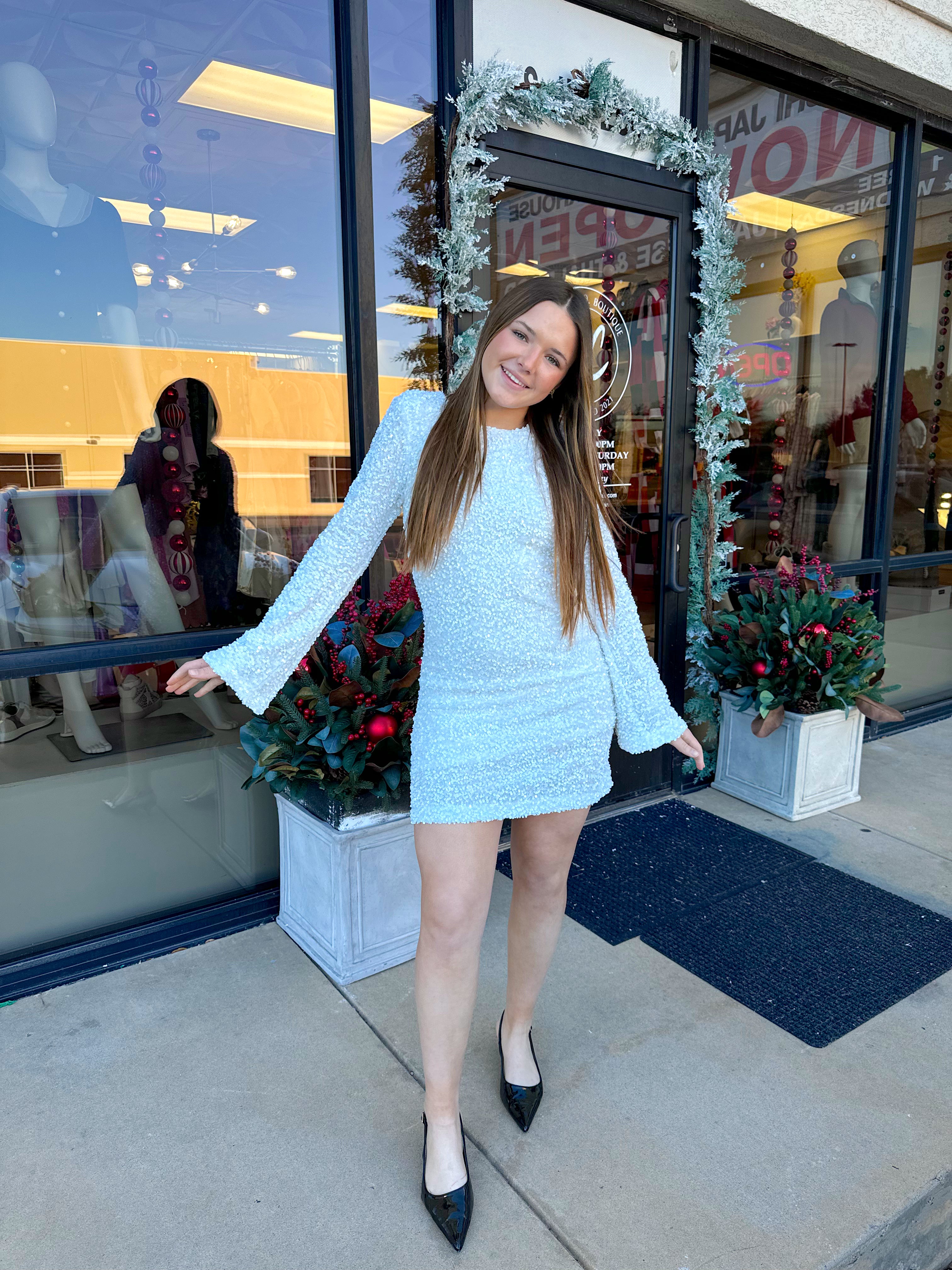 WHITE SEQUIN BOW MINI DRESS (size LARGE left)