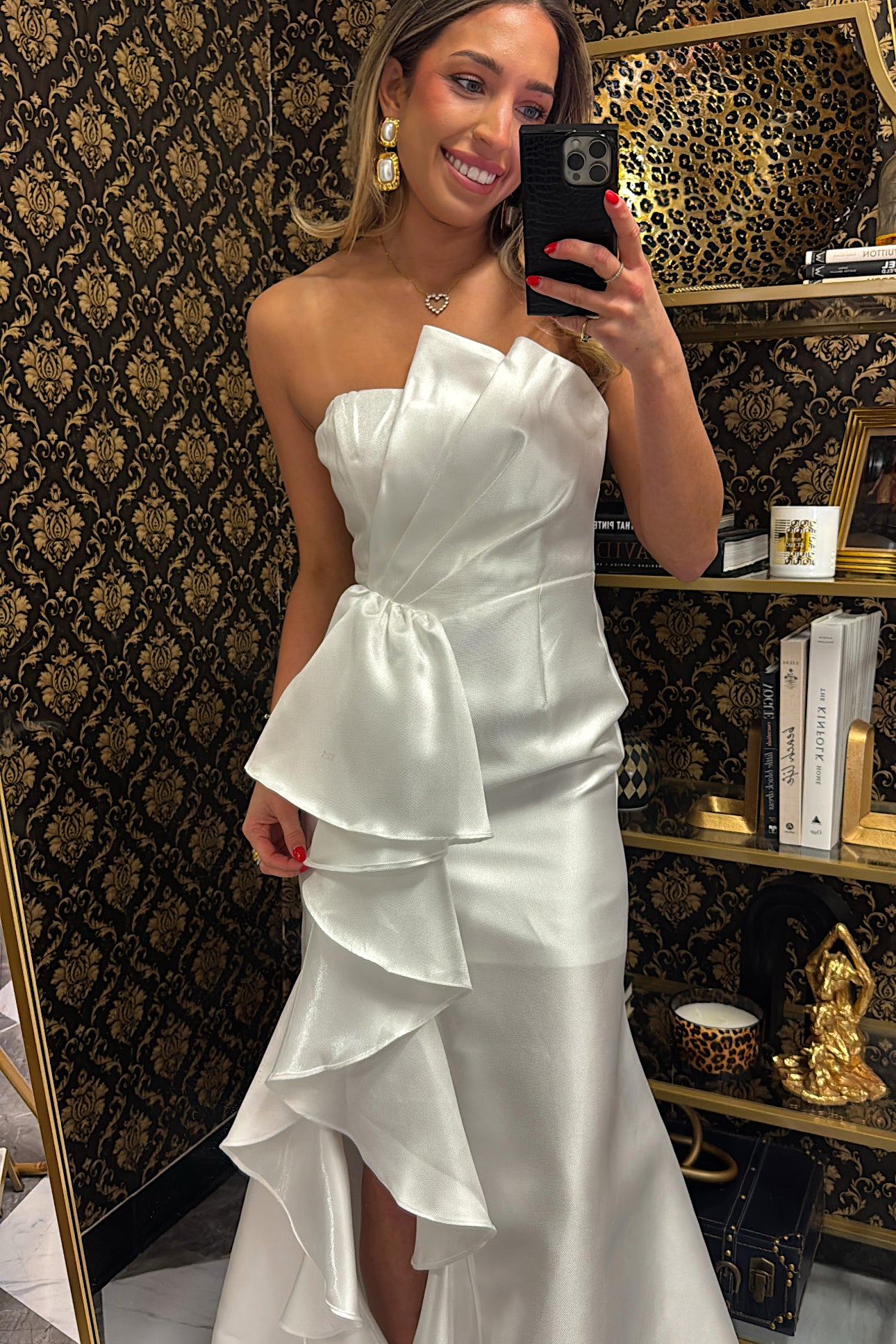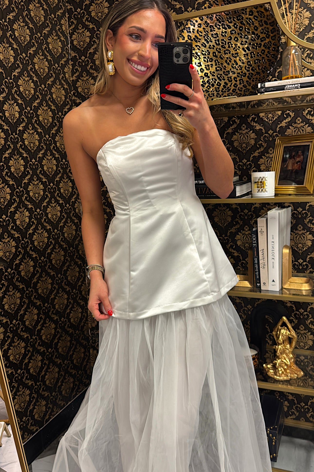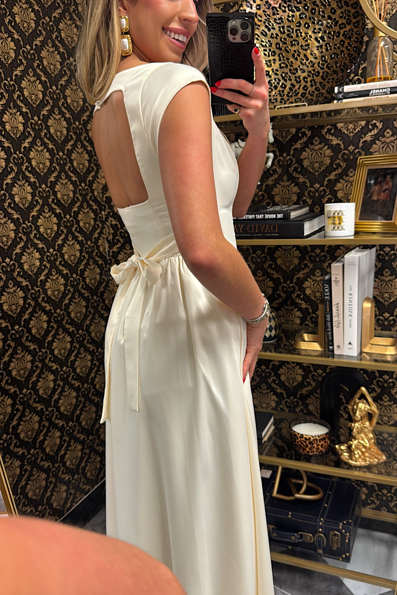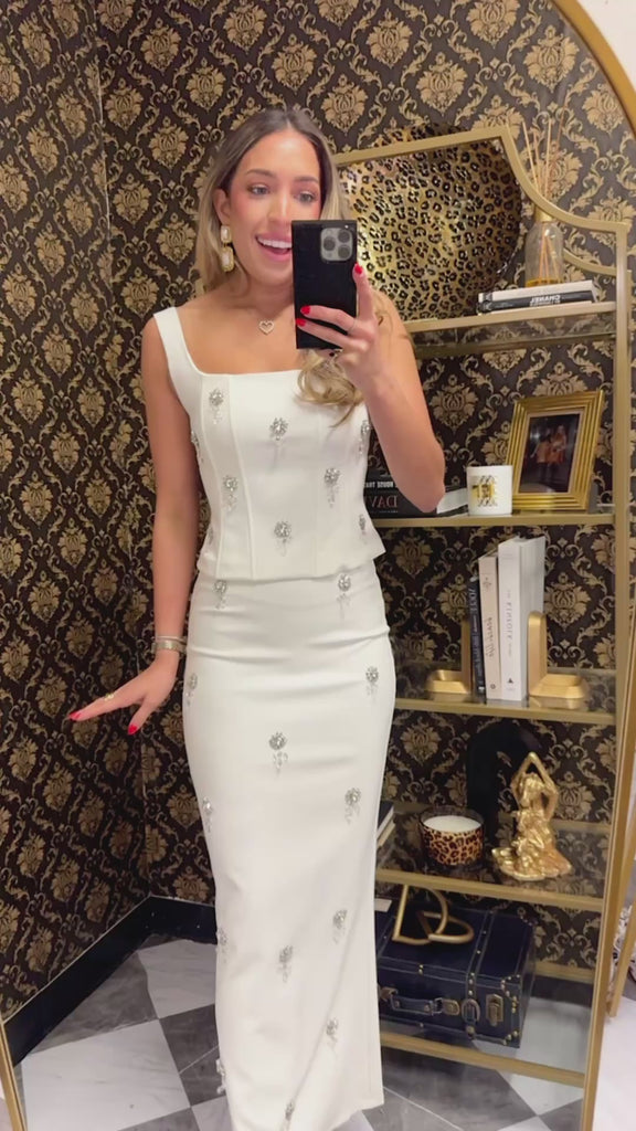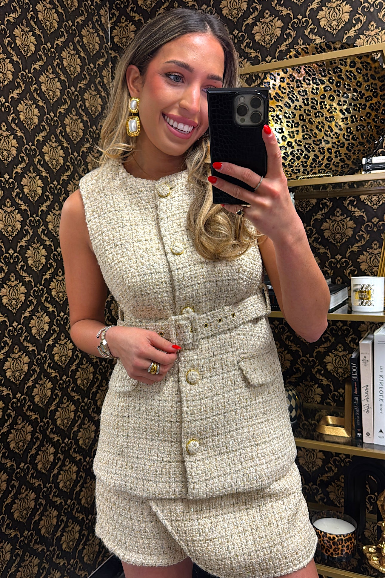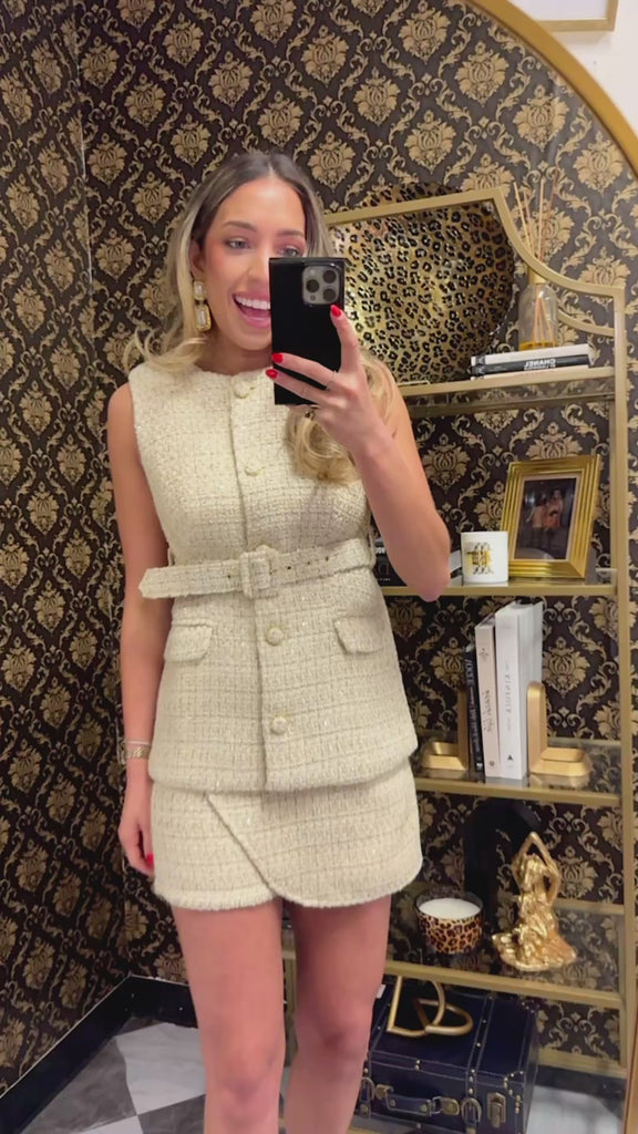 Cream Tweed Square Neck Bow Mini Skirt Set