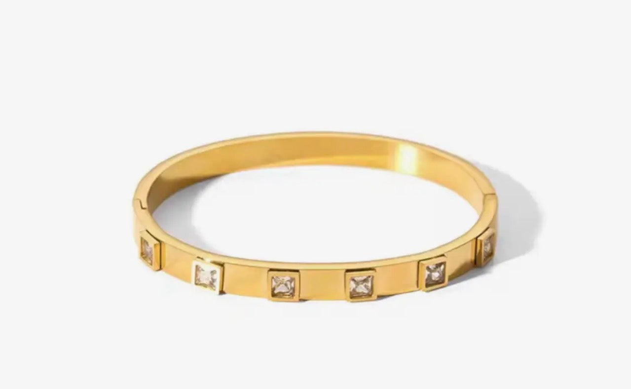 Diamond Square Bangle Bracelet Water Resistant