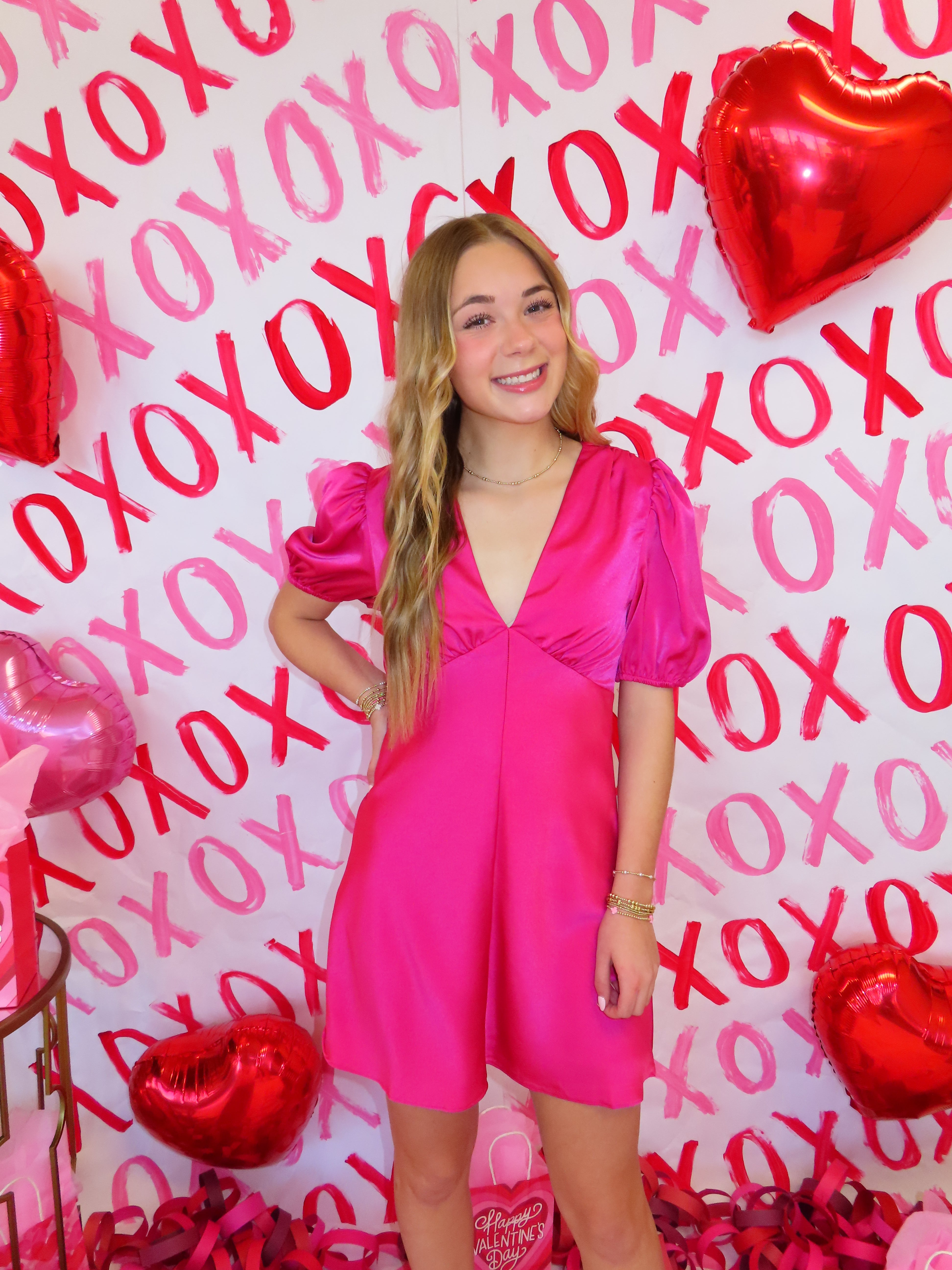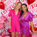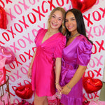 Fuchsia Puff Sleeve Mini Dress