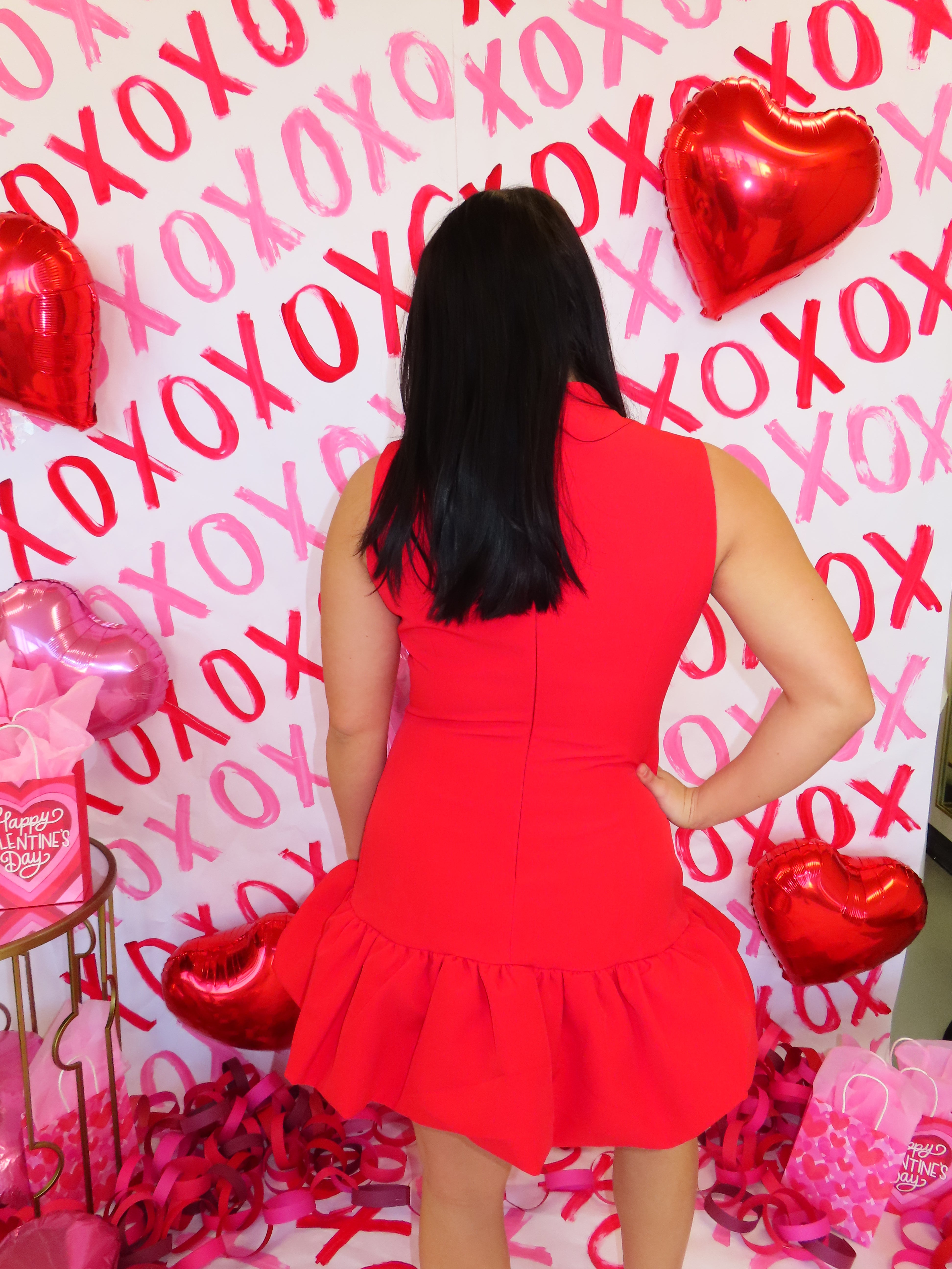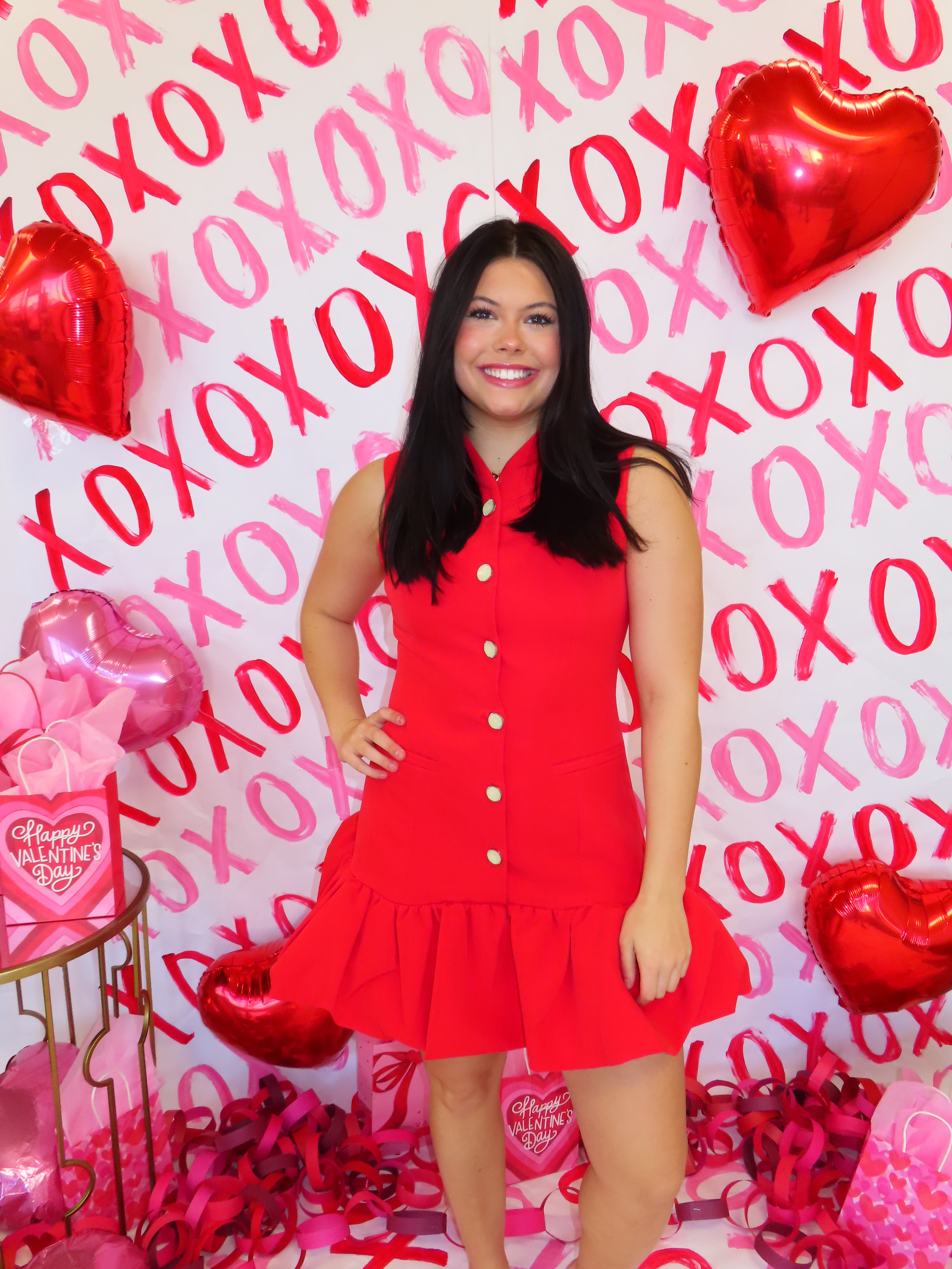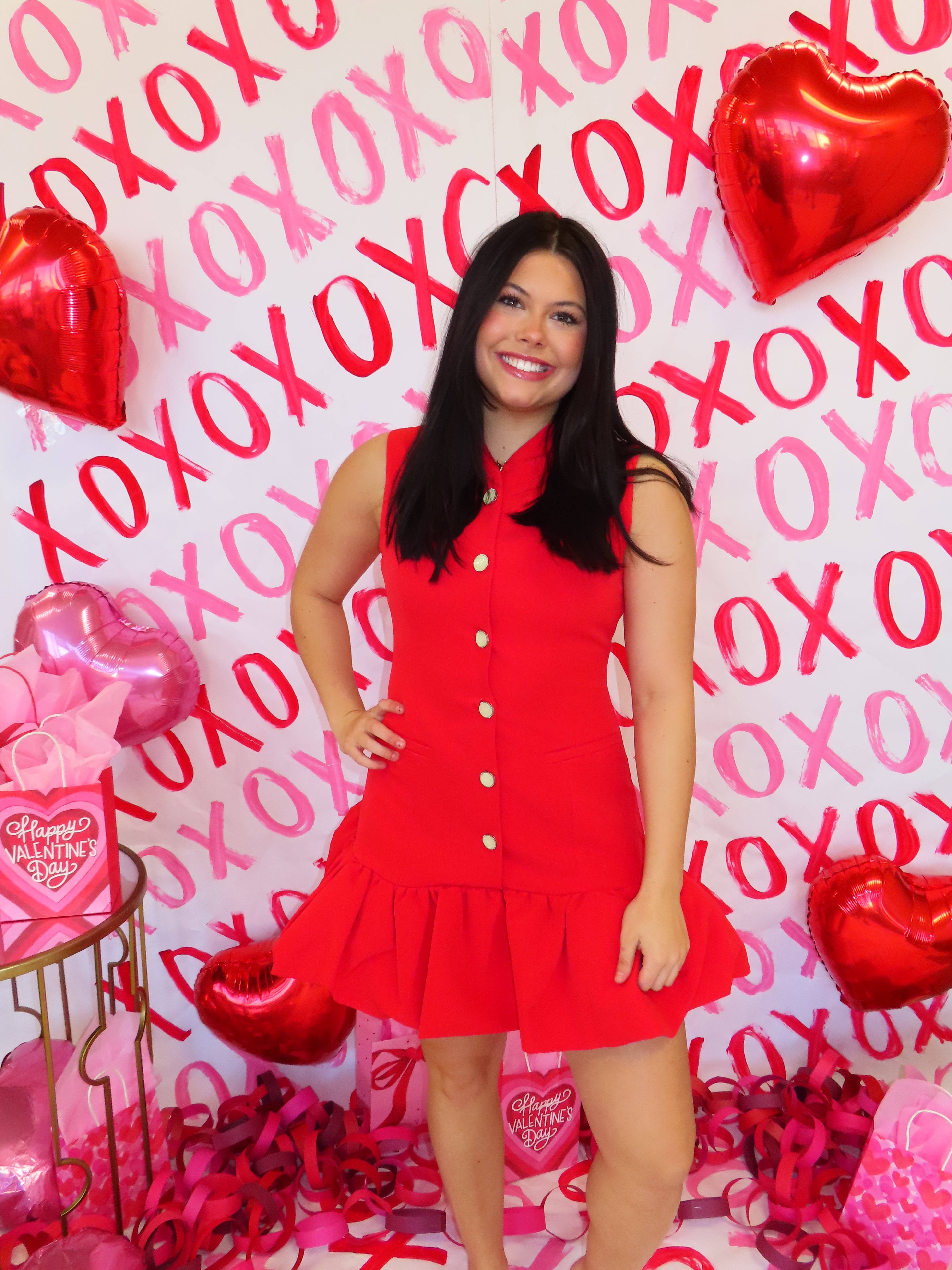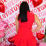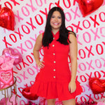 RED BUBBLE HEM BUTTONED MINI DRESS