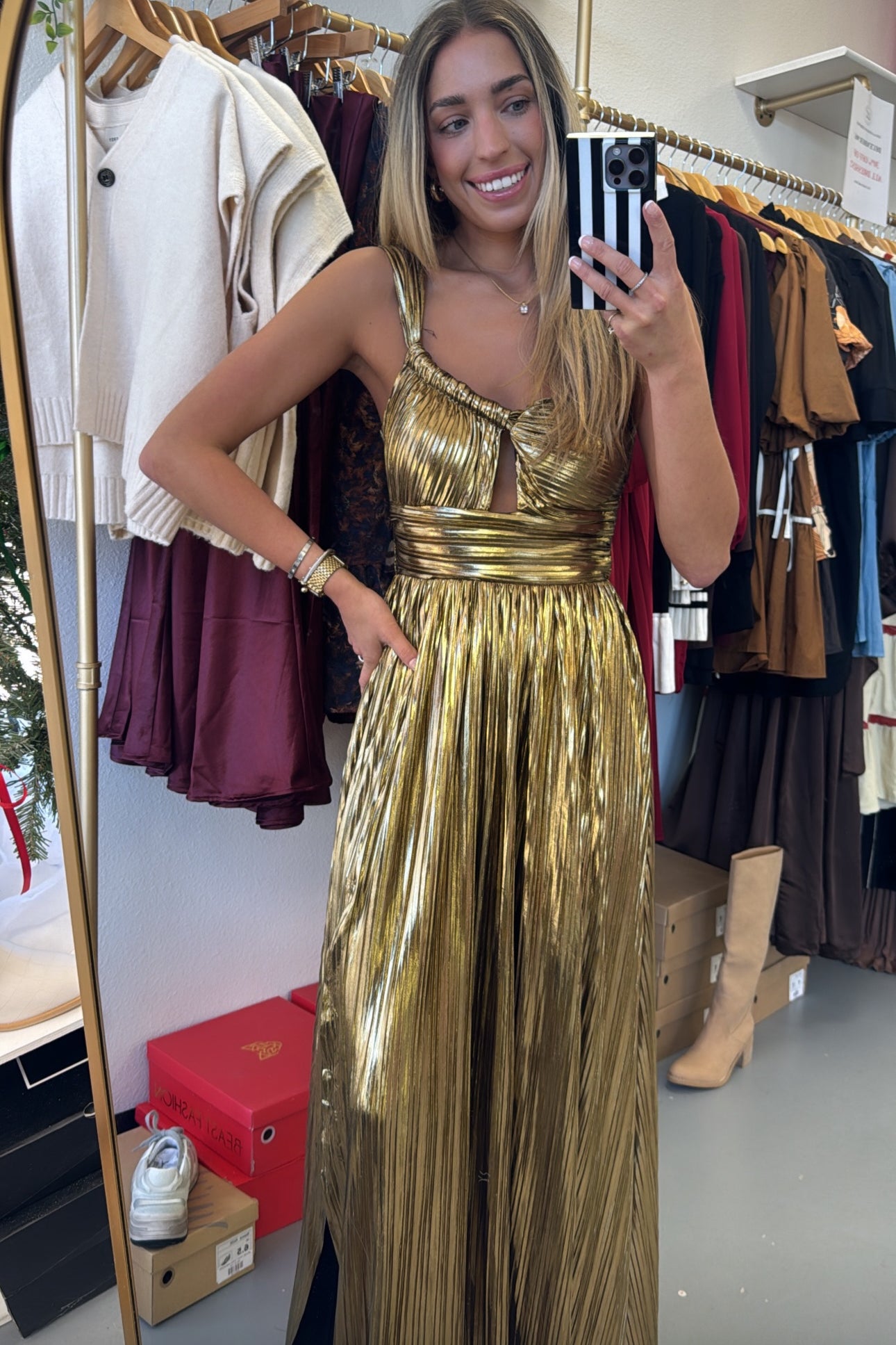 BUTTER YELLOW SCARF SATIN PLEATED MAXI DRESS