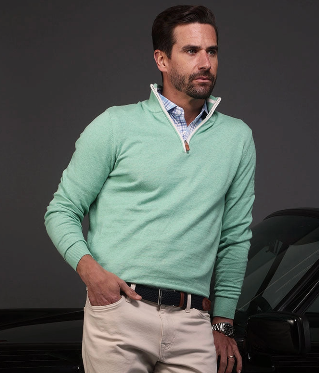 The Luxury Touch Cotton Quarter Zip Sweater is the ultimate layering piece to complete any gentleman's wardrobe. Crafted with the highest quality cotton, this quarter zip cotton sweater provides ultra soft breathability with durability – simple to wash and easy to maintain. The added detail of the quarter zip brings an elevated style that pairs perfectly with a Dress Collar Polo, providing the versatility of going from casual to classy effortlessly. This sweater is as comfortable as our polos – truly the perfect pair. * Highest quality cotton * Breathable & durable * All-season * Ultra soft * Low maintenance * Wrinkle and pilling resistant **Model is 5'10, 155lb, 15" neck size, 30 inch waist wearing a size small