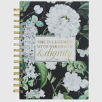 Celebrate the cherished bond of friendship with a faithful friend when you give her the Clothed with Strength & Dignity White Floral Large Wirebound Journal. This journal will let her know that you treasure the friendship and acknowledge the impact of her wisdom in your life.
