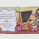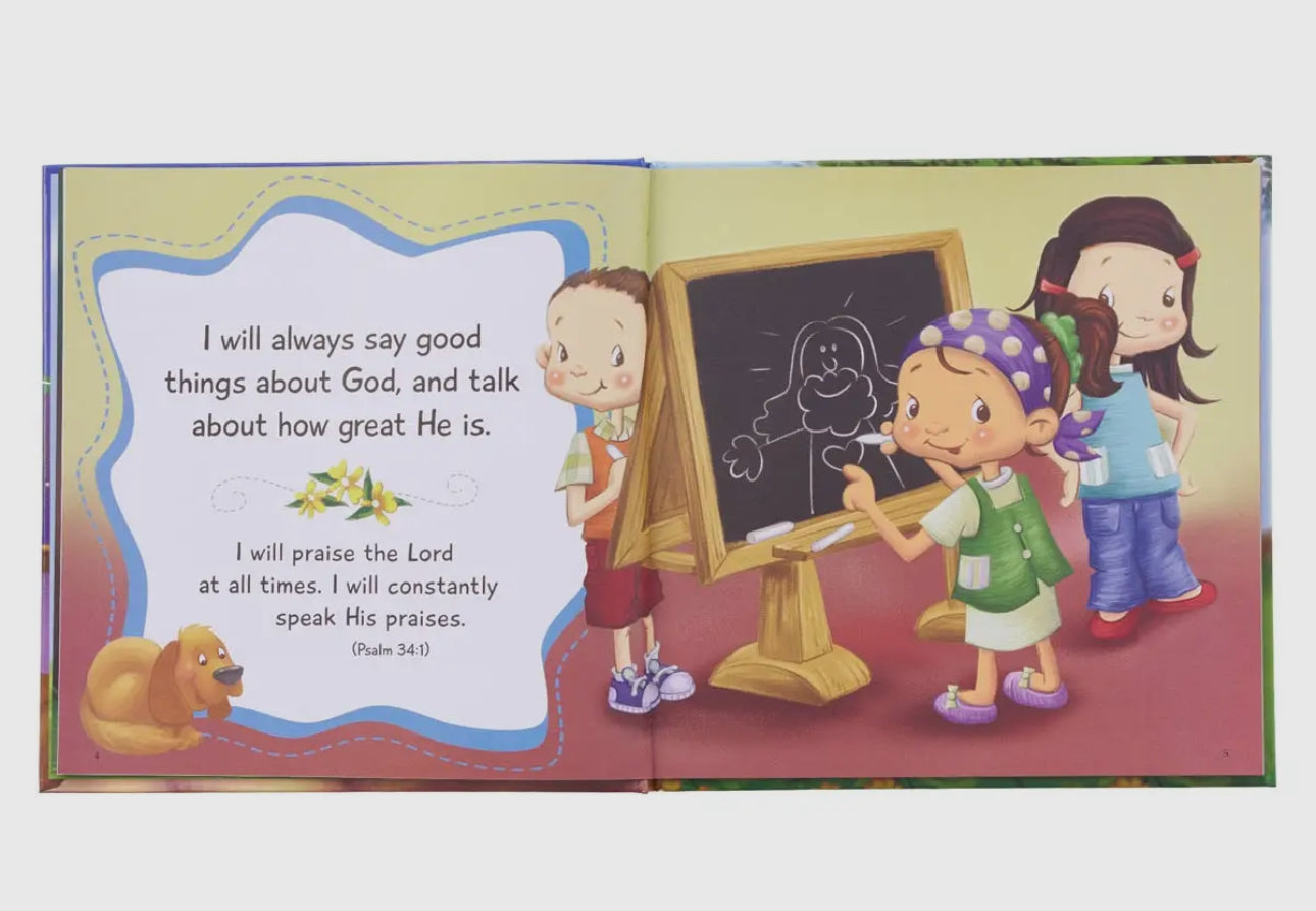 Featuring adorable artwork, God Hears When You Pray, will help parents introduce their little ones to the blessings of a prayer-filled life. The cute illustrations will keep children aged 3-6 engaged as they learn all about talking to God. Praying children cover design, Yellow title,