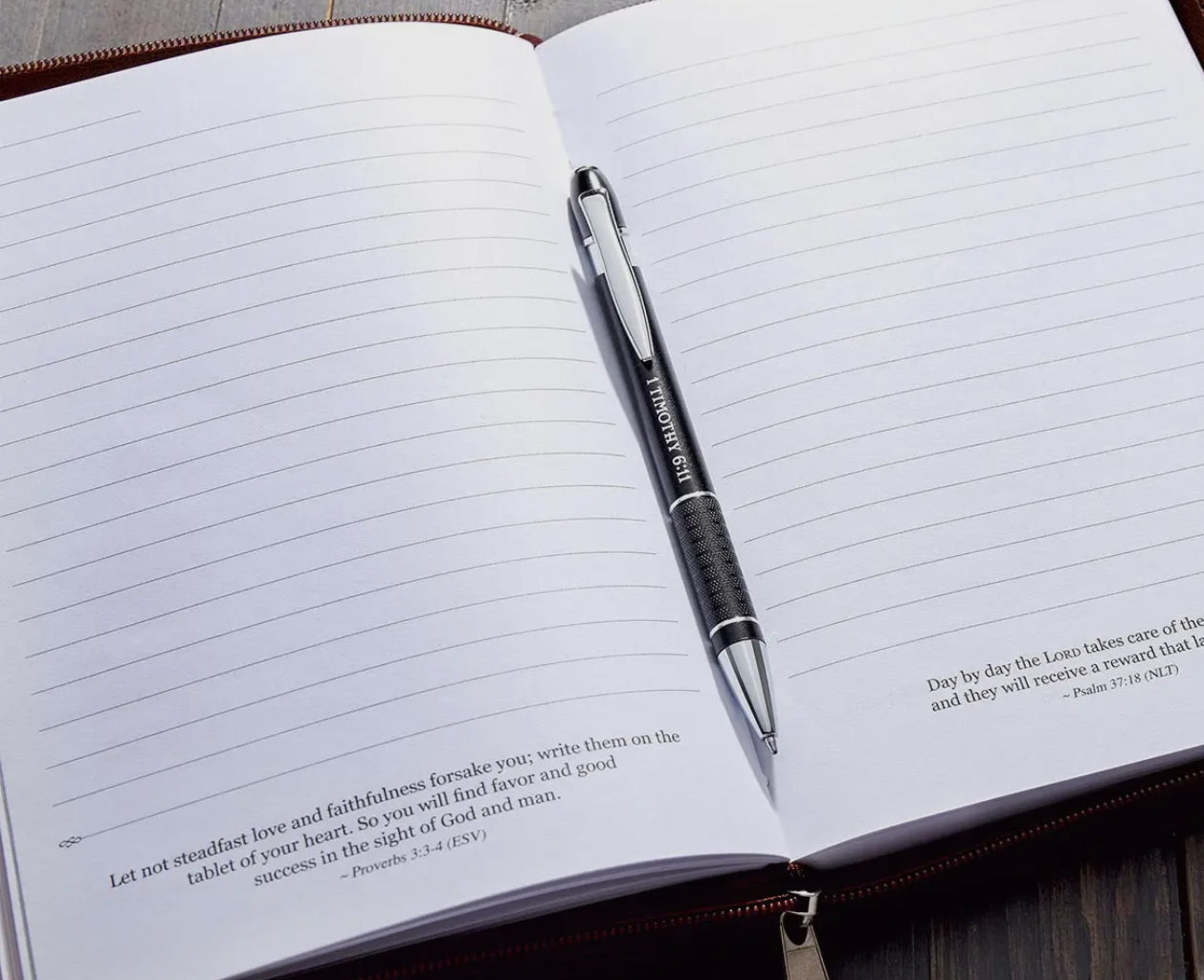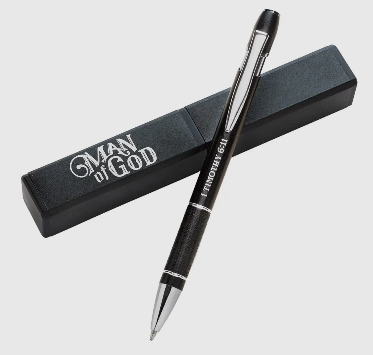 The Gift Pen: Man Of God – 1 Timothy 6:11 makes a great Christian gift for any man of God who is growing on his faith journey. Whether he’s heading to college, moving to a new city for a job or starting graduate school, The Man Of God Gift Pen is an ideal gift when he’s jotting down notes in class or Bible study, journaling or studying for exams. The Scripture reference of 1 Timothy 6:11 on the Christian gift pen will remind him to stay strong as a man of God, and it may even prompt questions from new people in his life who notice the pen, which invites a wonderful opportunity for him to share the Good News. Christian gift pen with Scripture reference 1 Timothy 6:11, Screen-printed title on barrel, Package in a hard plastic gift case