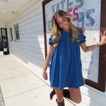 DENIM PUFF SLEEVE COLLARED DRESS