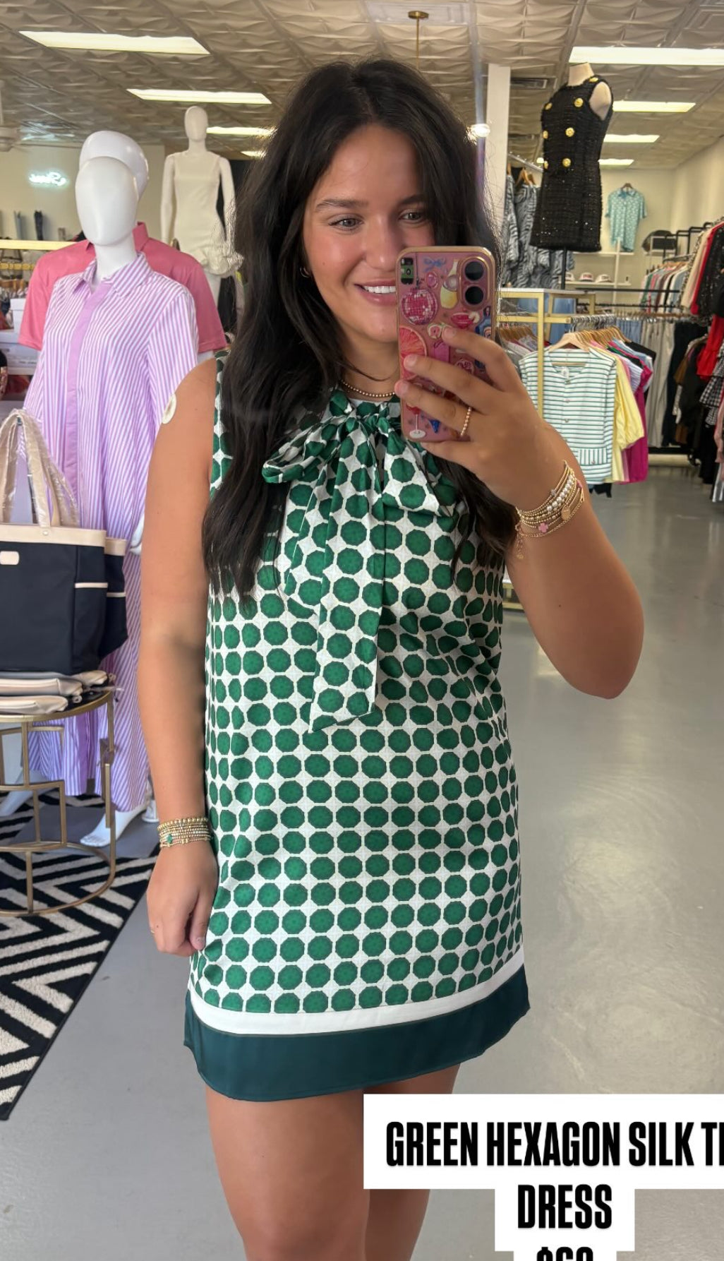 GREEN HEXAGON SILK TIE DRESS