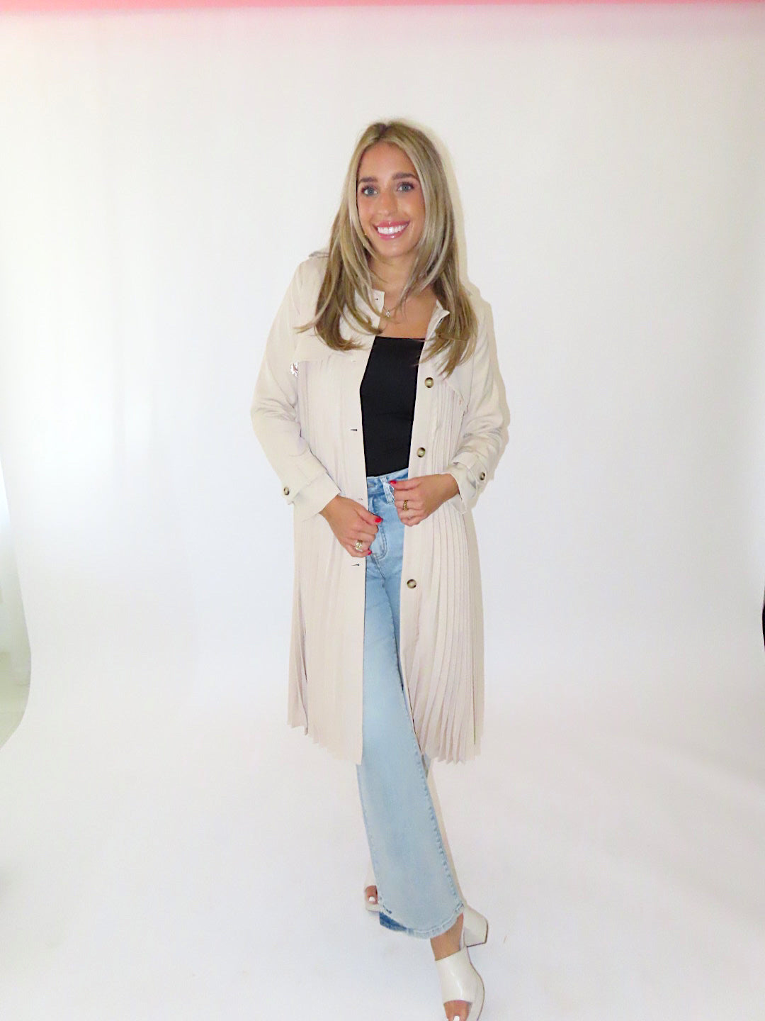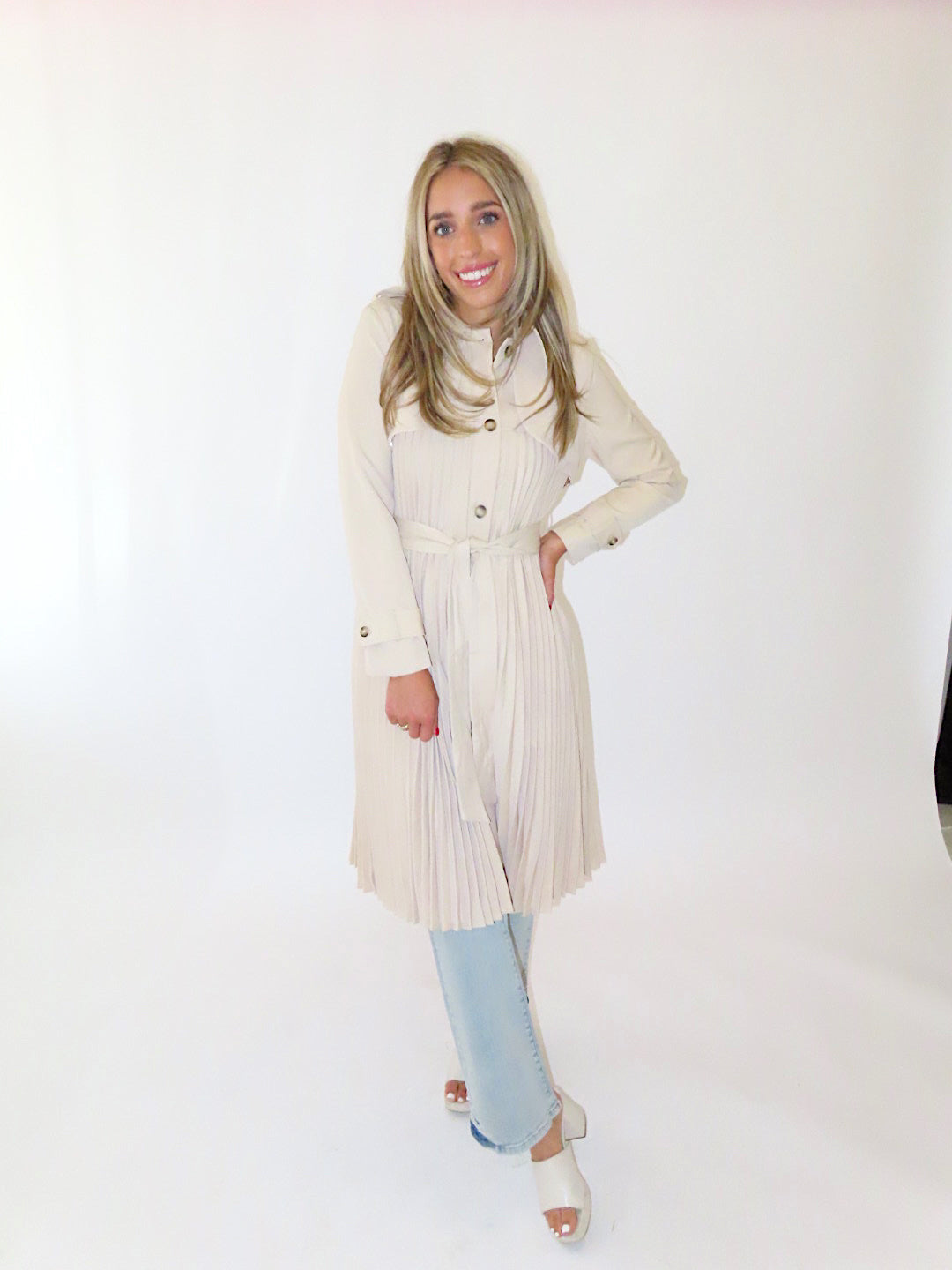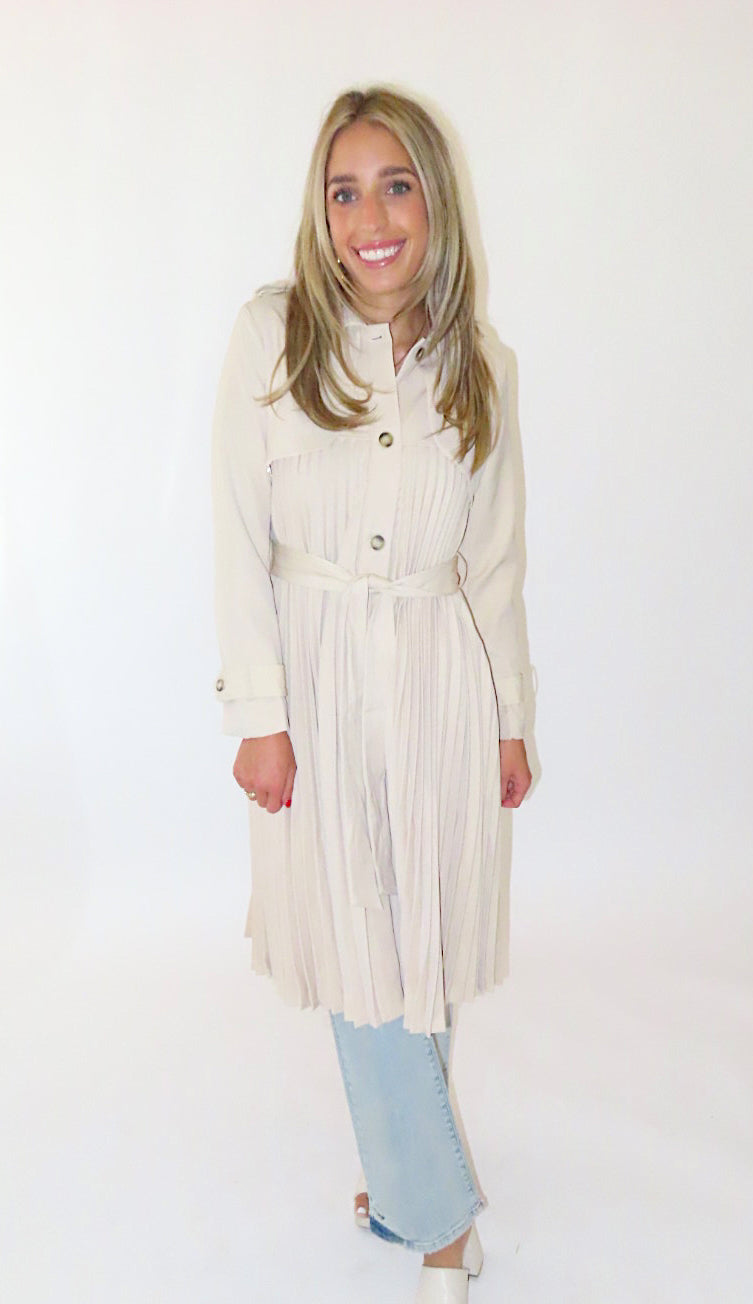 BEIGE PLEATED TRENCH COAT