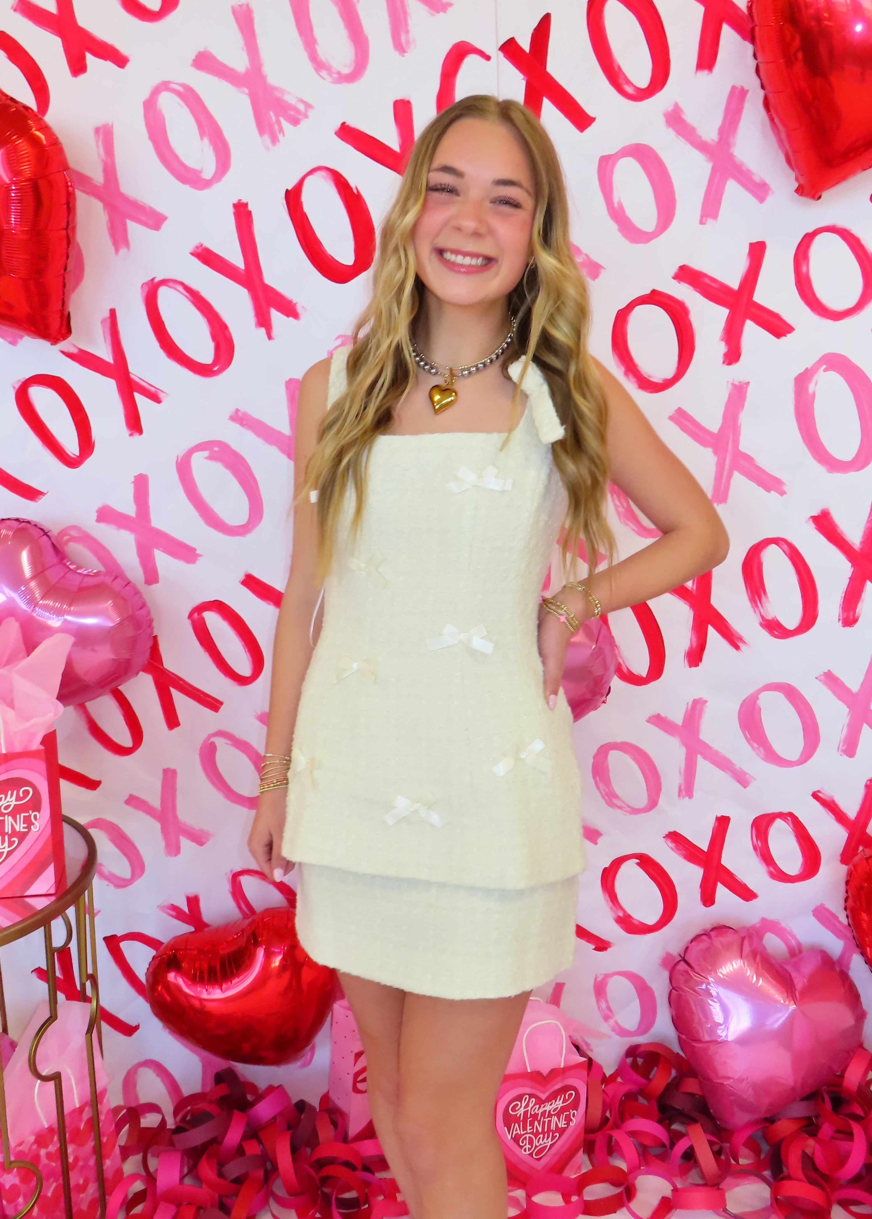 CREAM BOW DETAIL TWEED MINI SET