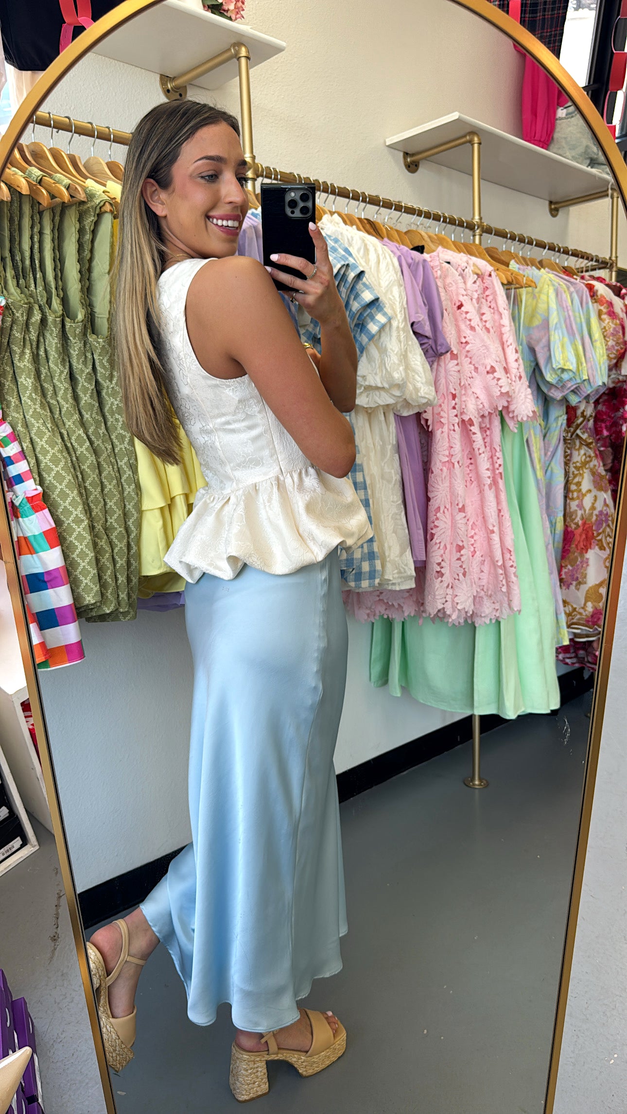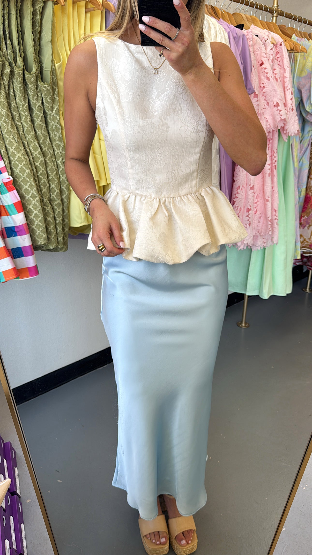 Baby Blue Satin Midi Skirt