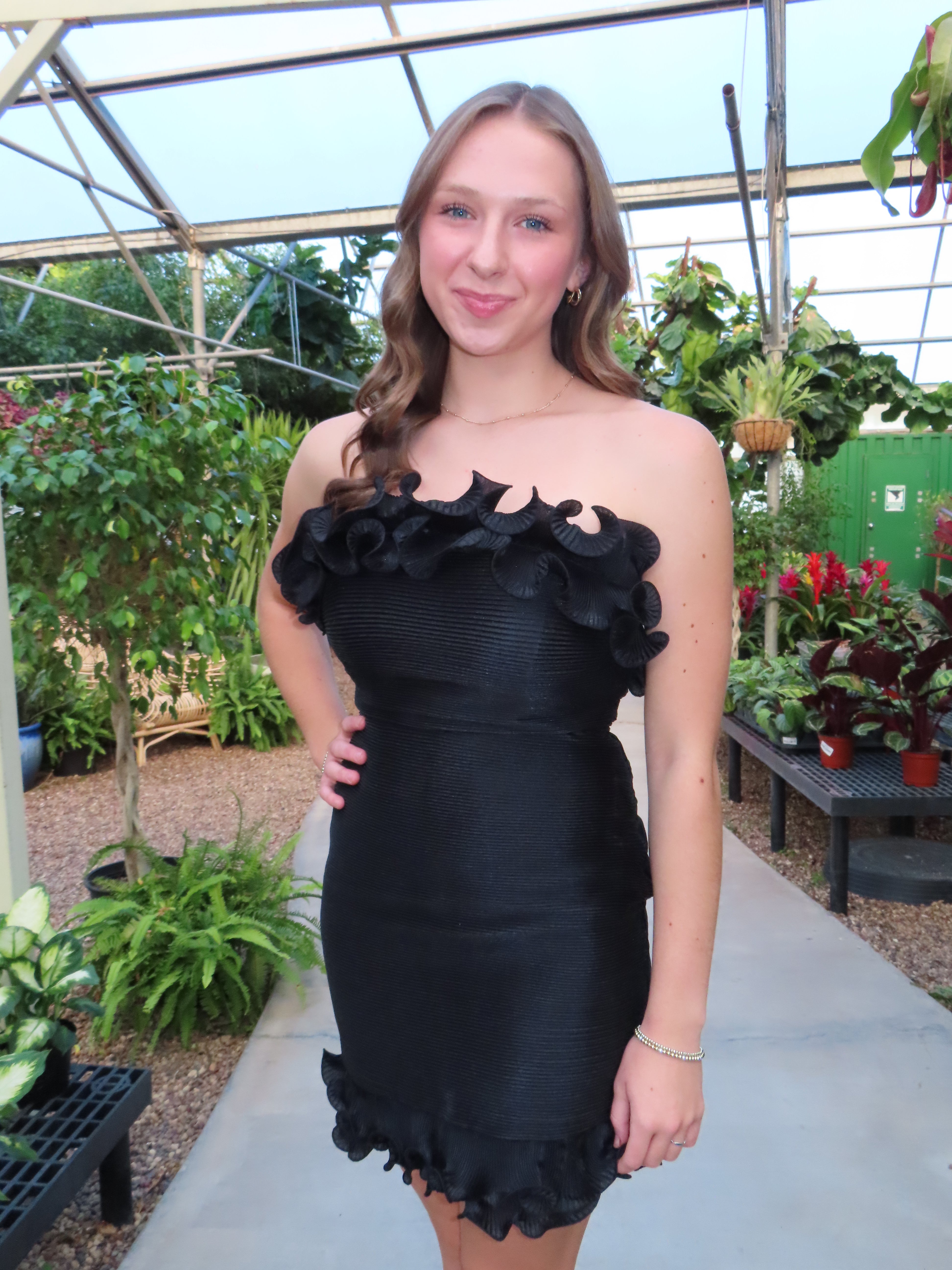 BLACK RUFFLE MINI STRAPLESS DRESS