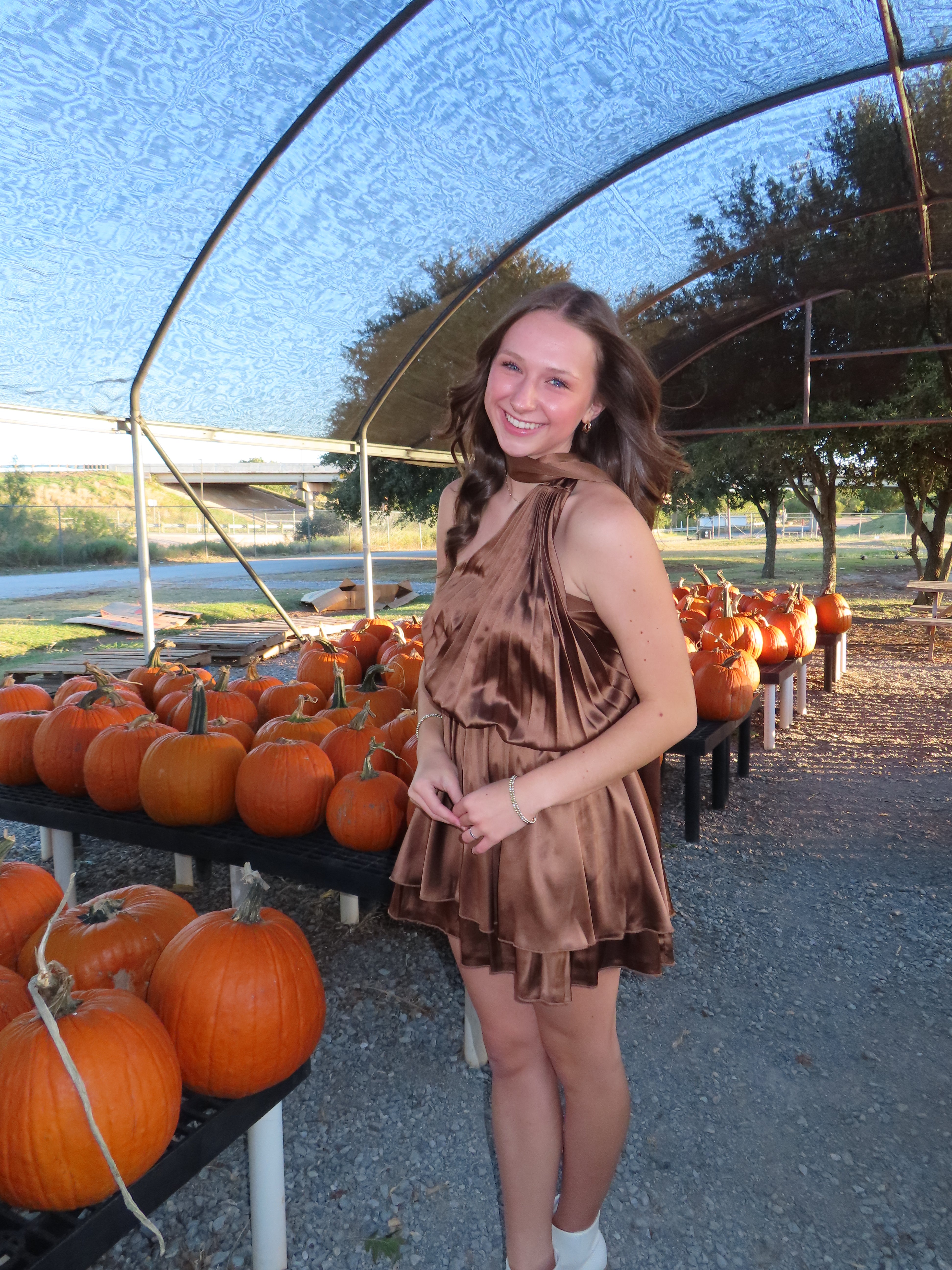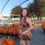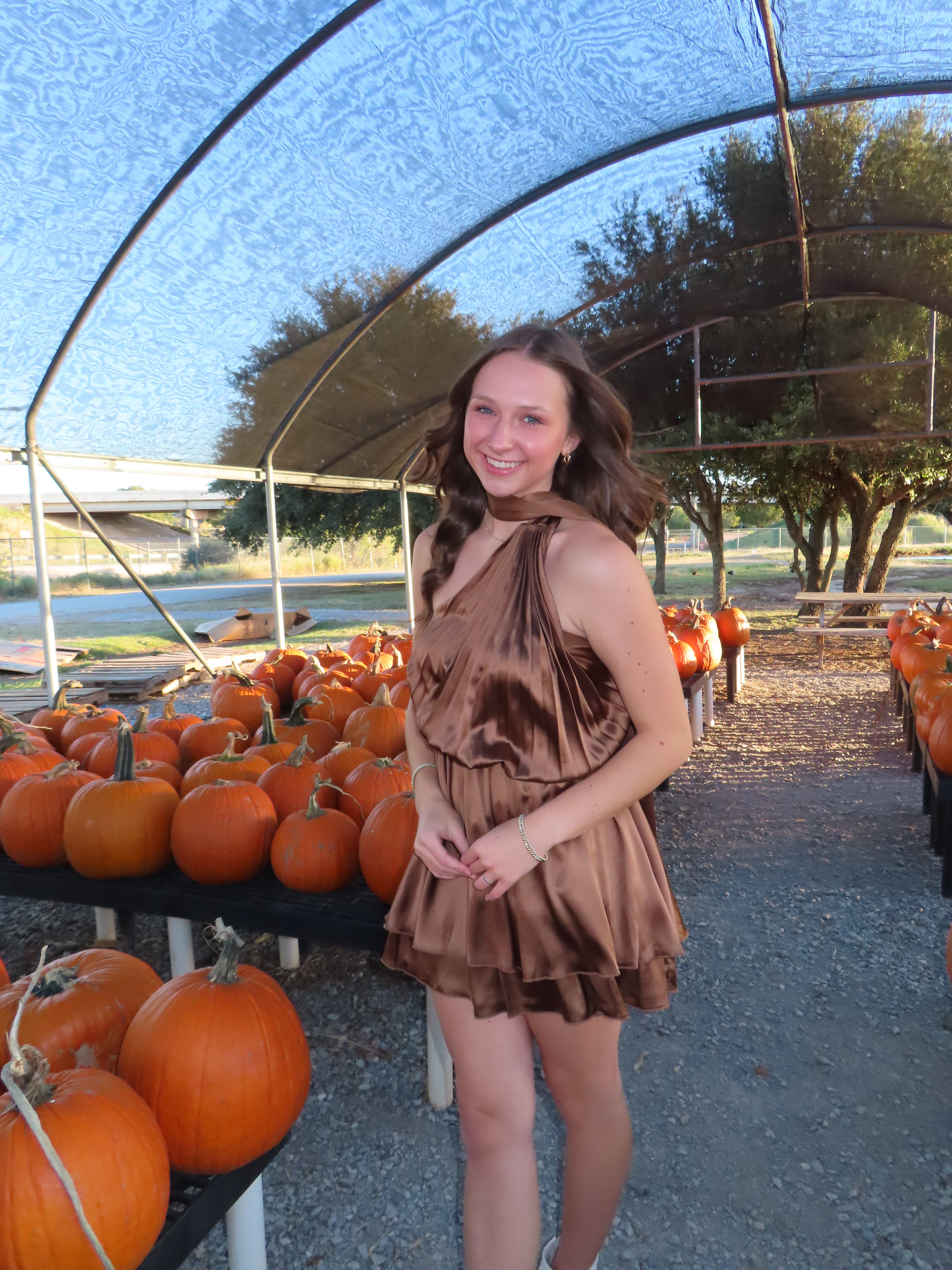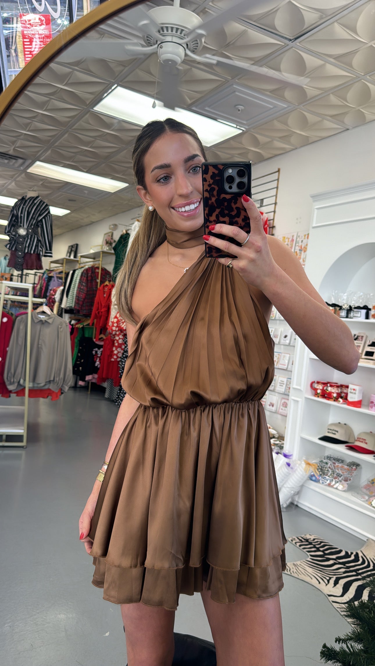 Champagne Brown Ruffle Halter Neck Mini Dress