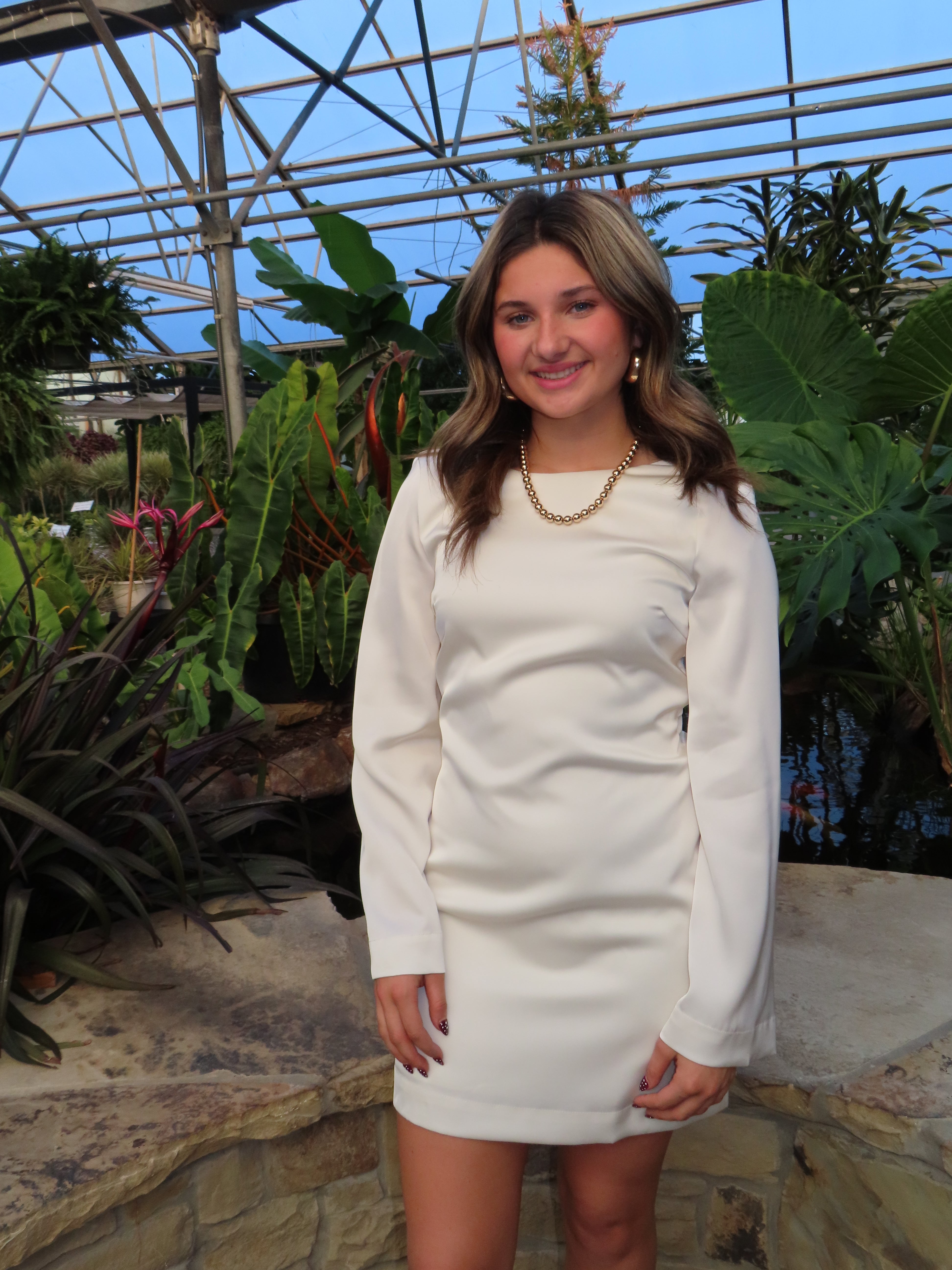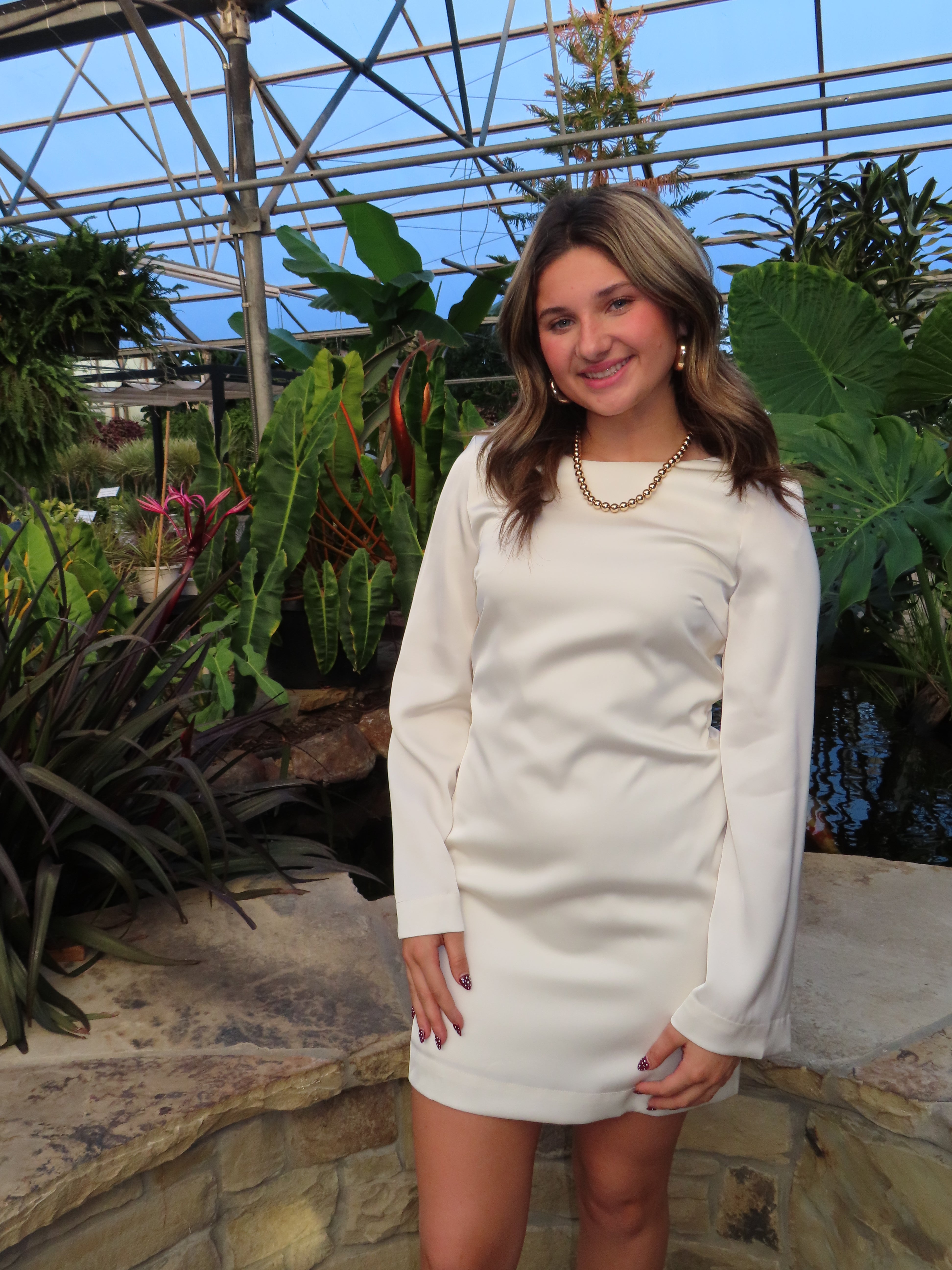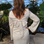 Cream Luxe Satin Longsleeve Bow Mini Dress