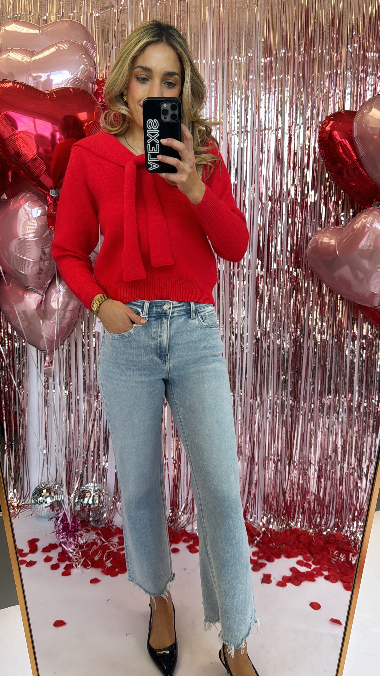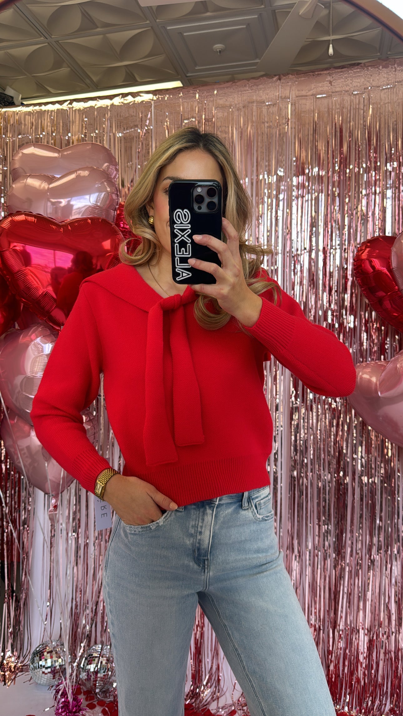 RED NECK TIE SWEATER
