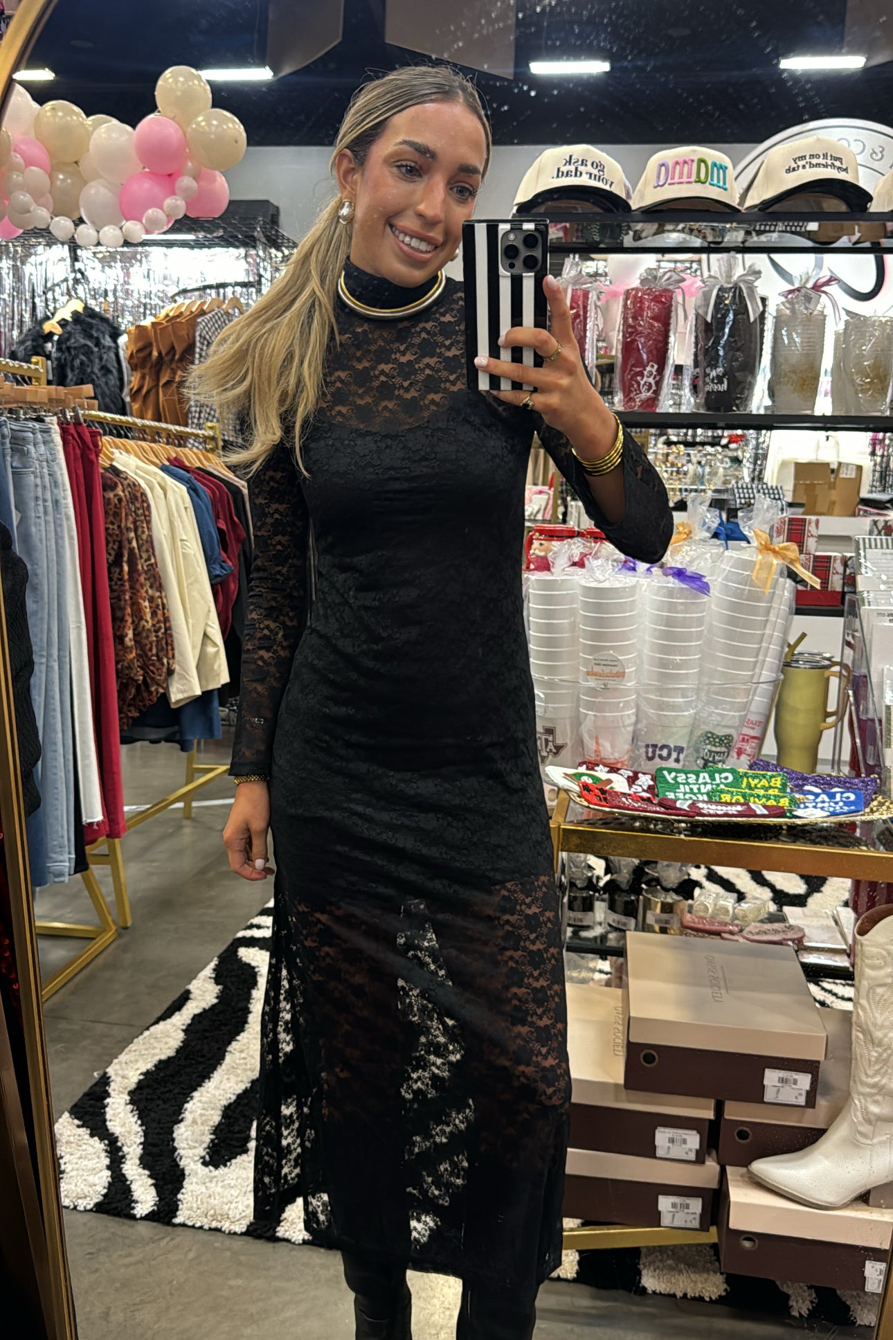 Black Stripe Rib-Knit Bell-Sleeve Maxi Sweater Dress