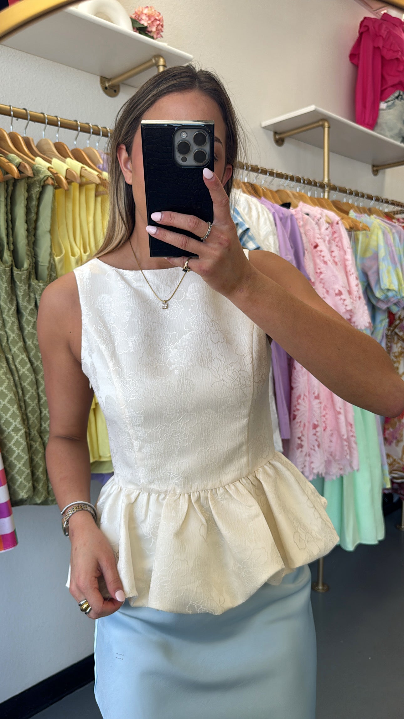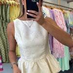 Cream Jacquard Sleeveless Peplum Top