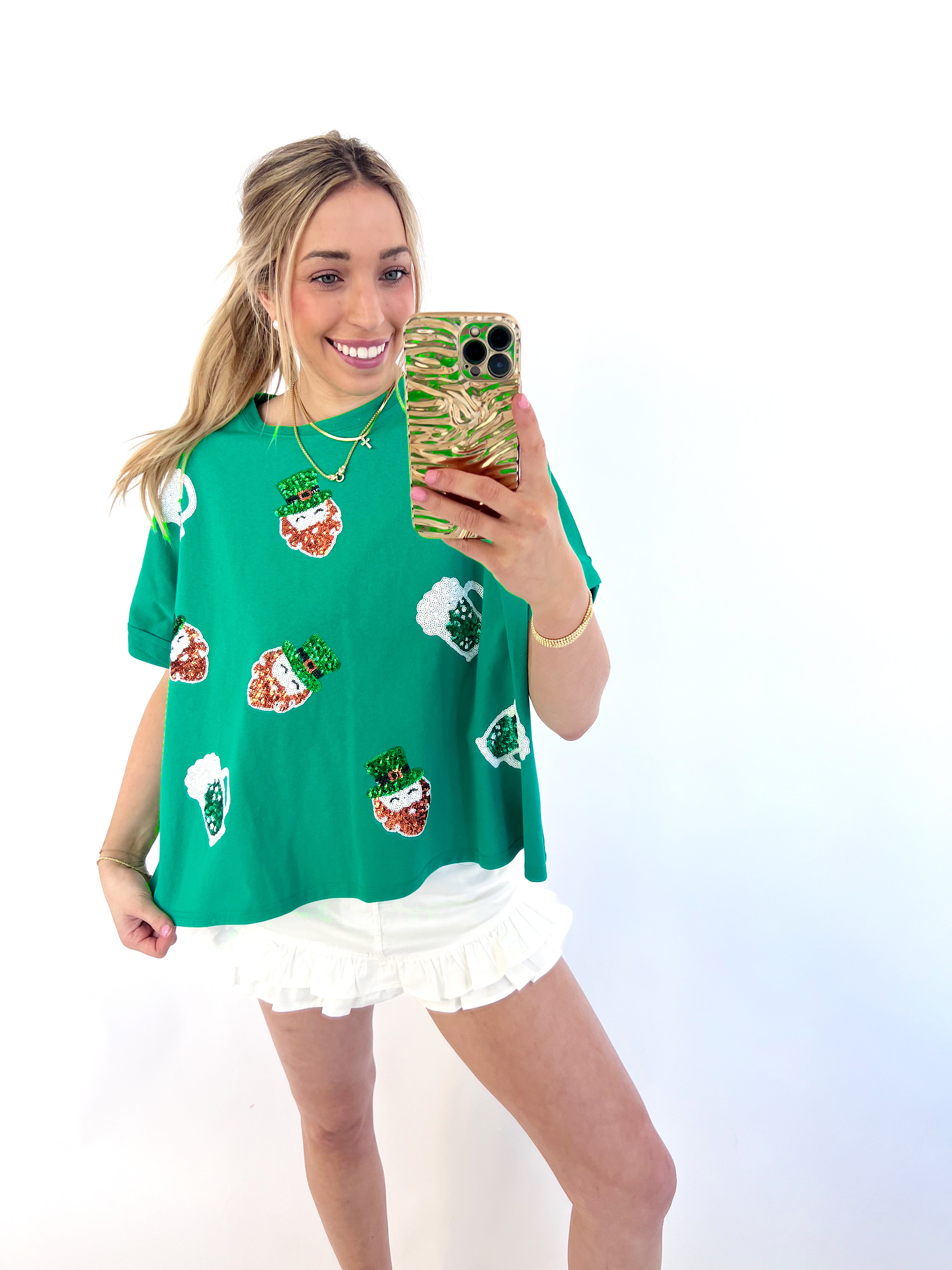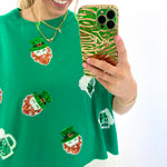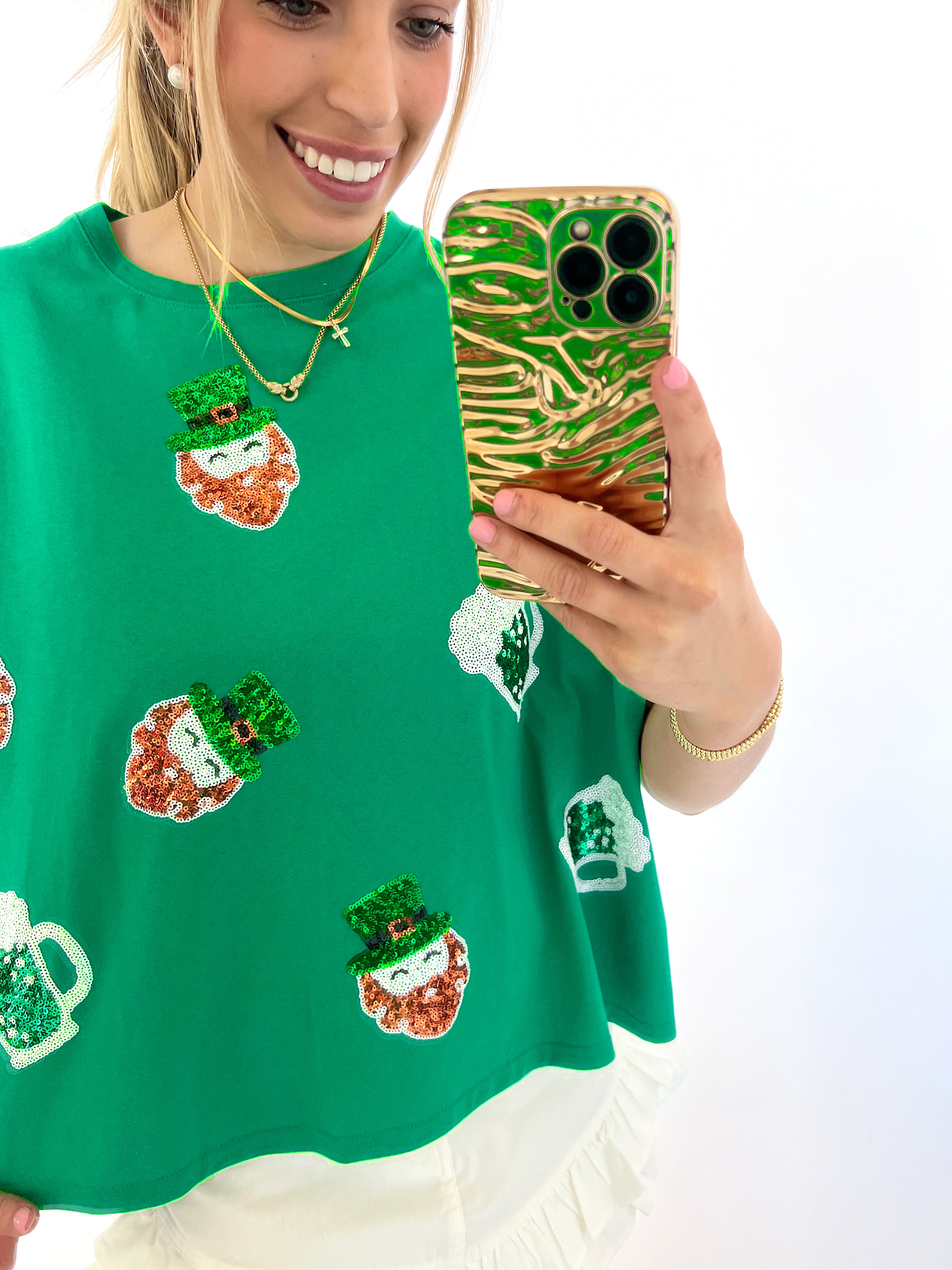GREEN SEQUIN LEPRECHAUN TEE (size medium left)