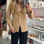 Khaki Gold Hardware Button Cuff Blazer