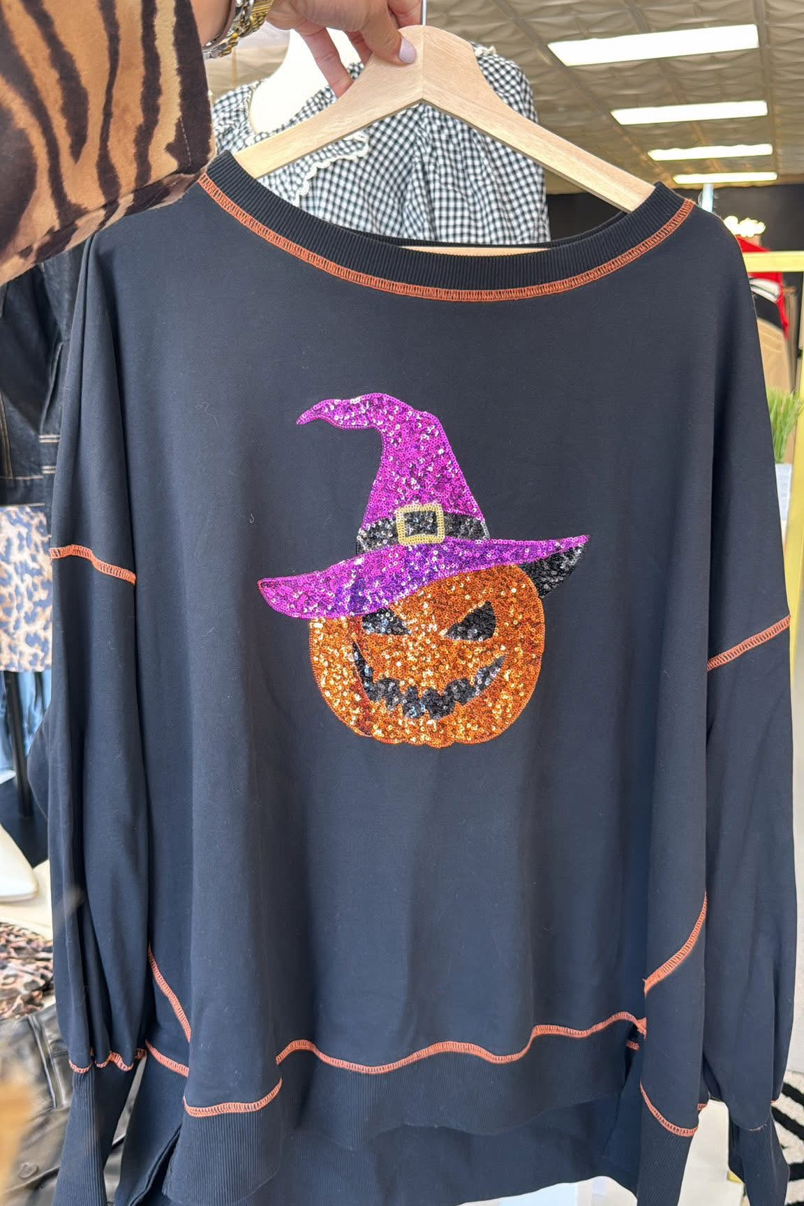 BLACK SEQUIN PUMPKIN PULLOVER (size medium left)