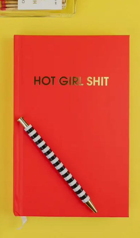 Prepare to be blown away by the sheer badassery of this hardcover journal. We're talking heavyweight paper that's so thick, it could double as body armor (not really, but you get the idea). Your pen will glide across the pages like a Ferrari on an open highway, leaving behind a trail of literary brilliance or horrific chicken scratch like ours. Our journal is packed with more lined pages than you can shake a thesaurus at. Jot down your most terrifying existential thoughts, plan your world domination, next startup business or doodle your way to artistic greatness. Write your heart out, babe! Color: Red Hot Hardcover is Gold Foil Printed 256 Lined Pages Dimensions: 5.25” x 8.25” White Page Marking Ribbon Imported
