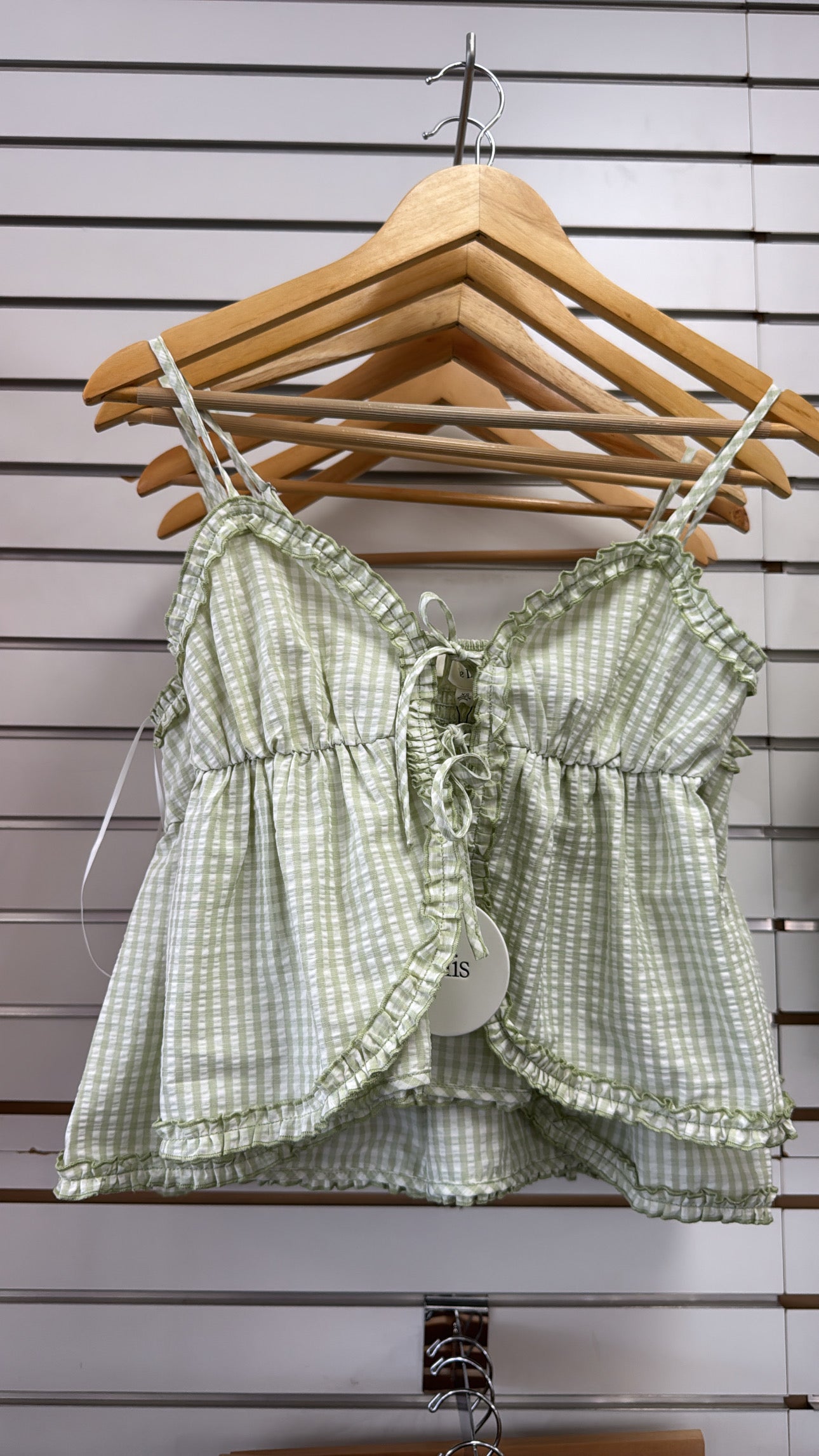 GREEN RUFFLE TRIM TANK TOP